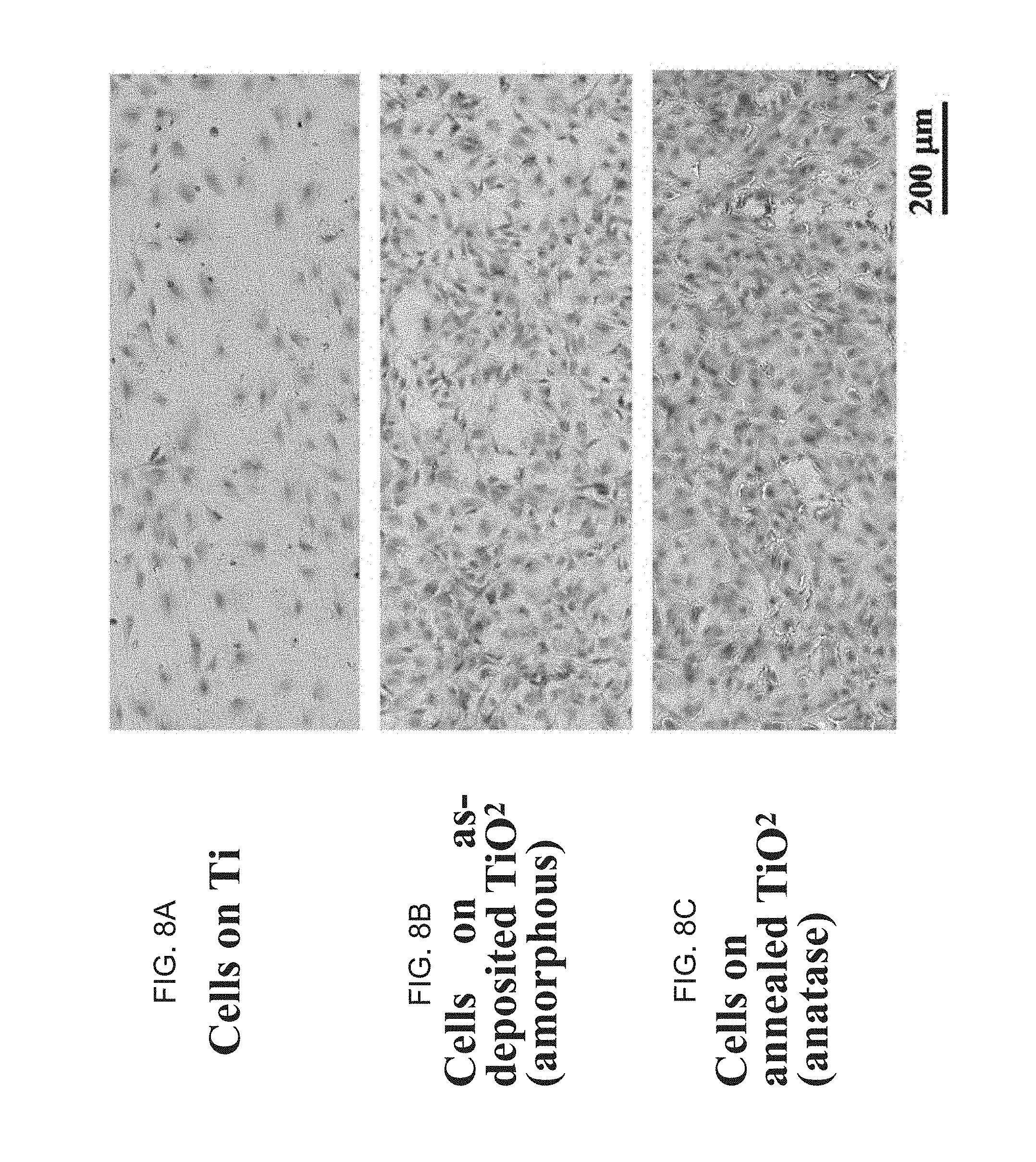 In one aspect, devices of the invention further comprise nanostructures comprising sodium titanate or titanium oxide fibers, which in one aspect are present at the tip of nanotubes, e.g., with a fiber thickness of at most 10, 20, 30, 40 or 50 or more nm, e.g., for enhanced hydroxyapatite formation in a living body (e.g., as an implant) or in a simulated body fluid.