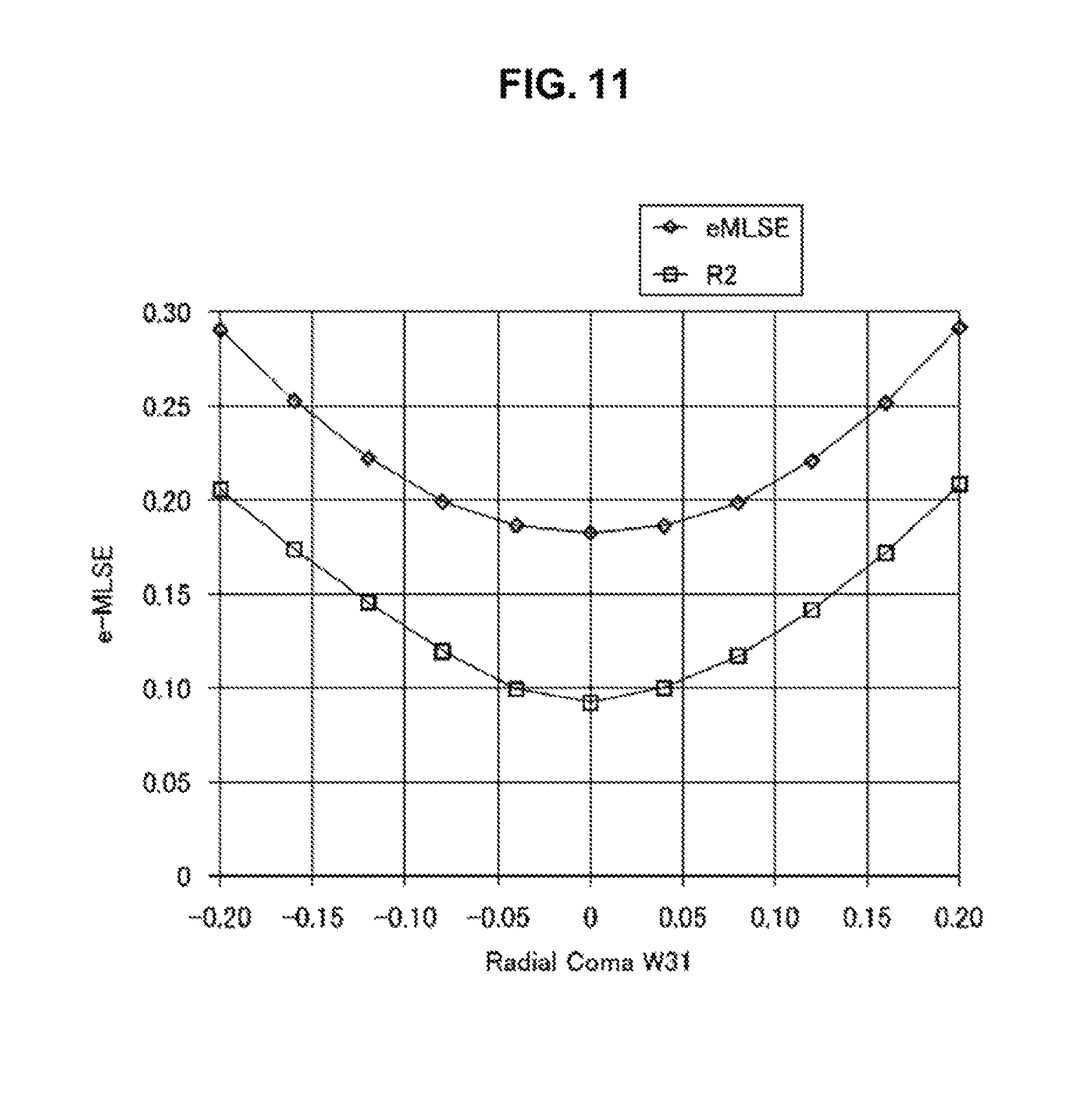 As is clear from those characteristics, when a ratio (Ks) of signals between regions is changed, it is found that “defocus margin and tangential comatic aberration margin” and “radial comatic aberration margin and spherical aberration margin” have a relationship of trade-off. It is also possible to switch a plurality of Ks and use the Ks depending on a difference in medium or the like. [Pattern IVos4] (the Number of Channels is Reduced while Characteristics are being Maintained) By using a method of optically or electrically sharing the central region C in IVNS5 as well as in IVSP4, it is possible to reduce the number of channels in accordance with restriction of power consumption, the number of pins, a circuit scale, and the like of the signal processing circuit. In terms of a method of reducing the number of channels, among the five channels of A to E in the pattern IVNS5 (see Description will be made on the basis of simulation results of the above pattern IVos4. Simulation conditions are as follows as in the case of “low linear density” described above.