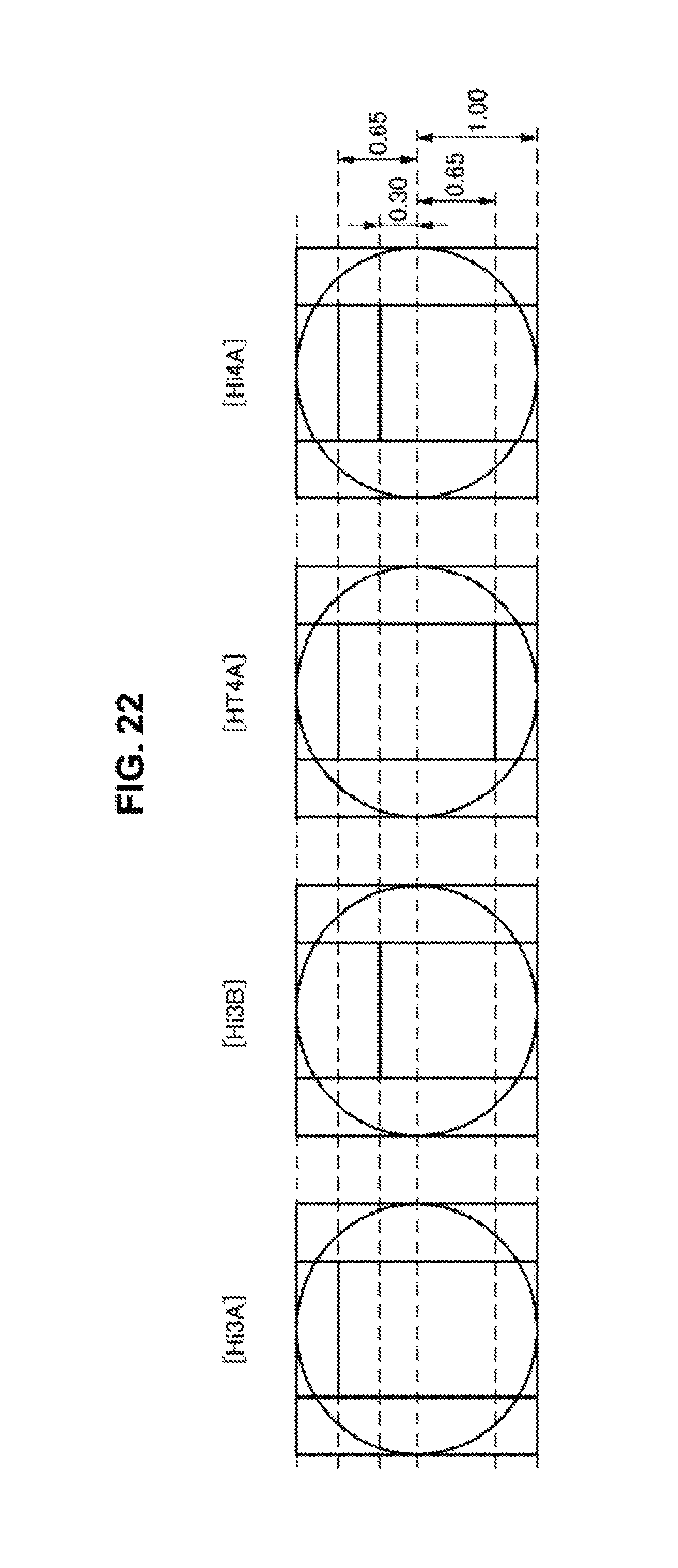 As is clear from the above graphs of linear density dependence, the characteristics can be improved without depending on the linear density by changing the division position in some cases as in the case of the pattern Hi3B from the pattern Hi3A, and the characteristics are inverted depending on the linear density in some case as in the case of HT4A and Hi4A. “Characteristic Optimization by Region Division” Optimization of a division pattern will be described by taking the case of a low linear density with which various kinds of division patterns exhibit favorable characteristics.