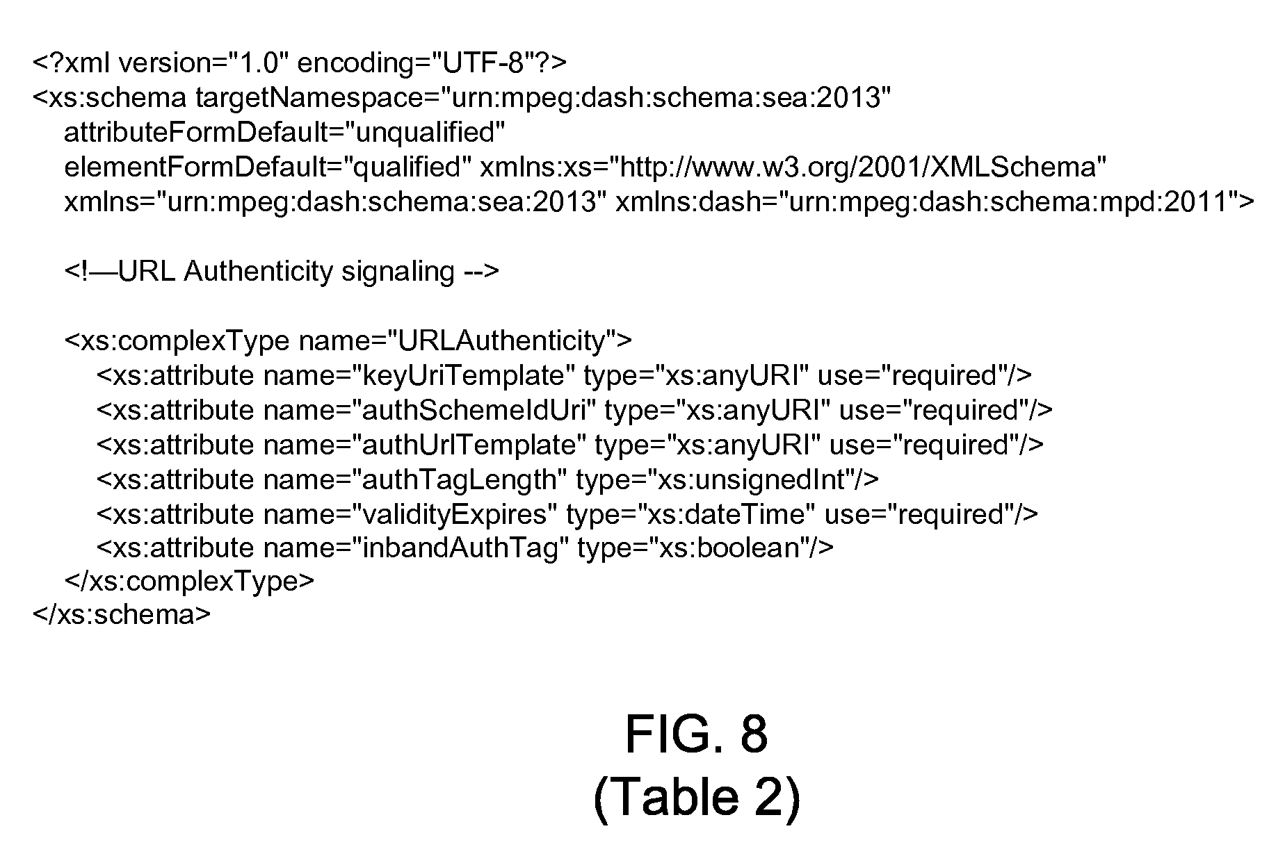 UrlAuthenticity Specifies information necessary to compute an authenticity tag for segment URL @authSchemeIdUri M Specifies the algorithm used for computing the authenticity tag @authUrlTemplate M Specifies the template for creating the URL used for retrieving the authenticity tag value. Can be absent if @inbandAuthTag is true @authTagLength O Specifies the length of an authentication tag in bits. If absent, the tag length is same as in the algorithm identified by @authSchemeIdUri @keyUrlTemplate O Specifies the template for key URI generation, using syntax and variable substitution as defined in ISO/IEC 23009-1: 2012, 5.3.9.4.4. @validityExpires M Specifies (in wall clock time) the time when URL authenticity expires @inbandAuthTag OD If true, authenticity tag appears within associated segments (in case such in-band carriage is specified) Legend: For attributes: M = Mandatory, O = Optional, OD = Optional with Default Value, CM = Conditionally Mandatory. For elements: <minOccurs> . . . <maxOccurs> (N = unbounded) Elements are bold; attributes are non-bold and preceded with an @. Common attributes and elements ContentAuthorization 0 . . . N Specifies information about content access authorization schemes used for the associated Representations Legend: For attributes: M = Mandatory, O = Optional, OD = Optional with Default Value, CM = Conditionally Mandatory. For elements: <minOccurs> . . . <maxOccurs> (N = unbounded) Elements are bold; attributes are non-bold and preceded with an @.