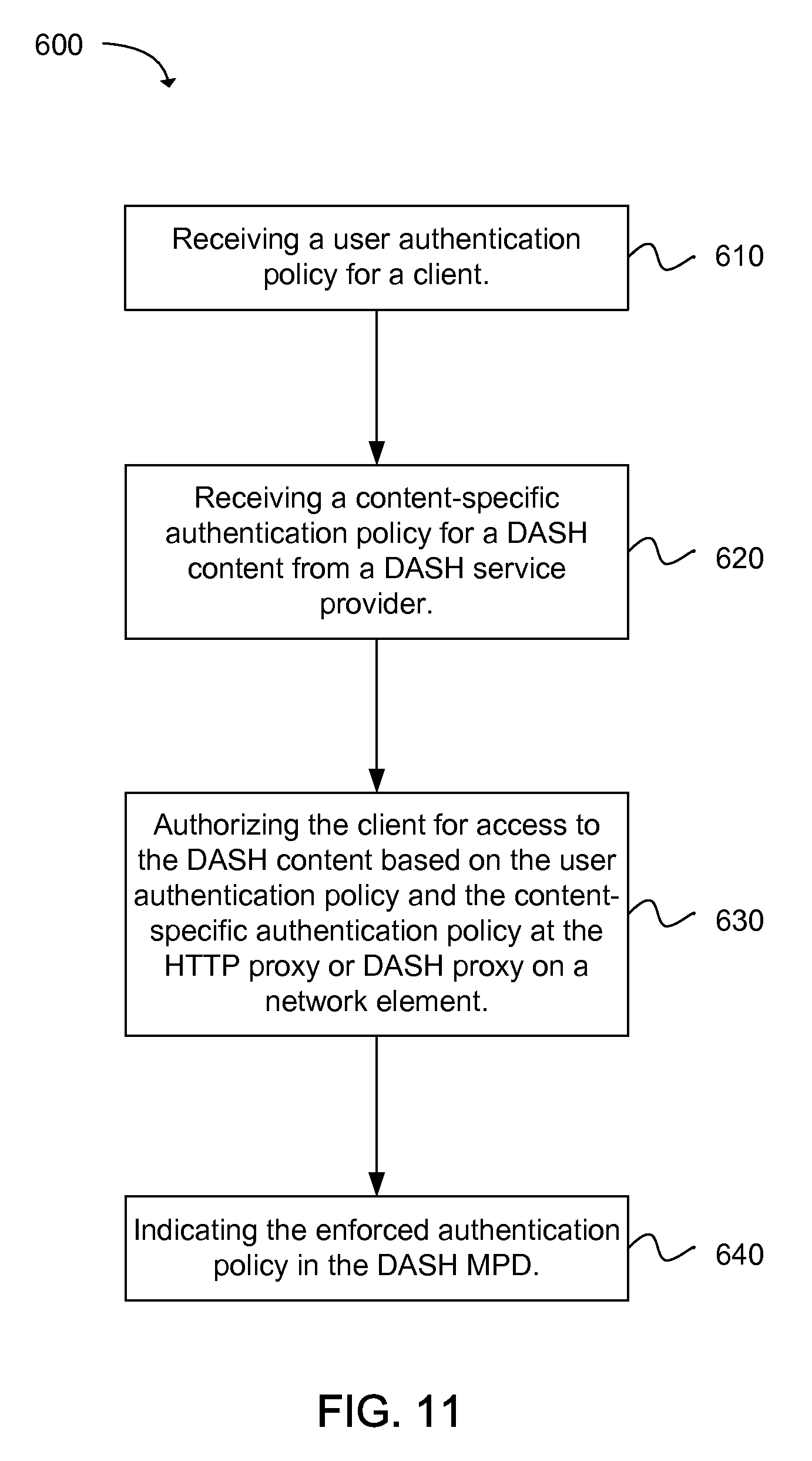 receive DASH-specific authentication policy from a DASH service provider for DASH content; incorporate the DASH-specific authentication policy into a user authentication policy; authorize client access to the DASH content by enforcing both the DASH-specific authentication policy and the user authentication policy for the DASH content information and the client authentication; and indicate the enforced authentication policies in the DASH MPD. 8. The server of 9. The server of 10. The server of the DASH proxy is further configured to: