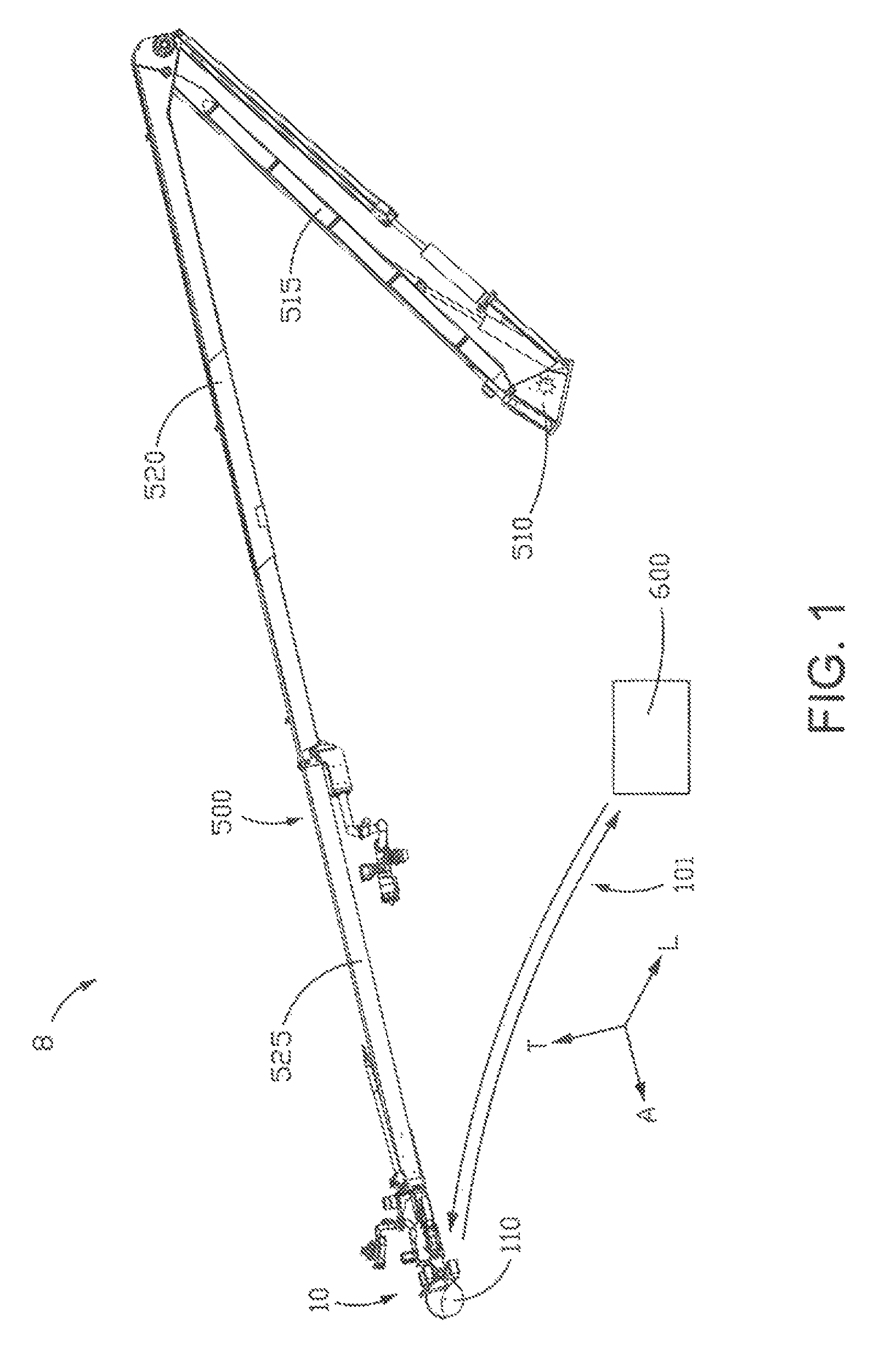 a saw assembly including a cutting portion configured to cut into a target surface, the saw assembly comprising a saw blade extending from a support arm in a blade plane; a motor assembly coupled to the saw assembly; a control system operatively connected to the motor assembly and the high reaching extendible turret and configured to manipulate movement of the saw assembly along at least seven axes through actuation of the high reaching extendible turret and the motor assembly; and at least three distance measuring sensors mounted on the saw assembly, with two of the at least three sensors mounted on a first side of the blade plane and in a first sensor plane parallel to the blade plane, and a remaining sensor of the at least three sensors mounted on second side of the blade plane, wherein each of the at least three sensors points along its own sensor axis, wherein all of the sensor axes are parallel with each other, the at least three distance measuring sensors all configured to, in conjunction with the control assembly, determine a distance between the saw assembly and the target surface. 14. The cutting device of 15. The cutting device of 16. The cutting device of 17. The cutting device of