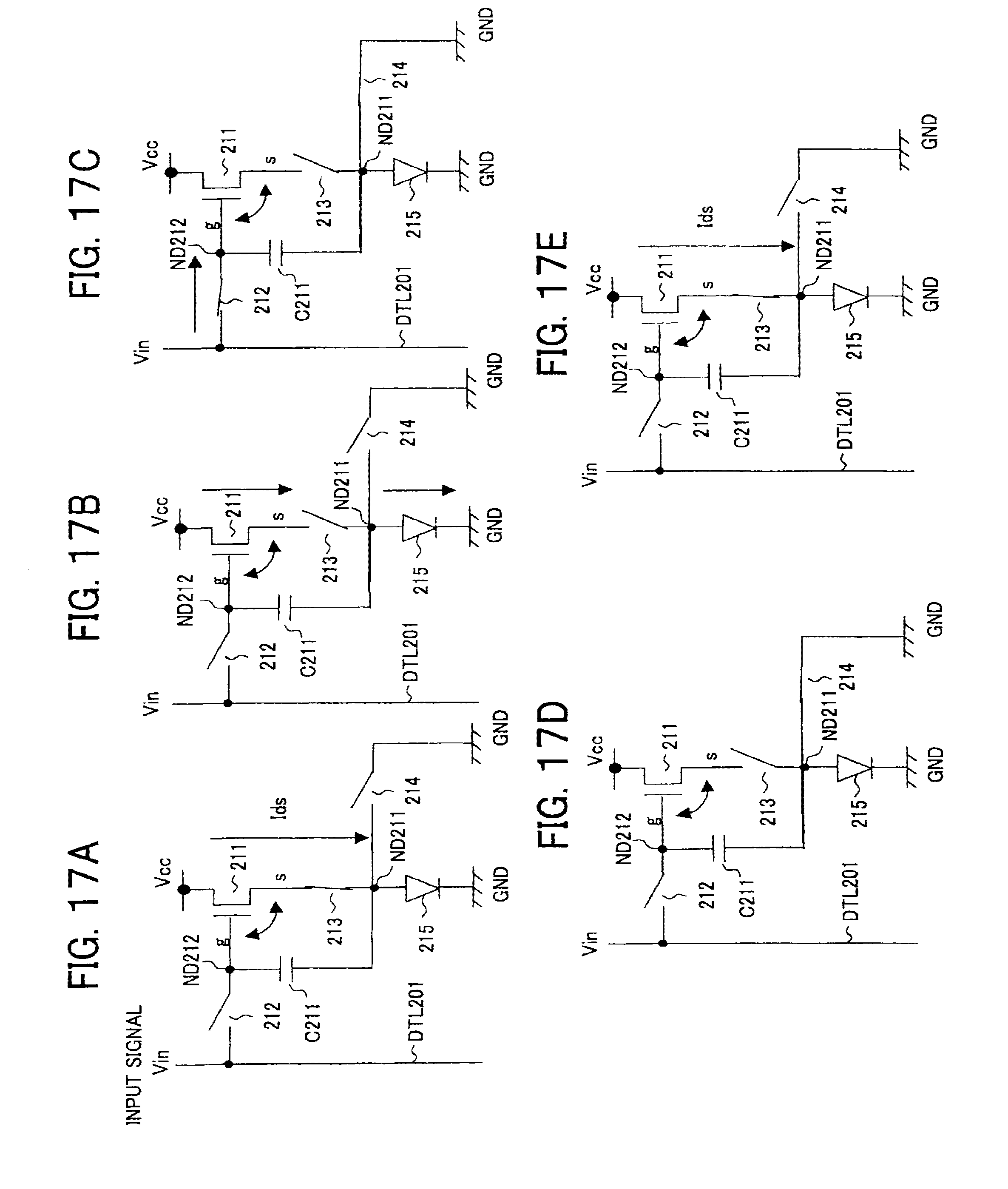 This application is a continuation of and claims the benefit of priority from U.S. patent application Ser. No. 14/789,611, filed Jul. 1, 2015, which is a continuation of U.S. patent Ser. No. 14/571,966, filed on Dec. 16, 2014 (now U.S. Pat. No. 9,147,358, issued Sep. 29, 2015); U.S. patent application Ser. No. 14/446,103, filed on Jul. 29, 2014 (now U.S. Pat. No. 9,076,384, filed Jul. 7, 2015); U.S. patent application Ser. No. 13/412,655, filed on Mar. 6, 2012 (now U.S. Pat. No. 8,836,678, issued Sep. 16, 2014); U.S. patent application Ser. No. 11/777,781, filed on Jul. 13, 2007 (now U.S. Pat. No. 8,159,479, issued Apr. 17, 2012); and U.S. patent application Ser. No. 10/857,857, filed on Jun. 2, 2004 (now U.S. Pat. No. 7,382,342, issued Jun. 3, 2008). This application is also based upon and claims the benefit of priority under 35 U.S.C. §119 from Japanese Patent Application No. 2003-158423 filed Jun. 3, 2003. The entire contents of each of these applications are incorporated herein by reference. 1. Field of the Invention The present invention relates to a pixel circuit having an organic electroluminescence (EL) element or other electro-optic element with a luminance controlled by a current value and an image display device comprised of such pixel circuits arrayed in a matrix, in particular a so-called active matrix type image display device controlled in value of current flowing through the electro-optic elements by insulating gate type field effect transistors (FETs) provided inside the pixel circuits. 2. Description of the Related Art In an image display device, for example, a liquid crystal display, a large number of pixels are arranged in a matrix and the light intensity is controlled for every pixel in accordance with the image information to be displayed so as to display an image. This same is true for an organic EL display etc. An organic EL display is a so-called self light emitting type display having a light emitting element in each pixel circuit and has the advantages that the viewability of the image is higher in comparison with a liquid crystal display, a backlight is unnecessary, the response speed is high, etc. Further, it greatly differs from a liquid crystal display etc. in the point that the gradations of the color generation are obtained by controlling the luminance of each light emitting element by the value of the current flowing through it, that is, each light emitting element is a current controlled type. An organic EL display, in the same way as a liquid crystal display, may be driven by a simple matrix and an active matrix system, but while the former has a simple structure, it has the problem that realization of a large sized and high definition display is difficult. For this reason, much effort is being devoted to development of the active matrix system of controlling the current flowing through the light emitting element inside each pixel circuit by an active element provided inside the pixel circuit, generally, a thin film transistor (TFT). The pixel circuit 2 Step ST1 When the scanning line WSL is made a selected state (low level here) and a write potential Vdata is supplied to the data line DTL, the TFT 12 becomes conductive, the capacitor C11 is charged or discharged, and the gate potential of the TFT 11 becomes Vdata. Step ST2 When the scanning line WSL is made a non-selected state (high level here), the data line DTL and the TFT 11 are electrically separated, but the gate potential of the TFT 11 is held stably by the capacitor C11. Step ST3 The current flowing through the TFT 11 and the light emitting element 13 becomes a value in accordance with a gate-source voltage Vgs of the TFT 11, while the light emitting element 13 is continuously emitting light with a luminance in accordance with the current value. As in the above step ST1, the operation of selecting the scanning line WSL and transmitting the luminance information given to the data line to the inside of a pixel will be referred to as “writing” below. As explained above, in the pixel circuit 2 As explained above, in the pixel circuit 2 Here, μ indicates the mobility of a carrier, Cox indicates a gate capacitance per unit area, W indicates a gate width, L indicates a gate length, Vgs indicates the gate-source voltage of the TFT 11, and Vth indicates the threshold value of the TFT 11. In a simple matrix type image display device, each light emitting element emits light only at a selected instant, while in an active matrix, as explained above, each light emitting element continues emitting light even after the end of the write operation. Therefore, it becomes advantageous in especially a large sized and high definition display in the point that the peak luminance and peak current of each light emitting element can be lowered in comparison with a simple matrix. In general, the I-V characteristic of an organic EL emitting element ends up deteriorating along with time as shown in The pixel circuit 2 Next, consider a pixel device replacing the transistors with n-channel TFTs. The pixel circuit 2 In the pixel circuit 2 As shown in Summarizing the problems to be solved by the invention, here too, the I-V characteristic of the organic EL emitting element ends up deteriorating along with time. As shown in Further, as shown in With this system, in the same way as when driven by the p-channel TFT of With this system, however, the drive transistor has to be connected to the cathode side of the organic EL diode. This cathodic connection requires development of new anode-cathode electrodes. This is considered extremely difficult with the current level of technology. Therefore, as shown in In the display device shown in As shown by the pixel circuit of However, this method of the related art had problems. Each Vss line had (number of pixels in the X-direction×RGB) number of pixels connected to it. Therefore, when the TFT 43 of A first object of the present invention is to provide a pixel circuit able to pre