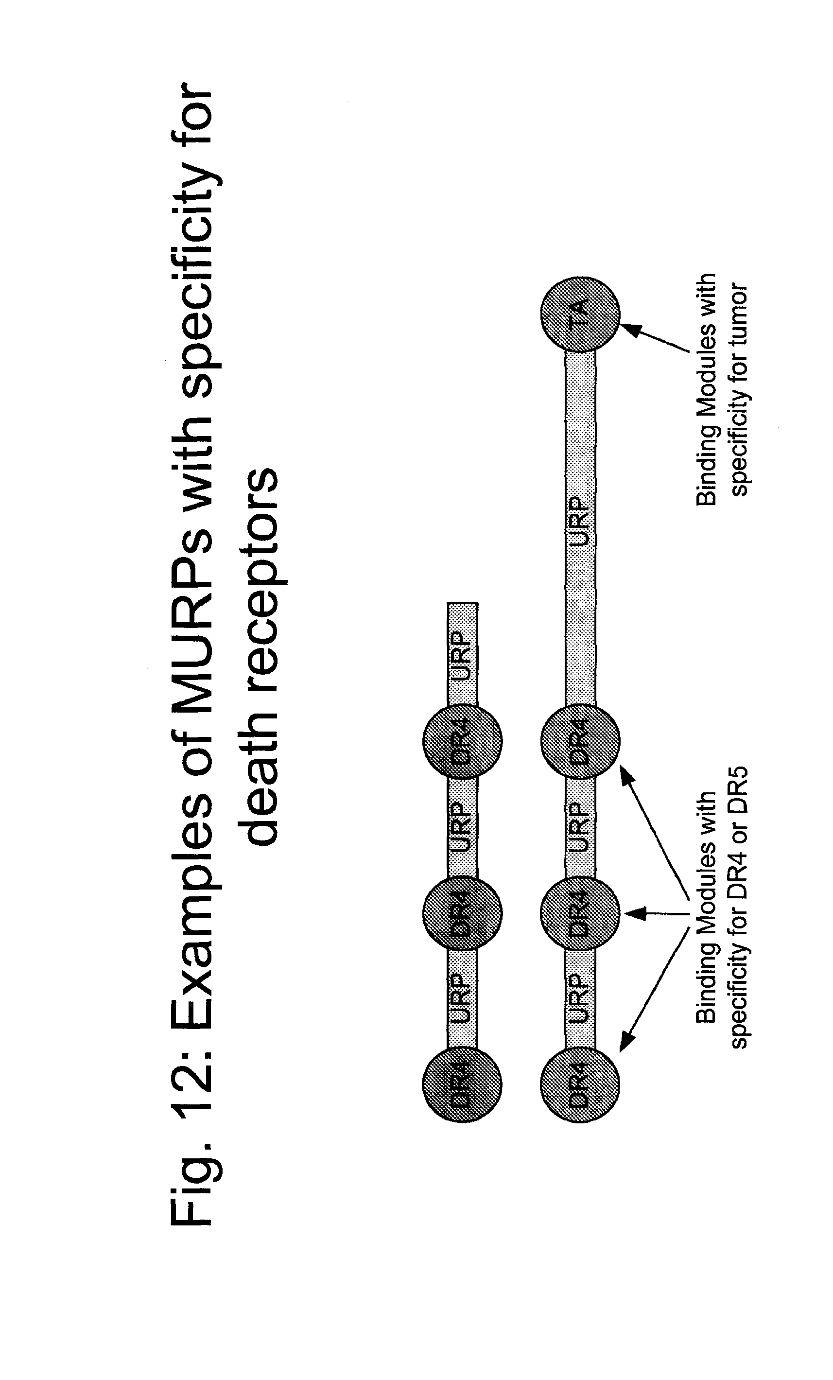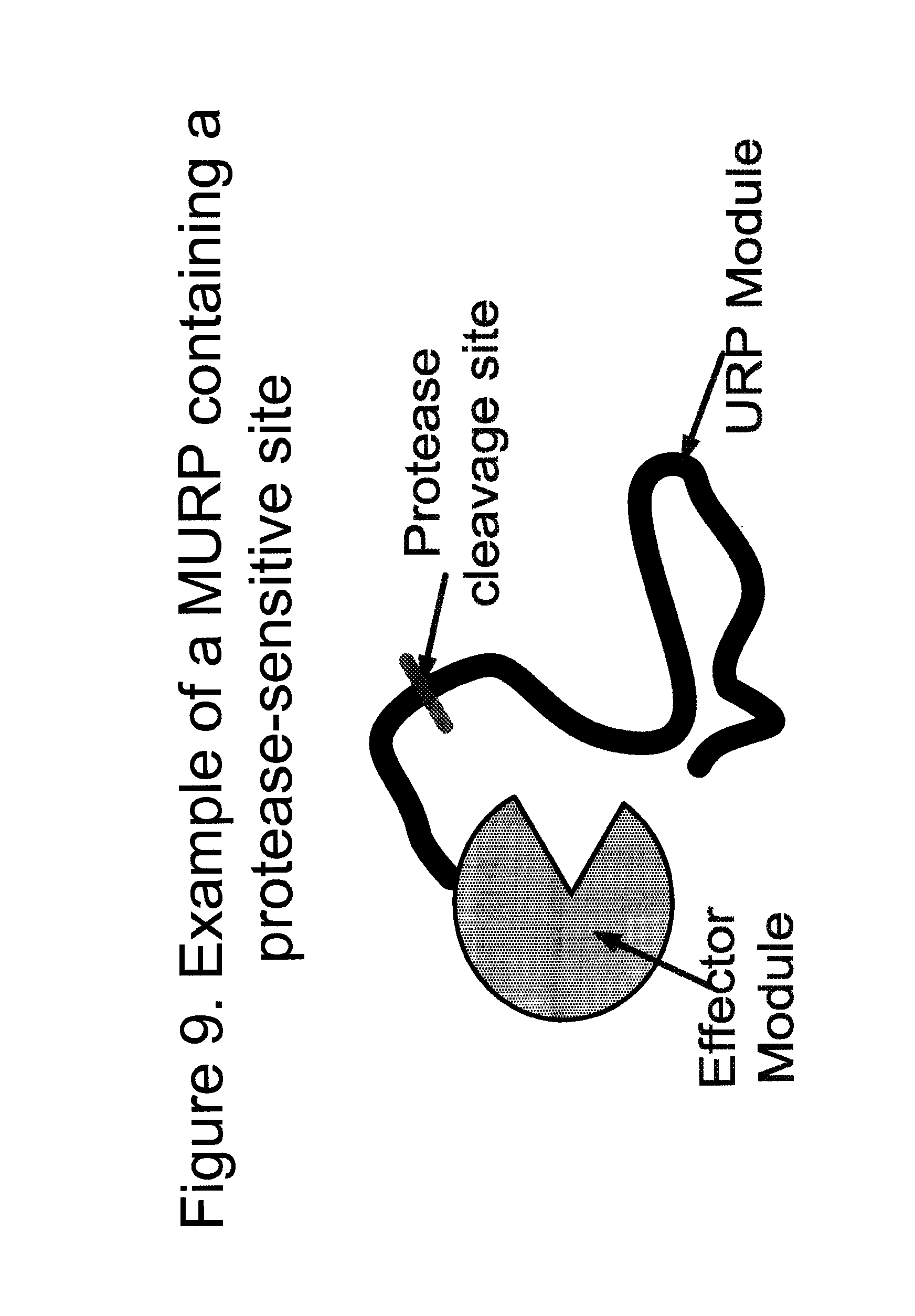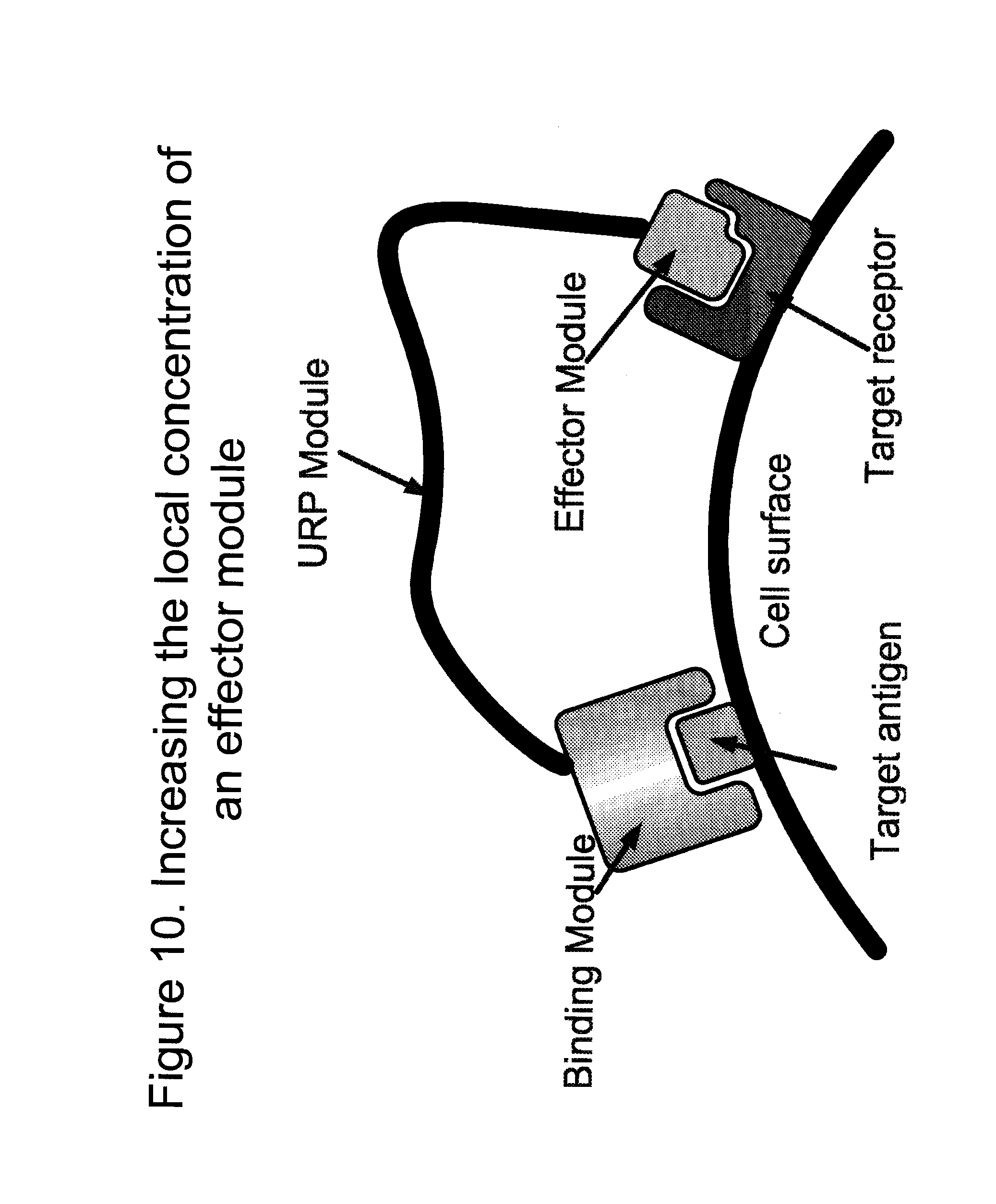 FIG. 1 shows the modular components of an MURP. Binding modules, effector modules, and multimerization modules are depicted as circles. URP modules, N-terminal, and C-terminal modules are shown as rectangles.