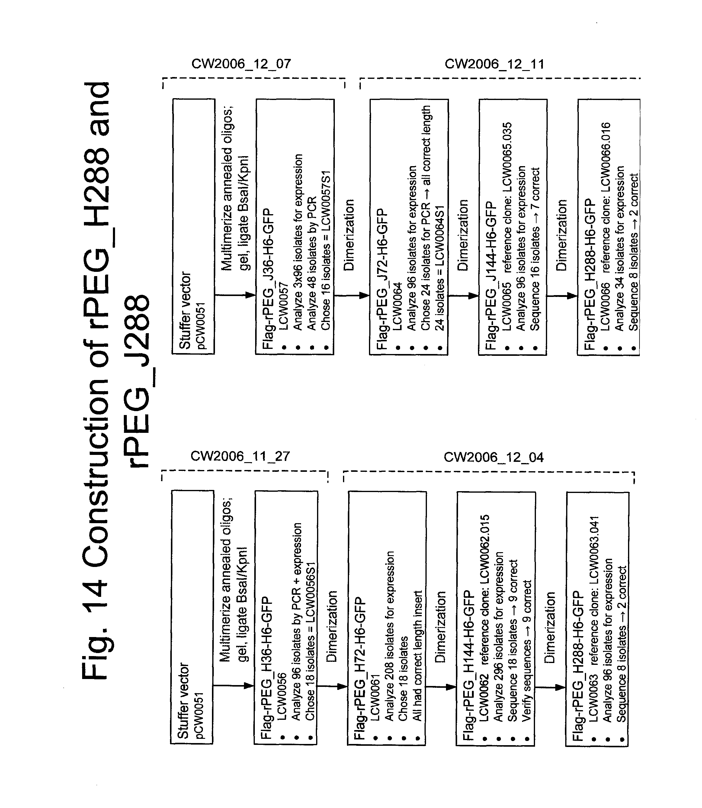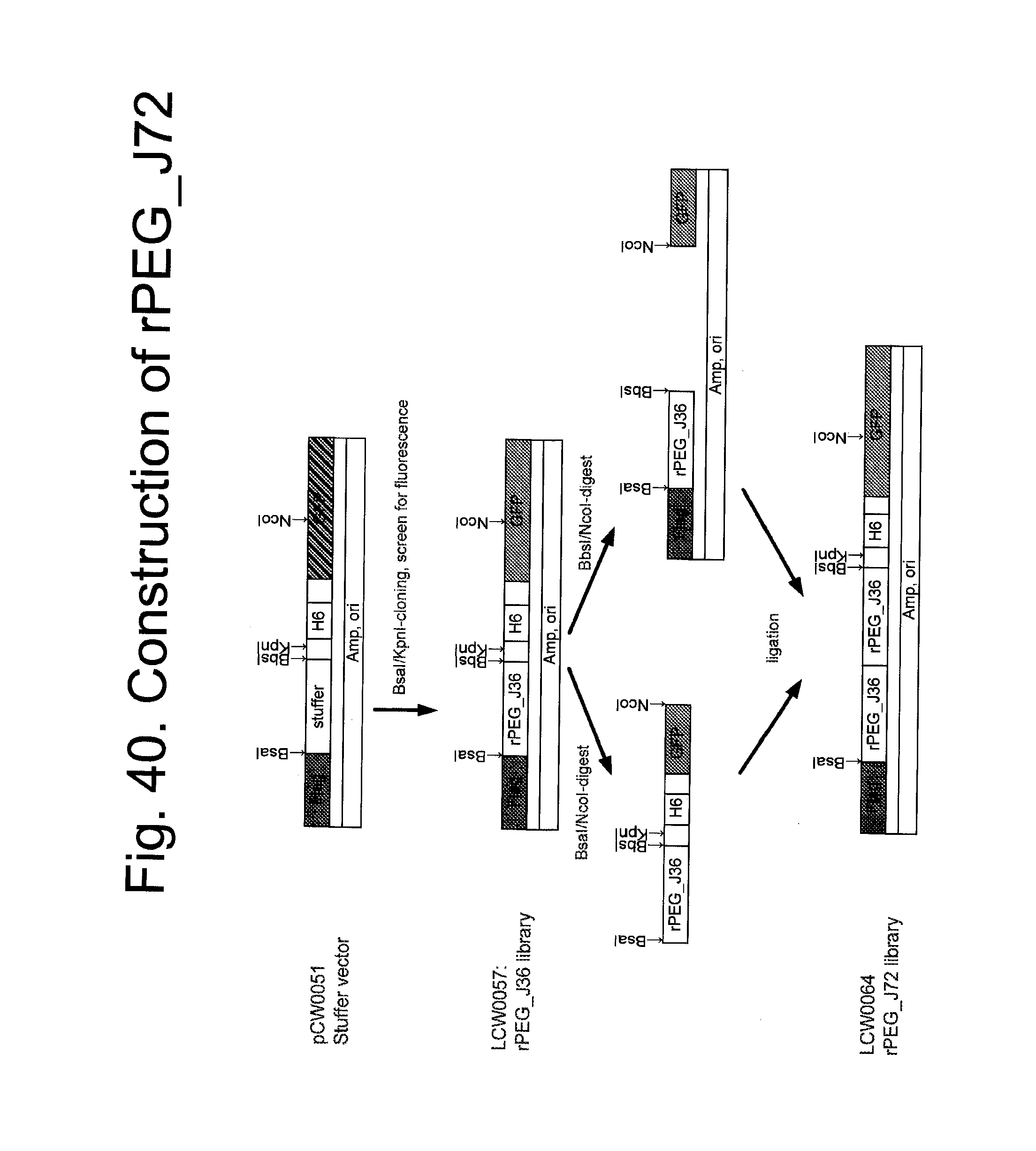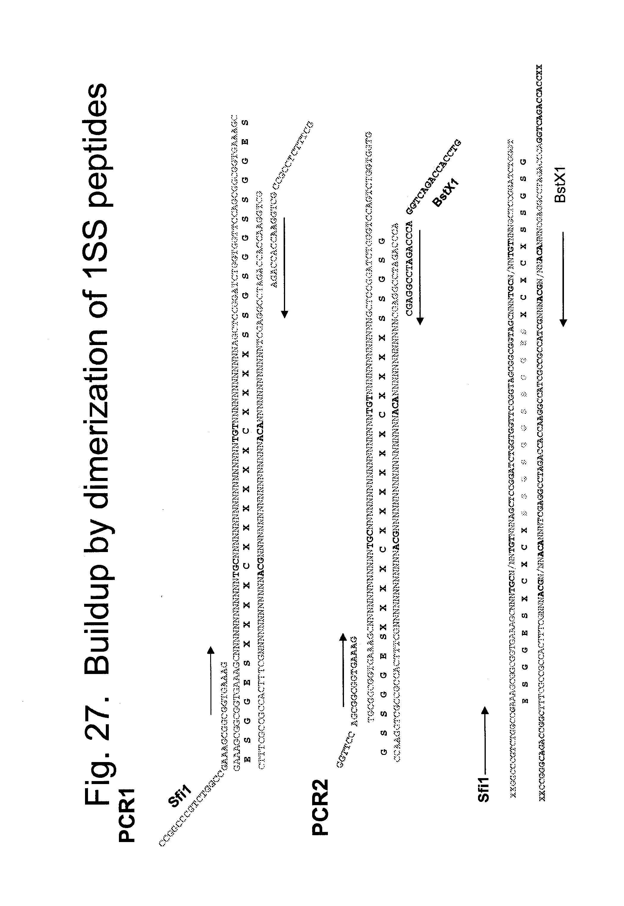 Primers, 10.0 μl Assembled mixture, 10.0 μl 10× buffer, 2.0 dNTPs (10 mM), 10.0 μl LIBPTF (5 μM), 10.0 μl LIBPTR (5 μM), 1.0 μl cDNA polymerase (Clonetech), 57 μl DS H2O. PCR program: 95° C. 1 min, (95° C. 15 sec, 54° C. 30 sec, 68° C. 15 sec)×25, 68° C. 1 min. The product was purified by Amicon column Y10. The assembled product was digested with SfiI and BstXI and ligated into the phagemid vector pMP003. Ligation was performed over night at 16° C. in a MJ PCR machine. Ligation then was purified by EtOH precipitation. Transformation into fresh competent ER2738 cells by Electroporation.