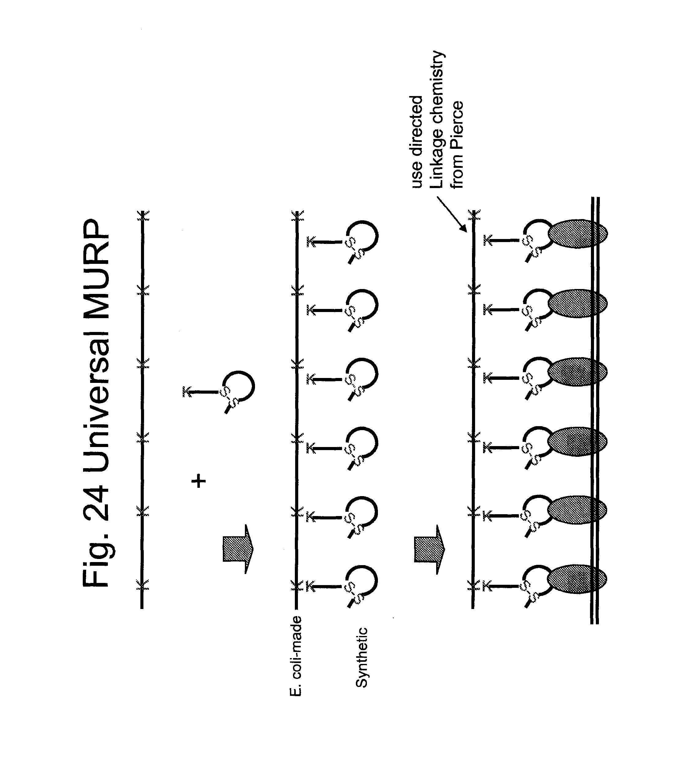 One can coat MURPs of interest into microtiter plates and control proteins in other wells of the plate. Subsequently, one can add serum samples of interest to the wells for 1 hour. Subsequently, the wells can be washed with a plate washer. Bound serum proteins can be detected by adding antibodies against serum proteins that have been conjugated with enzymes like horse radish peroxidase or alkaline phosphatase for detection. Another way to detect serum binding to MURPs to add the MURP of interest to serum for about 1 hour to allow binding. Subsequently, one can immunoprecipitate the MURP using an antibody against an epitope in the MURP sequence. The precipitated samples can be analyzed by PAGE and optionally by Western to detect any proteins that co-precipitated with the MURP. One can identify the serum proteins that show co-precipitation by mass spectrometry.