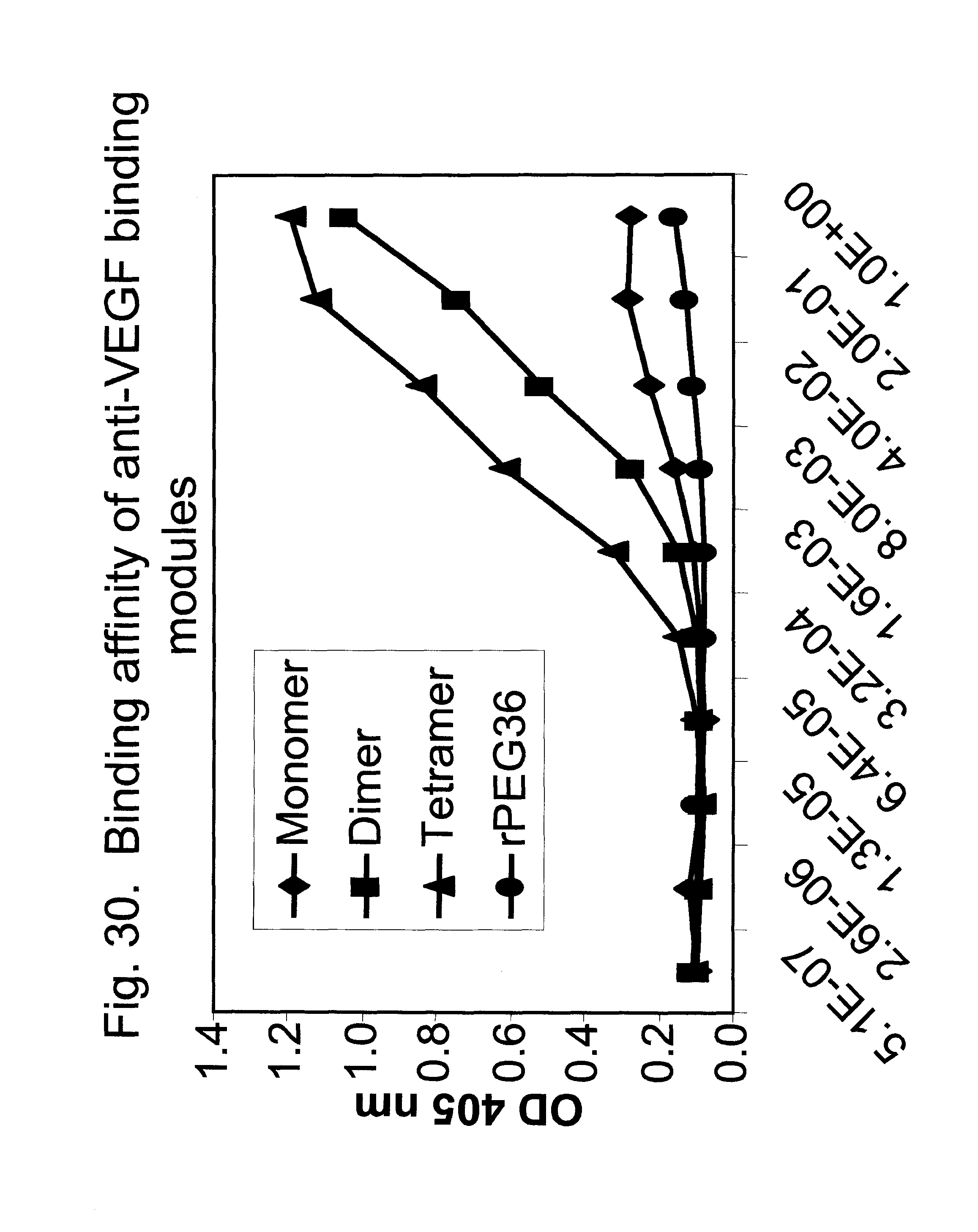 The resulting library was panned against VEGF as described below. Several isolates were identified that showed improved binding to VEGF relative to the 1SS starting sequence. Binding and expression data are shown in FIG. 38. Sequences and results of Western analysis of buildup clones is shown in FIG. 39.