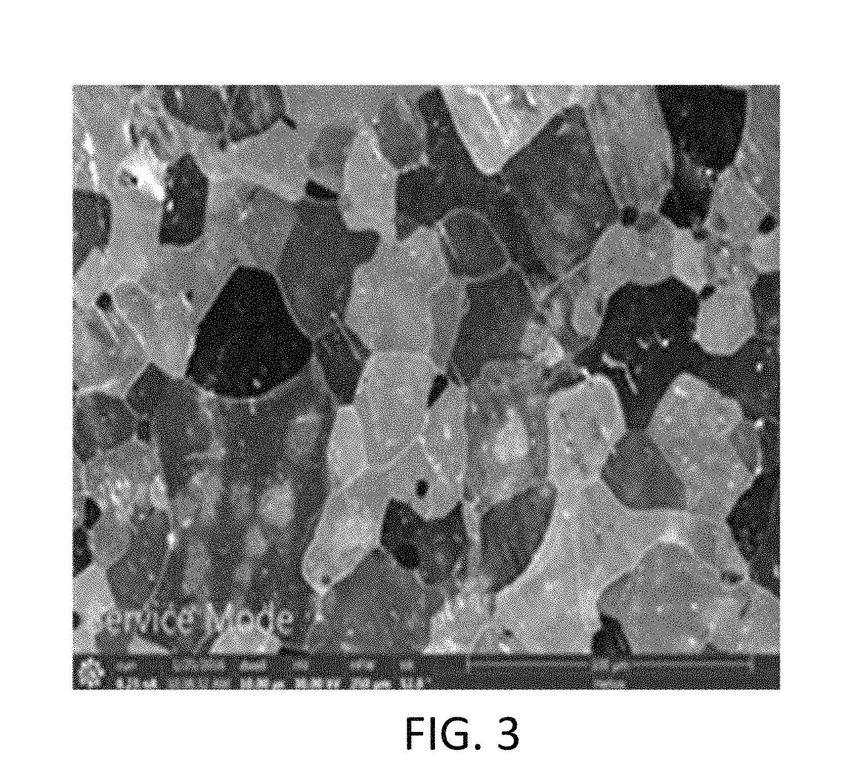 and determining the composition or crystal structure of one or more grains based on the detected secondary emissions.