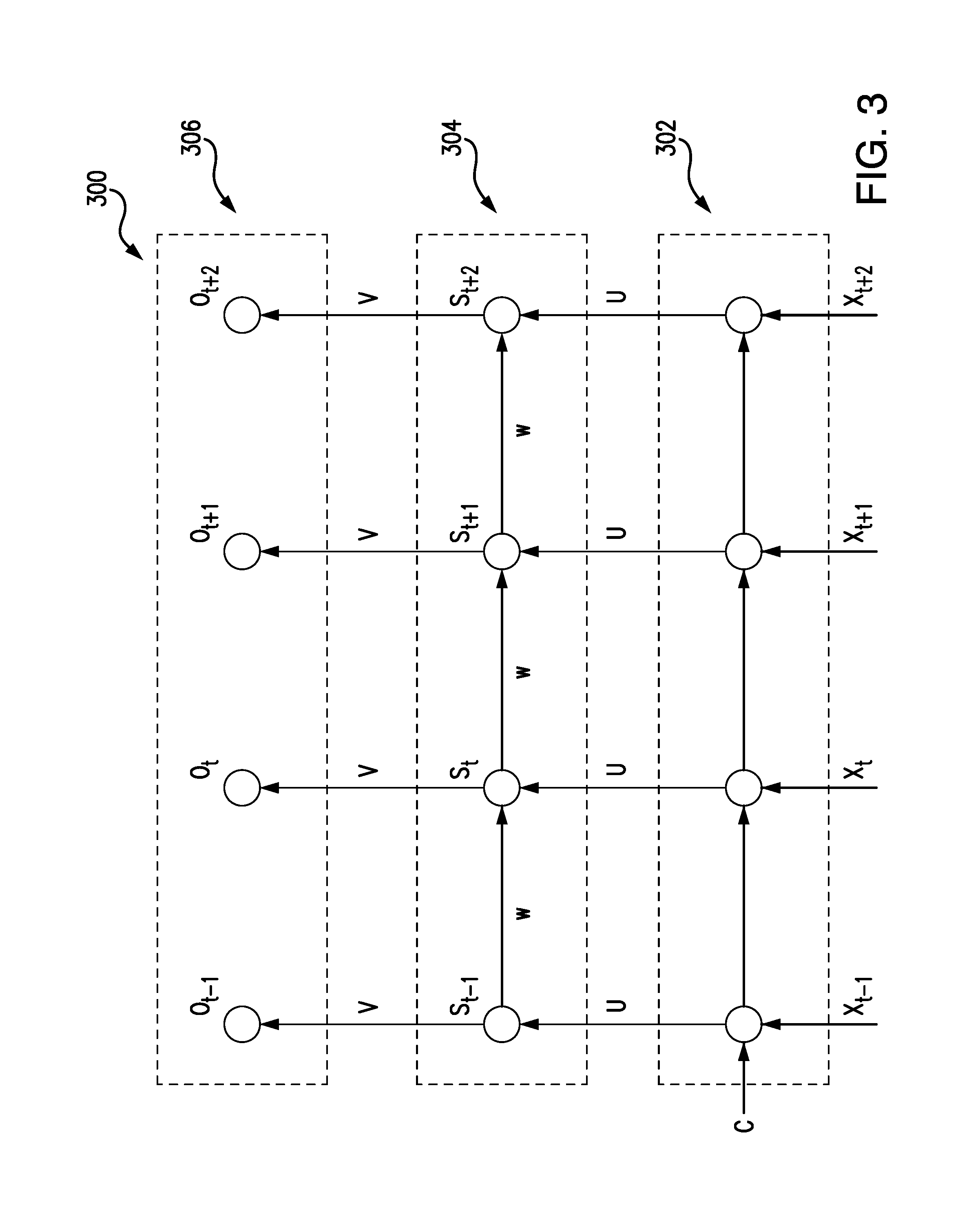 Referring now to FIG. 3, FIG. 3 shows an example of a neural network that can used in an embodiment of the present invention. A language model that may be built using the depicted RNN enables the attack mitigation device 102 to predict the probability of observing the character (in a given request) as: