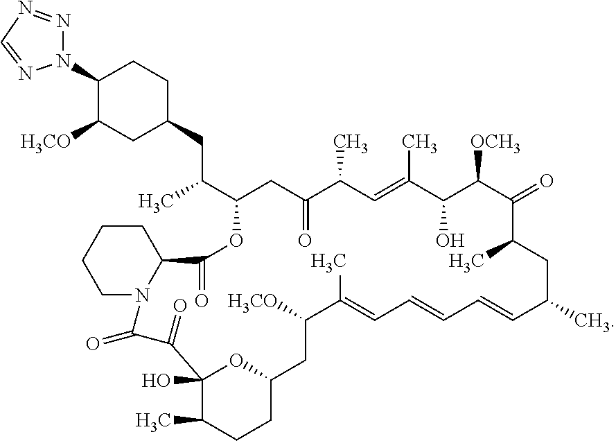 Rapamycin is a macrocyclic triene antibiotic produced by Streptomyces hygroscopicus, which was found to have antifungal activity, particularly against Candida albicans, both in vitro and in vivo (C. Vezina et al., J. Antibiot. 1975, 28, 721; S. N. Sehgal et al., J. Antibiot. 1975, 28, 727; H. A. Baker et al., J. Antibiot. 1978, 31, 539; U.S. Pat. No. 3,929,992; and U.S. Pat. No. 3,993,749).