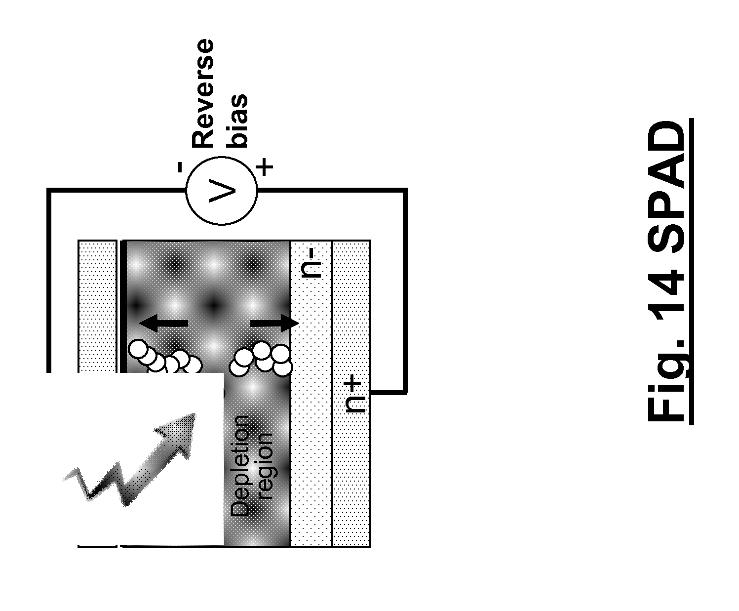With reference to FIGS. 11 and 14, a single photon avalanche detector and its operation are described. When a SPAD biased above breakdown, in Geiger mode, absorbs a single photon in the visible and near-infrared wavelength range, an avalanche is created which indicates occurrence of an event. To control the SPAD operation, a front-end interface circuitry is required for the following tasks: