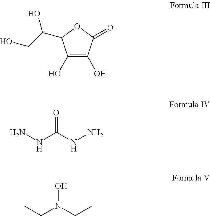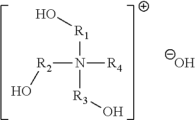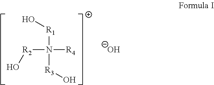 1E THEMAH, MEA 37 32 2 1.5-2.5 2A TMAH, MEA 100 100 1-2 2-3 (Compar- (low con- ative) centration) 2B TMAH, MEA 38 30 8-9 6-7 (Compar- (high con- ative) centration) EXAMPLE 3