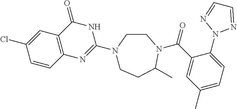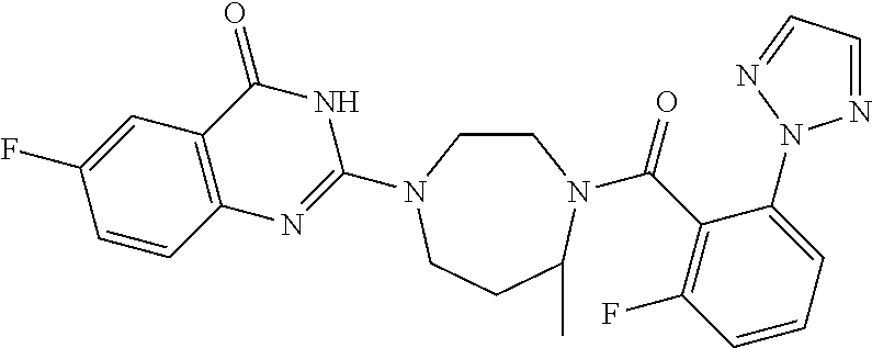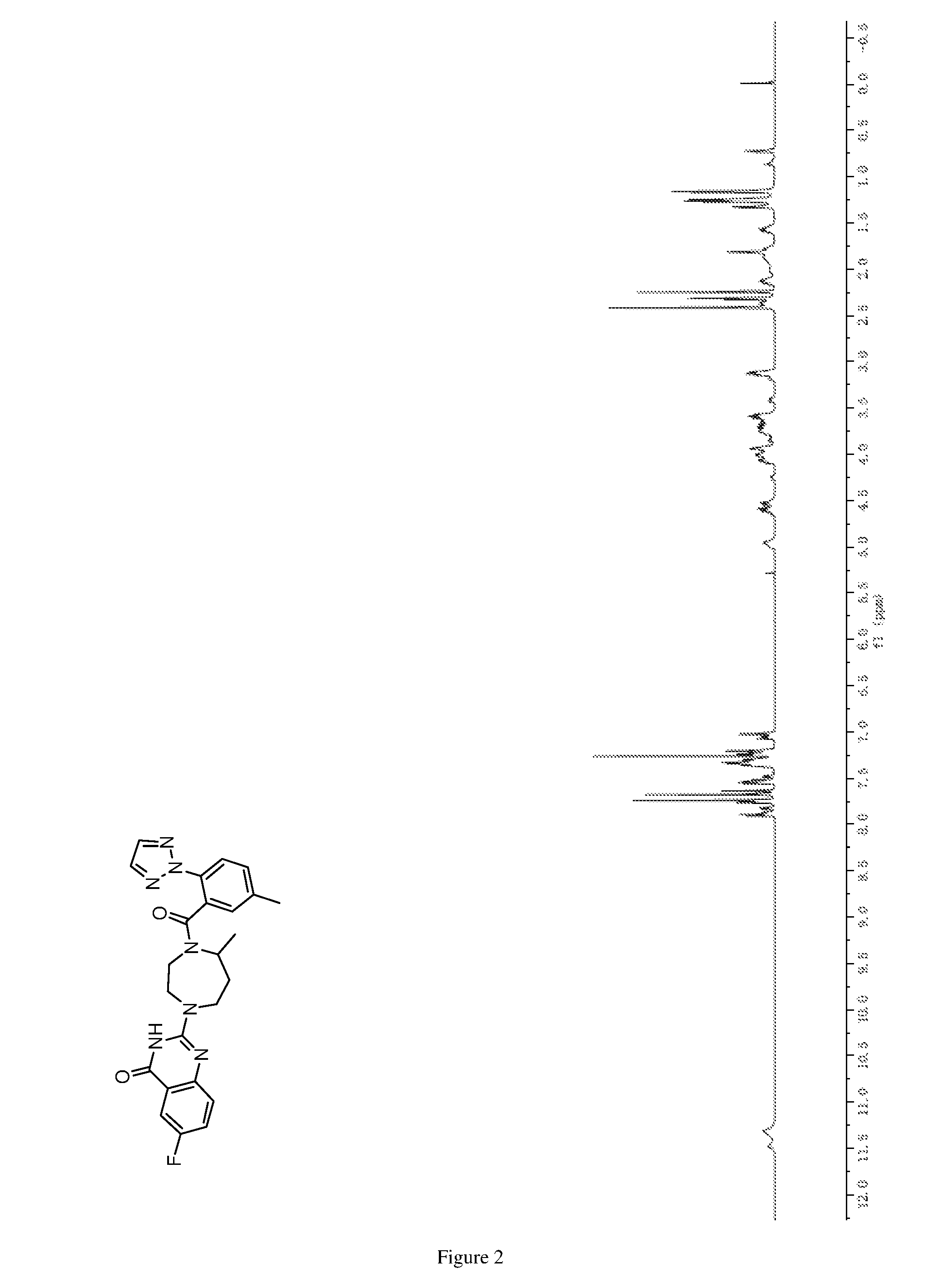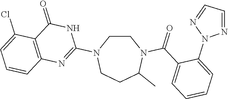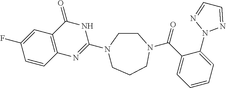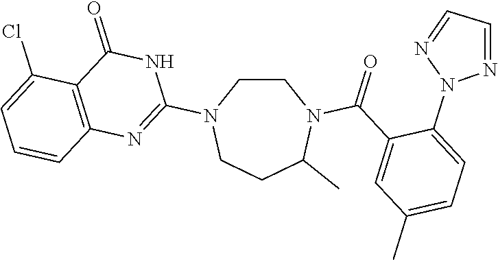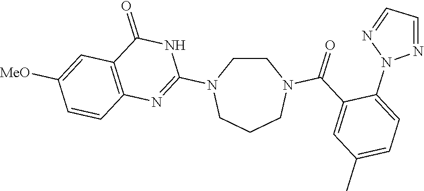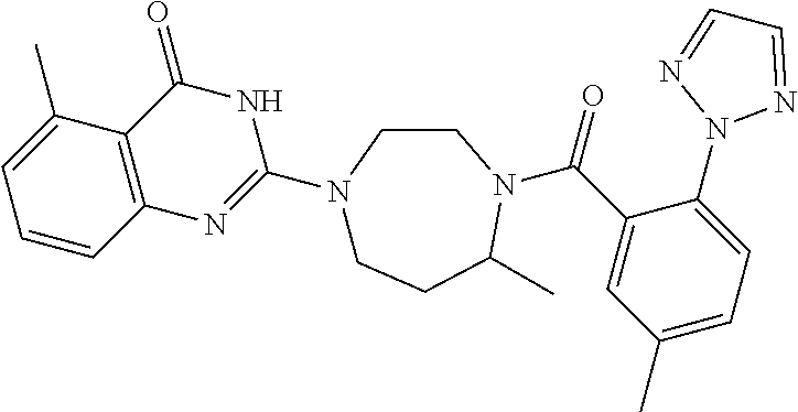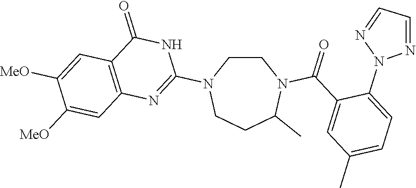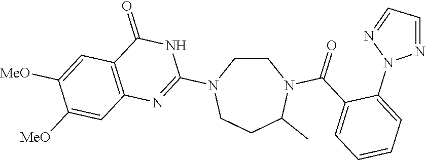 6,7-Dimethoxy-2-(5-methyl-1,4-diazepan-1-yl)quinazolin-4(3H)-one (0.19 g, 0.60 mmol) was reacted with 2-(2H-1,2,3-triazole-2-yl)benzoyl chloride (0.15 g, 0.72 mmol) and triethylamine (0.33 mL, 2.4 mmol) in anhydrous dichloromethane (25 mL) according to the procedure as described in step 7 of example 1, and the crude product was purified by silica gel chromatography (dichloromethane/methanol (v/v)=50/1) to give the title compound (as a white solid, 0.22 g, 74%).
