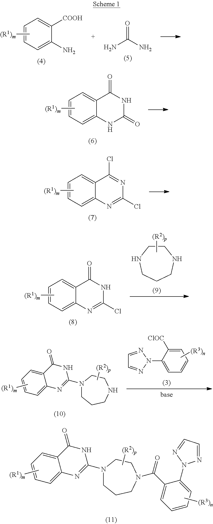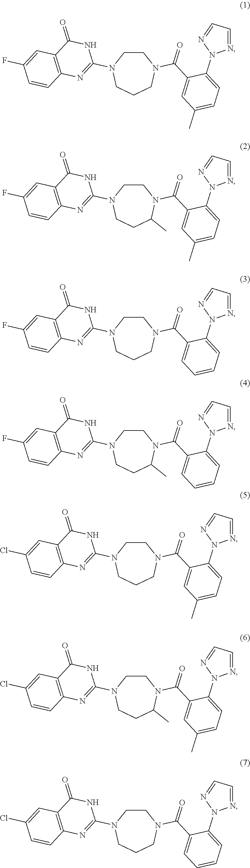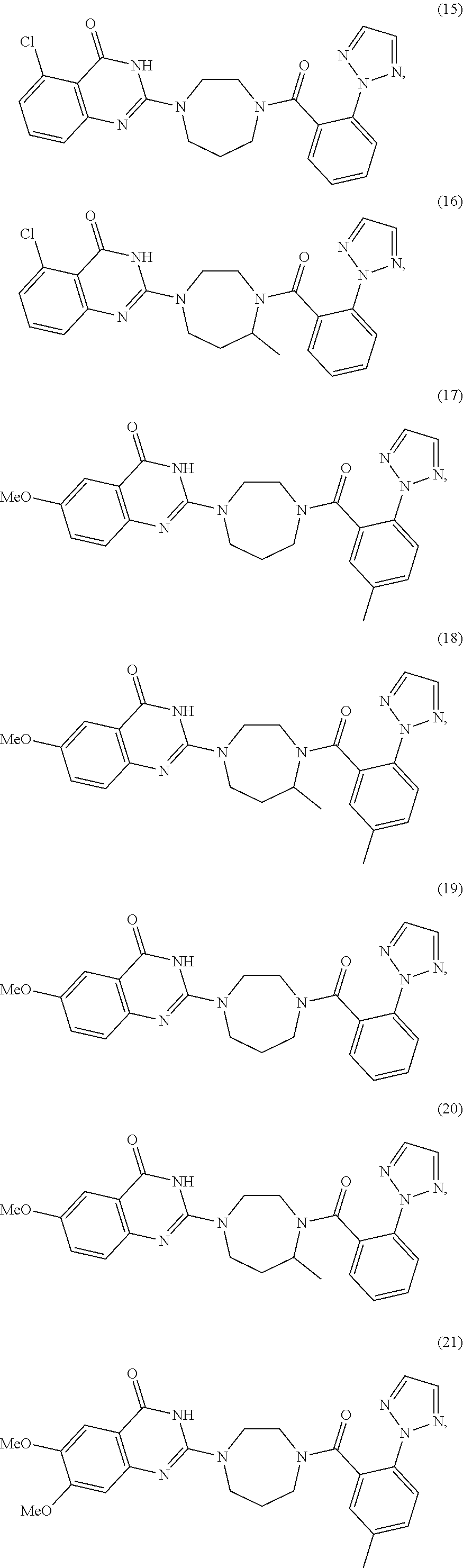 6,7-Dimethoxy-2-(5-methyl-1,4-diazepan-1-yl)quinazolin-4(3H)-one (0.19 g, 0.60 mmol) was reacted with 2-(2H-1,2,3-triazole-2-yl)benzoyl chloride (0.15 g, 0.72 mmol) and triethylamine (0.33 mL, 2.4 mmol) in anhydrous dichloromethane (25 mL) according to the procedure as described in step 7 of example 1, and the crude product was purified by silica gel chromatography (dichloromethane/methanol (v/v)=50/1) to give the title compound (as a white solid, 0.22 g, 74%).