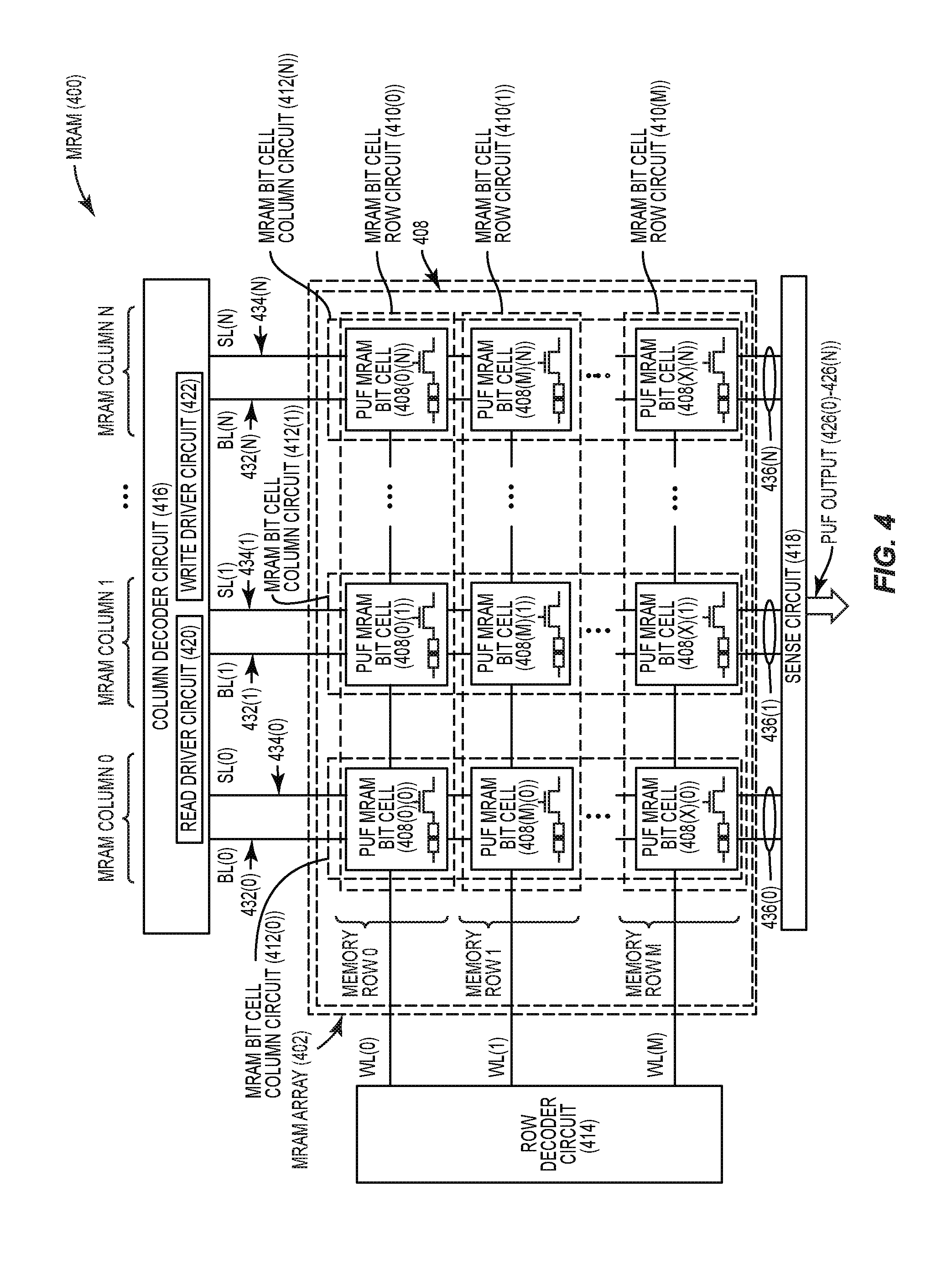 receive a PUF data signal representing a resistance of at least one PUF MRAM bit cell in the at least one MRAM bit cell column circuit for the selected MRAM bit cell row circuit for the PUF read operation; and generate a PUF output indicating a memory state in the at least one PUF MRAM bit cell in the at least one MRAM bit cell column circuit for the selected MRAM bit cell row circuit, based on the PUF data signal; and a write driver circuit coupled to the PUF output, the write driver circuit configured to, in response to the PUF read operation selecting the MRAM bit cell row circuit of the PUF MRAM bit cells to be read: