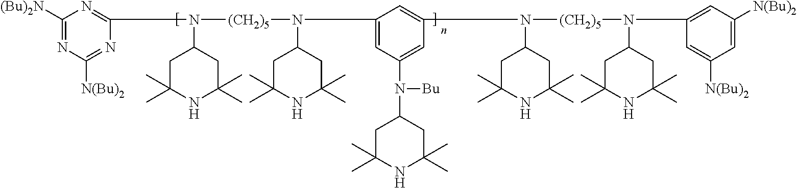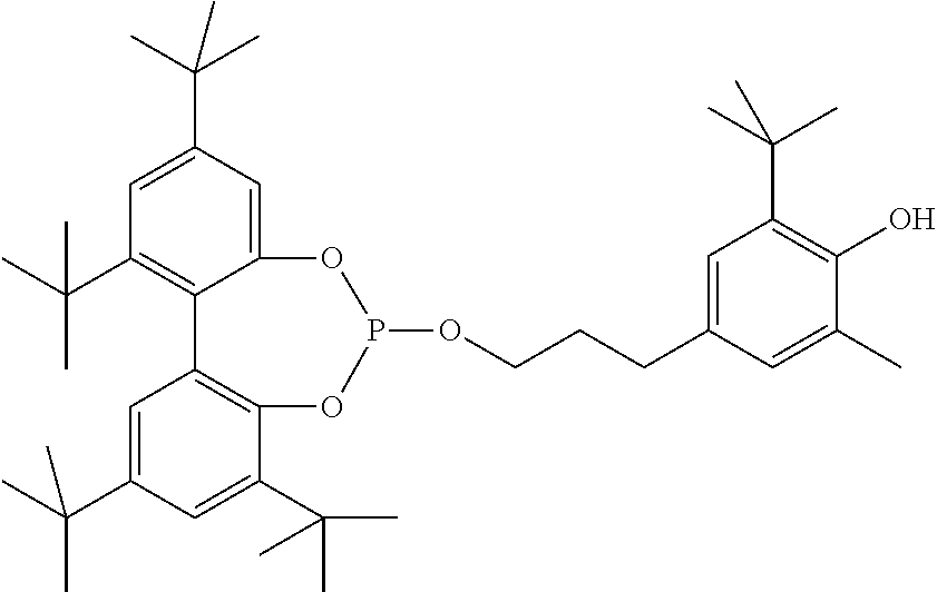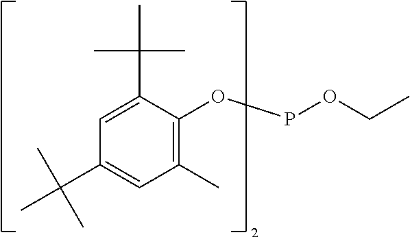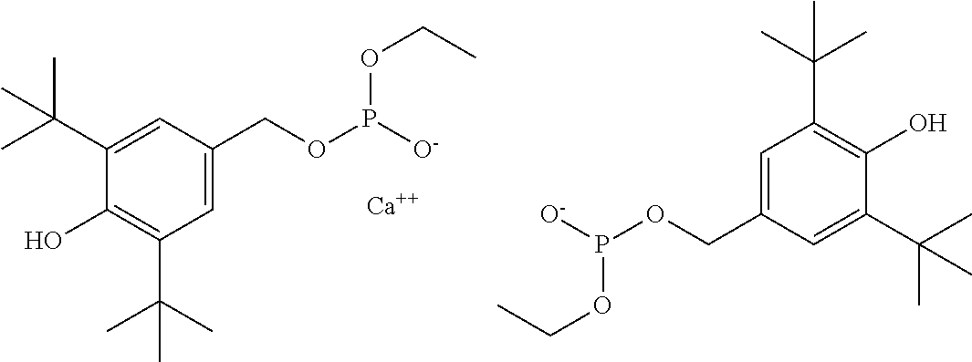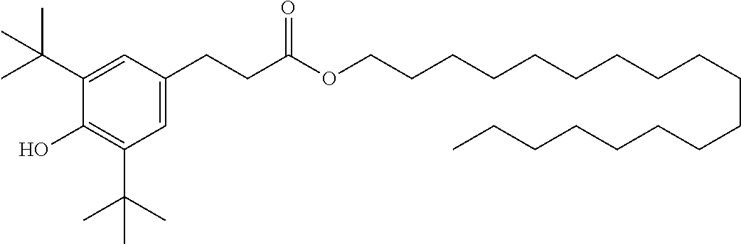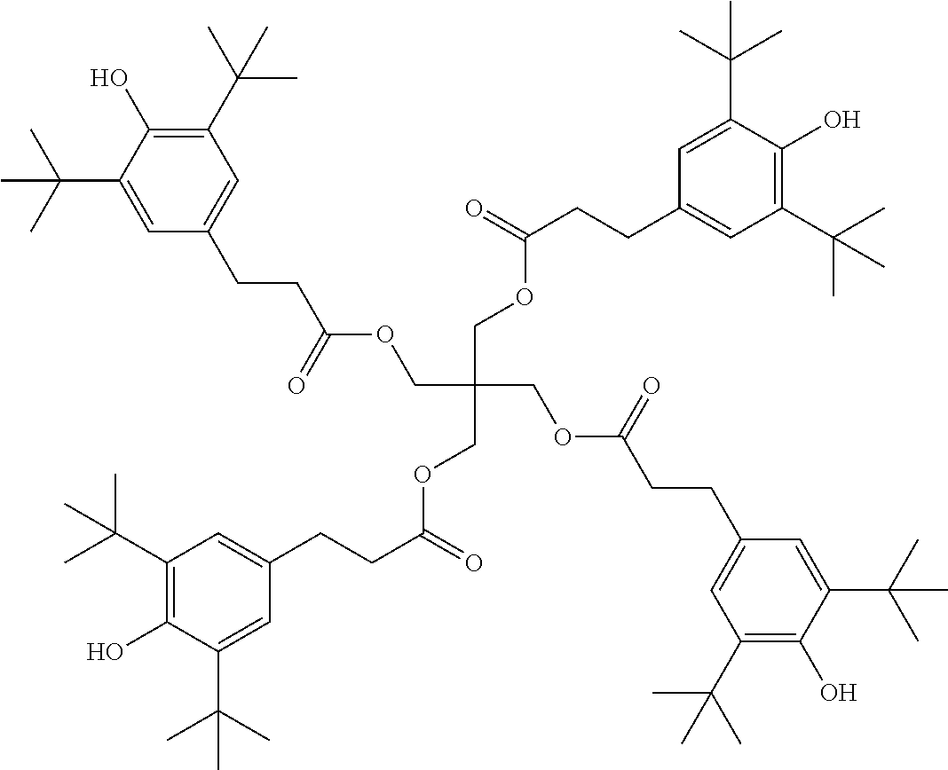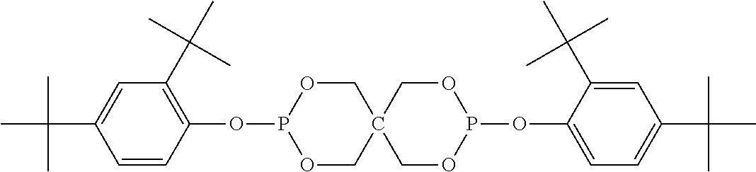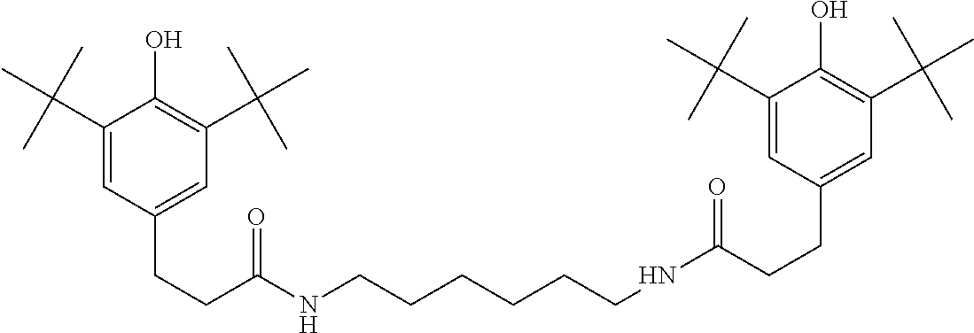 —(CO—CH2—CH2)x—(CO-A)y- (b)(a1) (a2) (a3) (a4) (a5) (a6) (a7) (a8) (a9) (a10) (a11) (a12) (b1) (b2) (b3) (b4) (b5) (b6) (d1) tetrakis(3-(3,5-di-tert-butyl-4- hydroxyphenyl)propionate), commercially available notably as Irganox ® 1010 stabilizer from BASF (d2) Thiodiethylenebis[3-(3,5-di-tert.-butyl-4- hydroxy-phenyl)propionate], commercially available notably as Irganox ® 1035 stabilizer from BASF (d3) Octadecyl-3-(3,5-di-tert.butyl-4- hydroxyphenyl)-propionate, commercially available notably as Irganox ® 1076 stabilizer from BASF (d4) N,N′-hexane-1,6-diylbis(3-(3,5-di-tert.- butyl-4-hydroxyphenylpropionamide)), commercially available notably as Irganox ® 1098 stabilizer from BASF (d5) 1,3,5-Trimethyl-2,4,6-tris(3,5-di-tert- butyl-4-hydroxybenzyl)benzene, commercially available notably as Irganox ® 1330 stabilizer from BASF (d6) Benzenepropanoic acid, 3,5-bis(1,1- dimethylethyl)-4-hydroxy-,C7-C9 branched alkyl esters, commercially available notably as Irganox ® 1135 stabilizer from BASF (d7) Hexamethylene bis[3-(3,5-di-tert-butyl- 4-hydroxyphenyl)propionate], commercially available notably as Irganox ® 259 stabilizer from BASF (d8) Tris(3,5-di-tert-butyl-4-hydroxybenzyl) isocyanurate, commercially available notably as Irganox ® 3114 stabilizer from BASF (d9) 2,6-di-tert-butyl-4-(4,6-bis(octylthio)- 1,3,5-triazin-2-ylamino)phenol, commercially available notably as Irganox ® 565 stabilizer from BASF (d10) commercially available notably as Irganox ® 1425 stabilizer from BASF (d11) 2-Methyl-4,6- bis(octylsulfanylmethyl)phenol, commercially available notably as Irganox ® 1520 stabilizer from BASF (d12) 2,4-Bis(dodecylthiomethyl)-6- methylphenol, commercially available notably as Irganox ® 1726 stabilizer from BASF (d13) Triethylene glycol bis(3-tert-butyl-4- hydroxy-5-methylphenyl)propionate, commercially available notably as Irganox ® 245 stabilizer from BASF (e1) (e2) (e3) (e4) (e5) (e6) (e7) (e8) (e9) (e10) (e11) (e12) (f1) (f2) DESCRIPTION OF EMBODIMENTS