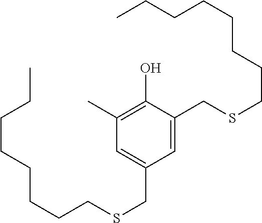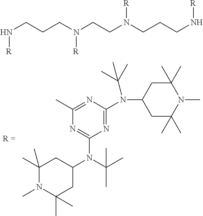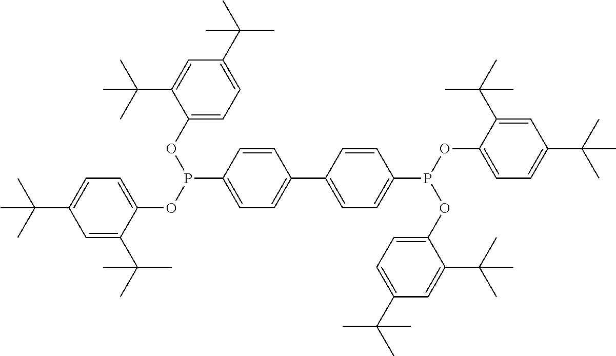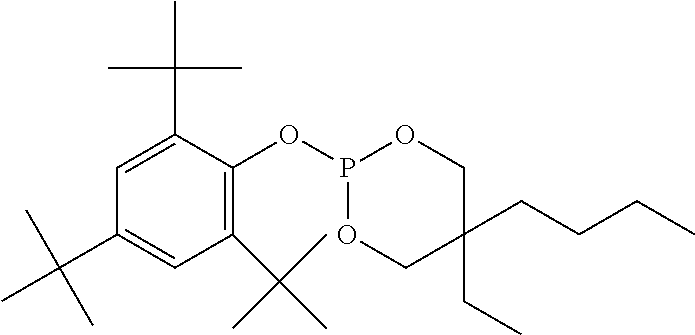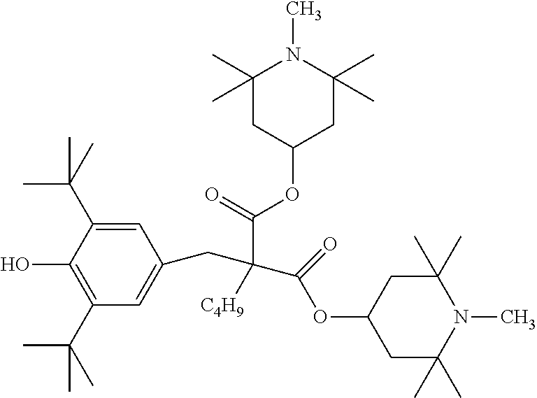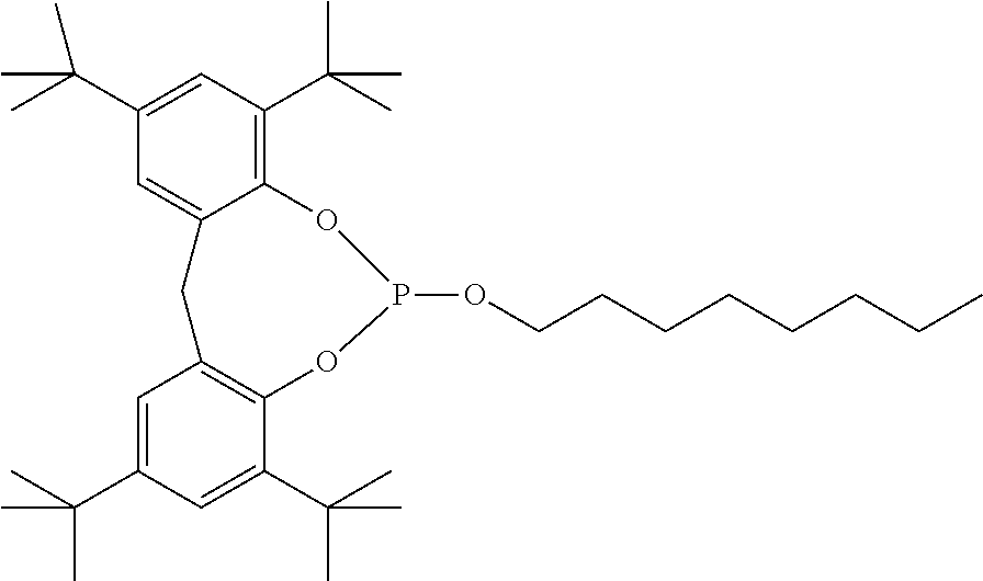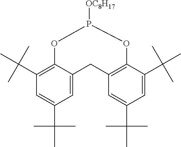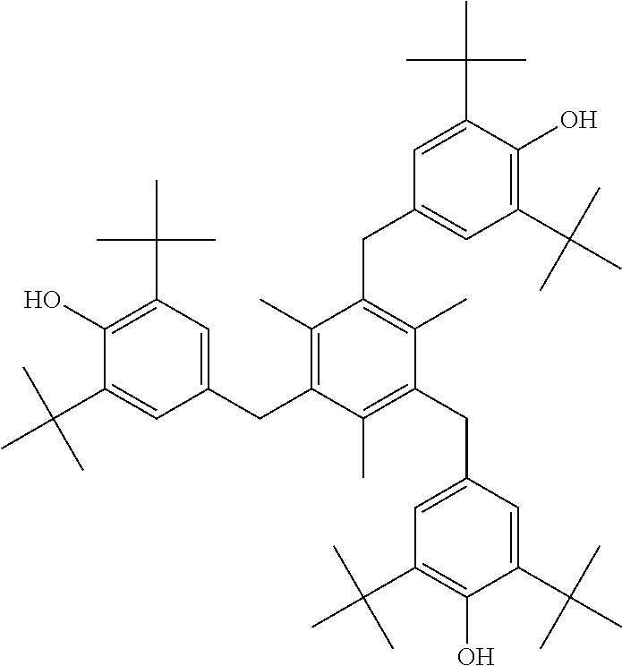 —(CO—CH2—CH2)x—(CO-A)y- (b)(a1) (a2) (a3) (a4) (a5) (a6) (a7) (a8) (a9) (a10) (a11) (a12) (b1) (b2) (b3) (b4) (b5) (b6) (d1) tetrakis(3-(3,5-di-tert-butyl-4- hydroxyphenyl)propionate), commercially available notably as Irganox ® 1010 stabilizer from BASF (d2) Thiodiethylenebis[3-(3,5-di-tert.-butyl-4- hydroxy-phenyl)propionate], commercially available notably as Irganox ® 1035 stabilizer from BASF (d3) Octadecyl-3-(3,5-di-tert.butyl-4- hydroxyphenyl)-propionate, commercially available notably as Irganox ® 1076 stabilizer from BASF (d4) N,N′-hexane-1,6-diylbis(3-(3,5-di-tert.- butyl-4-hydroxyphenylpropionamide)), commercially available notably as Irganox ® 1098 stabilizer from BASF (d5) 1,3,5-Trimethyl-2,4,6-tris(3,5-di-tert- butyl-4-hydroxybenzyl)benzene, commercially available notably as Irganox ® 1330 stabilizer from BASF (d6) Benzenepropanoic acid, 3,5-bis(1,1- dimethylethyl)-4-hydroxy-,C7-C9 branched alkyl esters, commercially available notably as Irganox ® 1135 stabilizer from BASF (d7) Hexamethylene bis[3-(3,5-di-tert-butyl- 4-hydroxyphenyl)propionate], commercially available notably as Irganox ® 259 stabilizer from BASF (d8) Tris(3,5-di-tert-butyl-4-hydroxybenzyl) isocyanurate, commercially available notably as Irganox ® 3114 stabilizer from BASF (d9) 2,6-di-tert-butyl-4-(4,6-bis(octylthio)- 1,3,5-triazin-2-ylamino)phenol, commercially available notably as Irganox ® 565 stabilizer from BASF (d10) commercially available notably as Irganox ® 1425 stabilizer from BASF (d11) 2-Methyl-4,6- bis(octylsulfanylmethyl)phenol, commercially available notably as Irganox ® 1520 stabilizer from BASF (d12) 2,4-Bis(dodecylthiomethyl)-6- methylphenol, commercially available notably as Irganox ® 1726 stabilizer from BASF (d13) Triethylene glycol bis(3-tert-butyl-4- hydroxy-5-methylphenyl)propionate, commercially available notably as Irganox ® 245 stabilizer from BASF (e1) (e2) (e3) (e4) (e5) (e6) (e7) (e8) (e9) (e10) (e11) (e12) (f1) (f2) DESCRIPTION OF EMBODIMENTS