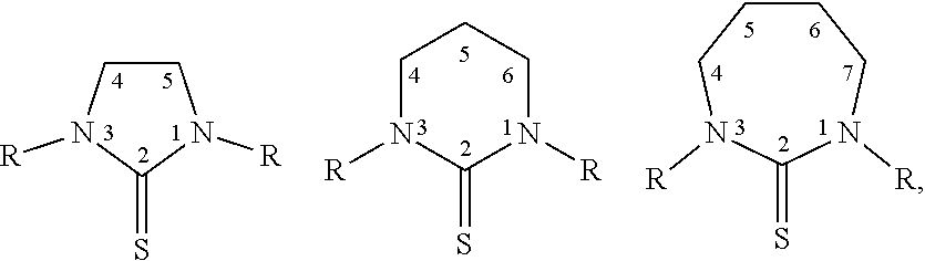 The present application is a Continuation of Ser. No. 15/794,384, now U.S. patent Ser. No. 10/278,944, having a filing date of Oct. 26, 2017. The present disclosure relates to cis-amine Pt(II) thione complexes having the general formula, cis-[Pt(NH3)2(Thione)2].2NO3and to a method for treating or inhibiting cancer using them. The “background” description provided herein is for the purpose of generally presenting the context of the disclosure. Work of the presently named inventor(s), to the extent it is described in this background section, as well as aspects of the description which may not otherwise qualify as prior art at the time of filing, are neither expressly or impliedly admitted as prior art against the present invention. Cisplatin is known to be one of the most effective drugs for the treatment of a variety of cancers. See T. C. Johnstone, K. Suntharalingam, S. J. Lippard, Some platinum(II) complexes with sulfur-containing ligands such as dithiocarbamates, thiosemicarbazones and thioureas have shown superior or equal efficacy towards some human tumor cell lines and with less toxicity than cisplatin. See D. Fregona, L. Giovagnini, L. Ronconi, C. Marzano, A. Trevisan, S. Sitran, B. Biondi, F. Bordin, J. Inorg. Biochem. 93 (2003) 181-189; G. Faraglia, D. Fregona, S. Sitran, L. Giovagnini, C. Marzano, F. Baccichetti, U. Casellato, R. Graziania, J. Inorg. Biochem. 83 (2001) 31-40; L. Giovagnini, L. Ronconi, D. Aldinucci, D. Lorenzon, S. Sitran, D. Fregona. J. Med. Chem. 48 (2005) 1588; D. Kovala-Demertzi, P. N. Yadav, M. A. Demertzis, M. Coluccia. J. Inorg. Biochem. 78 (2000) 347; A. G. Quiroga, and C. N. Ranninger, Coord. Chem. Rev. 248 (2004) 119-133; D. Kovala-Demertzi, A. Papageorgiou, L. Papathanasis, A. Alexandratos, P. Dalezis, J. R. Miller, M. A. Demertzis, Eur. J. Med. Chem. 44 (2009) 1296-1302; G. Marverti, M. Cusumano, A. Ligabue, M. L. Di Pietro, P. A. Vainiglia, A. Ferrari, M. Bergomi, M. S. Moruzzi, C. Frassineti, J. Inorg. Biochem. 102 (2008) 699-712; L. Fuks, E. Anuszewska, H. Kruszewska, A. Krowczynski, J. Dudek, N. Sadlej-Sosnowska, Transition Met. Chem. 35 (2010) 639-647; A. Z. A. Mustafa, M. Altaf, M. Monim-ul-Mehboob, M. Fettouhi, M. I. M Wazeer, A. A Isab, V. Dhuna, G. Bhatia, K. Dhuna, Inorg. Chem. Commun. 44 (2014) 159-163; and A. Zainelabdeen A. Mustafa, M. Monim-ul-Mehboob, M. Y. Jomaa, M. Altaf, M. Fettouhi, A. A. Isab, M. I. M. Wazeer, H. Stoeckli-Evans, G. Bhatia, V. Dhuna, J. Coord. Chem. 68 (2015) 3511-3524, each incorporated herein by reference in their entirety. Sulfur-containing molecules are also under study as chemoprotectants in platinum-based drugs chemotherapy. See S. Ahmad, A. Isab, S. Ali, Transition Met. Chem. 31 (2006) 1003-1016; and M. Galanski, each incorporated herein by reference in their entirety. These studies show that there is a significant potential in the studies of Pt(II) complexes of sulfur donor ligands such as thiones. Several thione derivatives of cisplatin displaying antitumor activities have also been reported. See G. Marverti, incorporated herein by reference in its entirety. To explore further about the antitumor potential of platinum-thione complexes, herein is disclosed the synthesis, spectroscopic characterization and anticancer activities of a number of cis-platinum(II) complexes with heterocyclic thiones ligand such as imidazolidine-2-thione (Imt), diazinane-2-thione (Diaz) and their derivatives as given in scheme 1. The synthesis of these complexes and characterization by elemental analysis, IR and NMR (1H &13C) methods is one object of the present disclosure. It is a further object of the disclosure to compare spectroscopic data with the coordination of thiones to platinum(II) and show in vitro cytotoxic properties of all these complexes against three human cancer cell lines, which include; A549 (human lung carcinoma), MCF-7 (human breast carcinoma) and HTC15 (human colon cancer), in comparison to the therapeutically used anticancer agents cisplatin and carboplatin. The in vitro cytotoxicities in several cases are, comparable to cisplatin and higher than carboplatin. The following provides a summary of certain exemplary embodiments of the present invention. This summary is not an extensive overview and is not intended to identify key or critical aspects or elements of the present invention or to delineate its scope. The invention is directed to platinum(II) complexes with thiones and to methods of treating cancer using these complexes. Several classes and ten complexes are exemplified; that is Complexes 1, 2, 3, 4, 5, 6, 7, 8, 9 and 10. The invention includes these complexes as well as their structural variants, for example, complexes containing substituted amines, substituted thiones, or those containing anions other than NO3. The foregoing summary, as well as the following detailed description of preferred embodiments of the invention, will be better understood when read in conjunction with the appended drawings. It should be understood, however, that the invention is not limited to the precise features, arrangements, or instrumentalities shown. The invention is directed to cis-diamine platinum(II) thione complexes with thione ligands as shown by The present disclosure will be better understood with reference to the following As used herein “compound” and “complex” are used interchangeably and are intended to refer to a chemical entity, whether in a solid, liquid or gaseous phase and whether in a crude mixture or a purified and isolated form. For example, cis-diamino platinum(II) thione complex (1) of the invention may be referred to as 1, complex 1, or compound 1 and similarly with regard to other enumerated complexes disclosed herein. Platinum(II) or Pt(II) describes platinum in an oxidation state of +2. One example of a platinum(II) compound is platinum chloride having the chemical formula PtCl2. Thiones include but are not limited to those described by the formulas below, wherein R is a suitable su