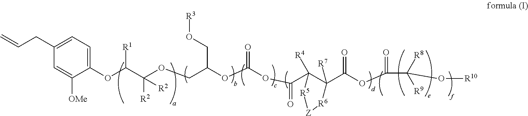 Documents EP 94386 B1 and DE 3342509 A1 describe compositions comprising eugenol-based poly ethers.