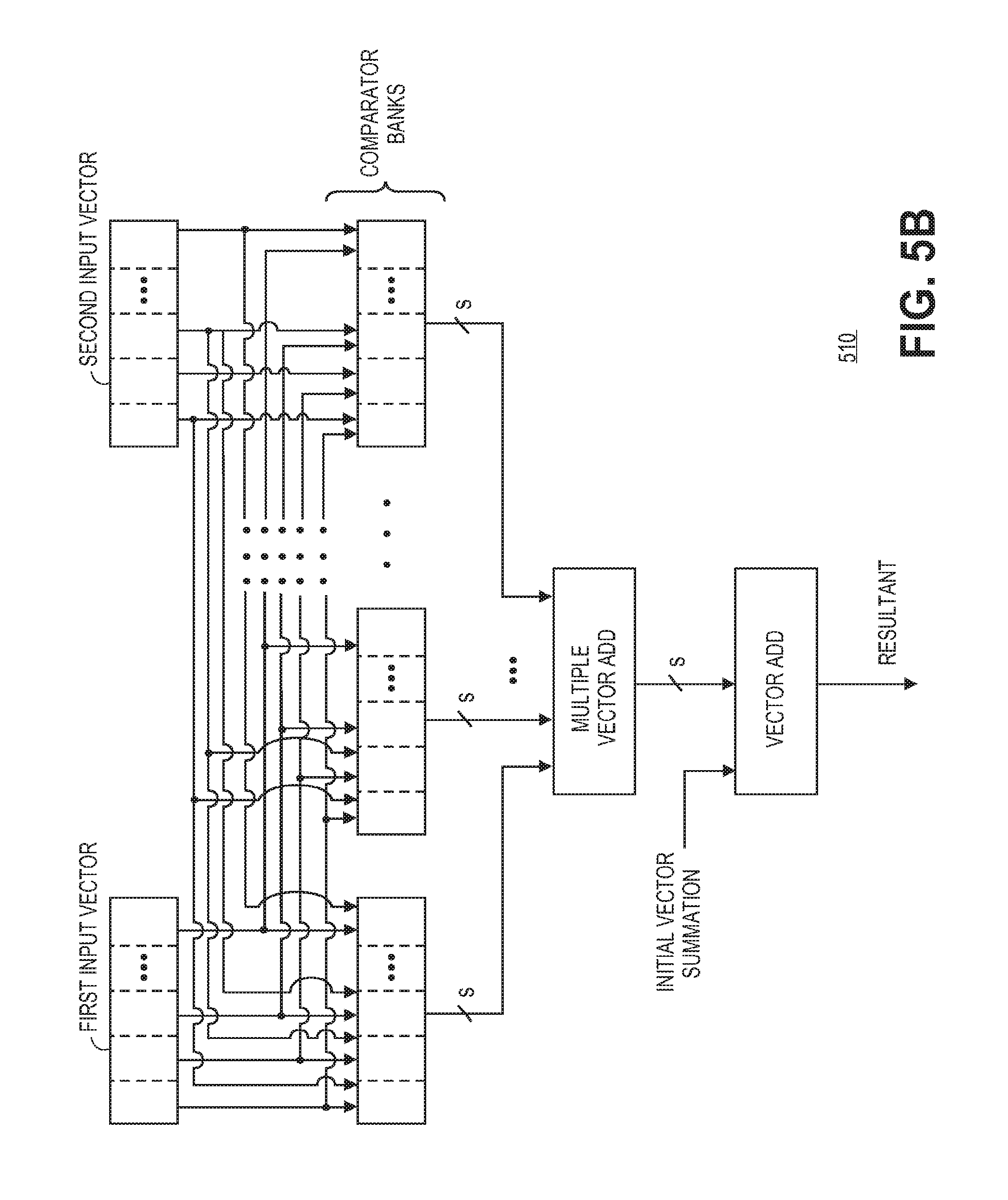 comparing a plurality of elements of a first input vector against an element of a second input vector with multiple comparator circuits of comparator bank circuitry, fanning-out the element of the second input vector to the multiple comparator circuits of the comparator bank circuitry to perform multiple comparisons of the element of the second input vector against the plurality of elements of the first input vector, fanning-in multiple respective values from the multiple comparator circuits to adder circuitry, and adding a number of elements of the first input vector that match the element of the second input vector to produce a scalar summation value for the element of the second input vector against the plurality of elements of the first input vector with the adder circuitry. 12. The method of 13. The method of comparing the plurality of elements of the first input vector against another element of a second input vector. 14. The method of 15. The method of equal range; and equal any. 16. The method of 17. The method of 18. A non-transitory machine readable storage medium containing program code that when processed by a machine causes the machine to perform a method comprising: