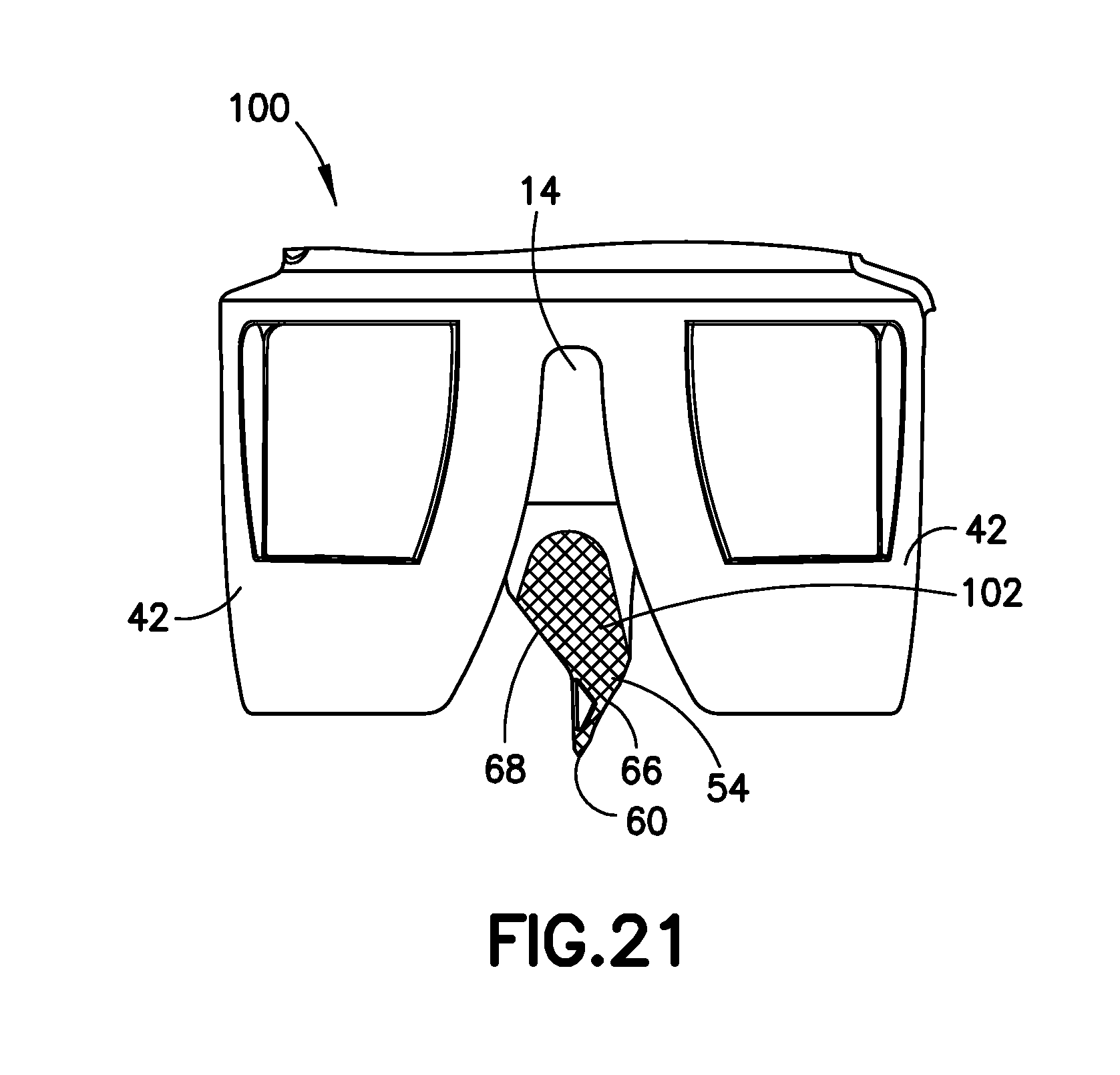 FIG. 21 is a partial left side view of a vial access device according to a second embodiment of the present invention.