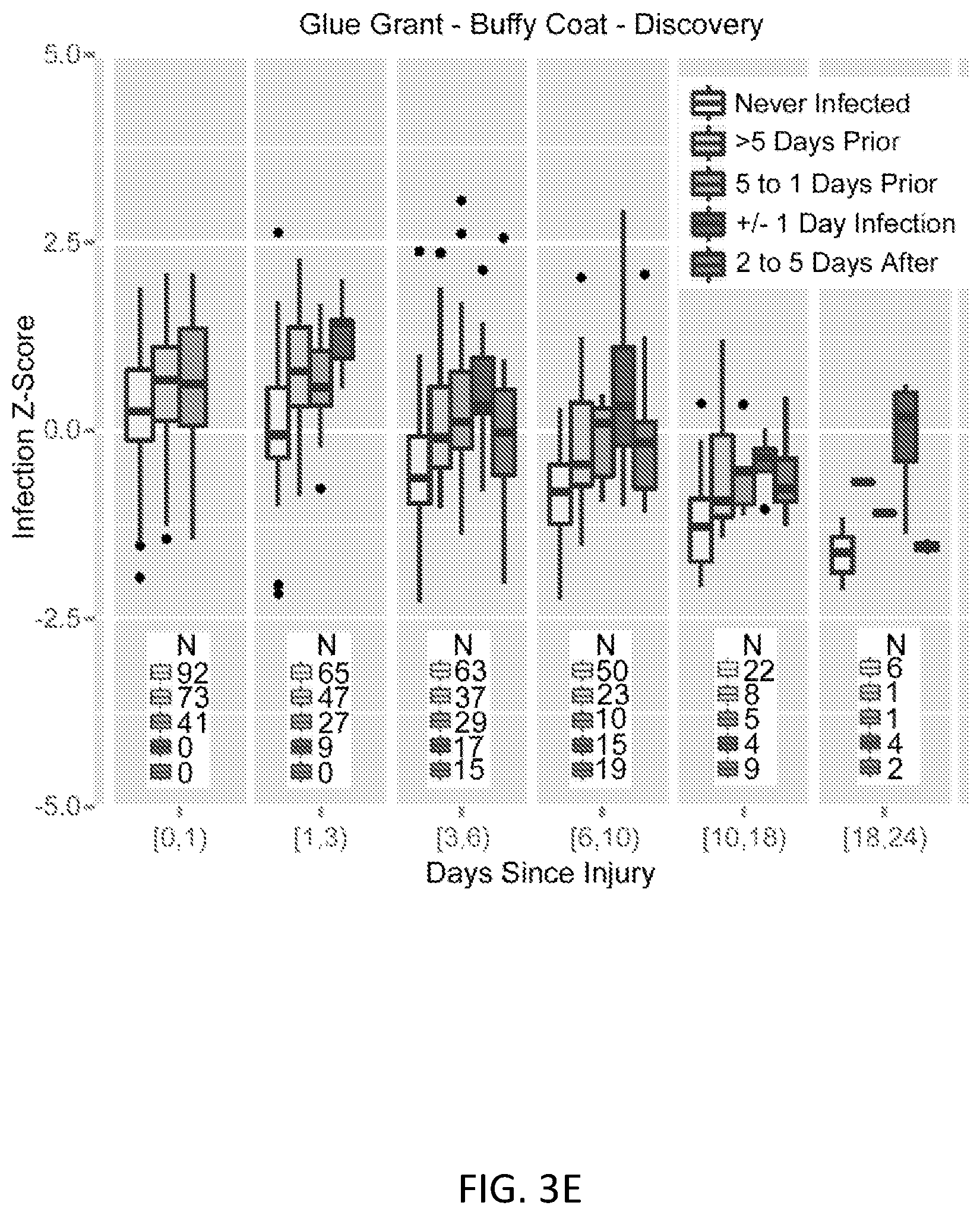 This invention was made with Government support under contracts A1057229, AI109662, and LM007033 awarded by the National Institutes of Health. The Government has certain rights in the invention. The sequencing listing entitled STAN-1391 SEQ-LIST.txt, created on May 11, 2017 of size 38 KB is hereby incorporated by reference. The present invention pertains generally to methods for diagnosis of sepsis. In particular, the invention relates to the use of biomarkers for aiding diagnosis, prognosis, and treatment of sepsis, and more specifically to biomarkers that can be used to distinguish sepsis from noninfectious sources of inflammation, such as caused by traumatic injury, surgery, autoimmune disease, thrombosis, or systemic inflammatory response syndrome (SIRS). Sepsis, a syndrome of systemic inflammation in response to infection, kills approximately 750,000 people in the United States every year (Angus et al. (2001) Crit Care Med 29:1303-1310). It is also the single most expensive condition treated in the US, costing the healthcare system more than $24 billion annually (Lagu et al. (2012) Crit Care Med 40:754-761); Torio and Andrews (2013) National Inpatient Hospital Costs: The Most Expensive Conditions by Payer, 2011 (Statistical Brief #160, Agency for Healthcare Research and Quality, Rockville, Md., August 2013). Prompt diagnosis and treatment of sepsis is crucial to reducing mortality, with every hour of delay increasing mortality risk (Gaieski et al. (2010) Crit Care Med 38:1045-1053; Ferrer et al. (2014) Crit Care Med 42:1749-1755). Sepsis is defined by the presence of systemic inflammatory response syndrome (SIRS), in addition to a known or suspected source of infection (Dellinger et al. (2013) Intensive Care Med 39:165-228). However, SIRS is not specific for sepsis, as sterile inflammation can arise as a nonspecific response to trauma, surgery, thrombosis, and other non-infectious insults. Thus, sepsis can be difficult to distinguish clinically from systemic inflammation caused by non-infectious sources, such as tissue trauma (Coburn et al. JAMA (2012) 308:502-511). There is no ‘gold standard’ blood test for distinguishing patients with infections at time of diagnosis, before results become available from standard microbiological cultures. One of the most common biomarkers of infection, procalcitonin, has a summary area under the receiver operating characteristic curve (AUC) of 0.78 (range 0.66-0.90) (Tang et al. (2007) Lancet Infect Dis 7:210-217; Uzzan et al. (2006) Crit Care Med 34:1996-2003; Cheval et al. (2000) Intensive Care Med 26 Suppl 2:S153-158; Ugarte et al. (1999) Crit Care Med 27:498-504). Several groups have evaluated whether cytokine or gene expression arrays can accurately diagnose sepsis; however, due to the highly variable nature of host response and human genetics, no robust diagnostic signature has been found (Cobb et al. (2009) Ann Surg 250:531-539; Xiao et al. (2011) J Exp Med 208:2581-2590; Pankla et al. (2009) Genome Biol 10:R127; Tang et al. (2009) Crit Care Med 37:882-888; Wong (2012) Crit Care 16:204; Johnson et al. (2007) Ann Surg 245:611-621). Indeed, “finding the ‘perfect’ sepsis marker has been one of the most elusive dreams in modern medicine” (Vega et al. (2009) Crit Care Med 37:1806-1807). Both infections and tissue trauma activate many of the same innate immune receptor families, such as the Toll-like receptors and NOD-like receptors, and consequently, activate largely overlapping transcriptional pathways. Thus, distinguishing conserved downstream effects attributable solely to infections has been exceedingly difficult. Recent work has shown that there are pattern recognition receptors potentially specific to pathogen response, such as the c-type lectin, CEACAM, and siglec receptor families (Geijtenbeek et al. (2009) Nat Rev Immunol 9:465-479; Crocker (2007) Nat Rev Immunol 7:255-266; Kuespert et al. (2006) Curr Opin Cell Biol 18:565-571). Hence, it may be possible that an infection-specific immune response could be differentiated from sterile inflammation. The ongoing search for new therapies for sepsis, and for new prognostic and diagnostic biomarkers, has generated several dozen microarray-based genome-wide expression studies over the past decade, variously focusing on diagnosis, prognosis, pathogen response, and underlying sepsis pathophysiology (Johnson et al., supra; Maslove et al. (2014) Trends Mol Med. 20(4):204-213). Despite tremendous gains in the understanding of gene expression in sepsis, few insights have translated to improvements in clinical practice. Importantly, many of these studies have been deposited into public repositories such as the NIH Gene Expression Omnibus (GEO) and ArrayExpress, and thus there is now a wealth of publically available data on sepsis. In particular, there are several studies comparing patients with sepsis to patients with non-infectious inflammation (such as SIRS) that occurs after major surgery, traumatic injury, or in non-sepsis-related ICU admission (thrombosis, respiratory failure, etc.). One dataset in particular, the Inflammation and Host Response to Injury Program (Glue Grant) (Cobb et al. (2005) Proc Natl Acad Sci USA 102:4801-4806), has yielded several important findings about the effects of time on gene expression after trauma and in sepsis. One part of the Glue Grant longitudinally examined gene expression in patients after severe traumatic injuries. Several groups have examined these data with respect to time; notable findings are that (1) more than 80% of expressed genes show differential expression after traumatic injury (Xiao et al., supra), (2) different clusters of genes recover over markedly different time periods (Seok et al. (2013) Proc Natl Acad Sci USA 110:3507-3512), (3) differing scenarios of inflammation such as trauma, burns, and endotoxicosis exhibit similar gene expression changes (Seok et al., supra), and (4) the extent to which post-trauma gene expression profiles 