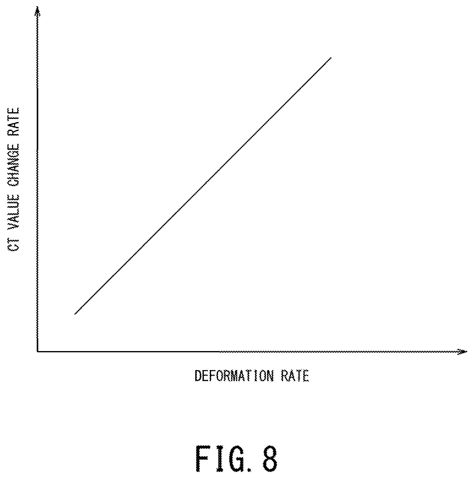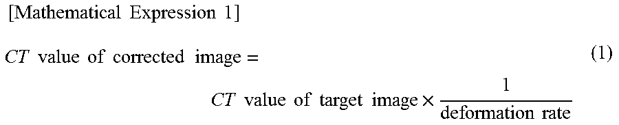 correct pixel values of a target image according to an amount of deformation of the target image when the target image is aligned with a reference image by executing a program read out from memory circuitry, the reference image and the target image being among the medical images in the plurality of time phases, set a same grid on each of the reference image and the target image, thereby dividing each of the reference image and the target image into a plurality of regions in a grid-like arrangement, calculate a relational expression between the deformation rate of the grid and a rate of change of the pixel values, and correct the medical image based on the relational expression. 16. The medical image processing apparatus according to