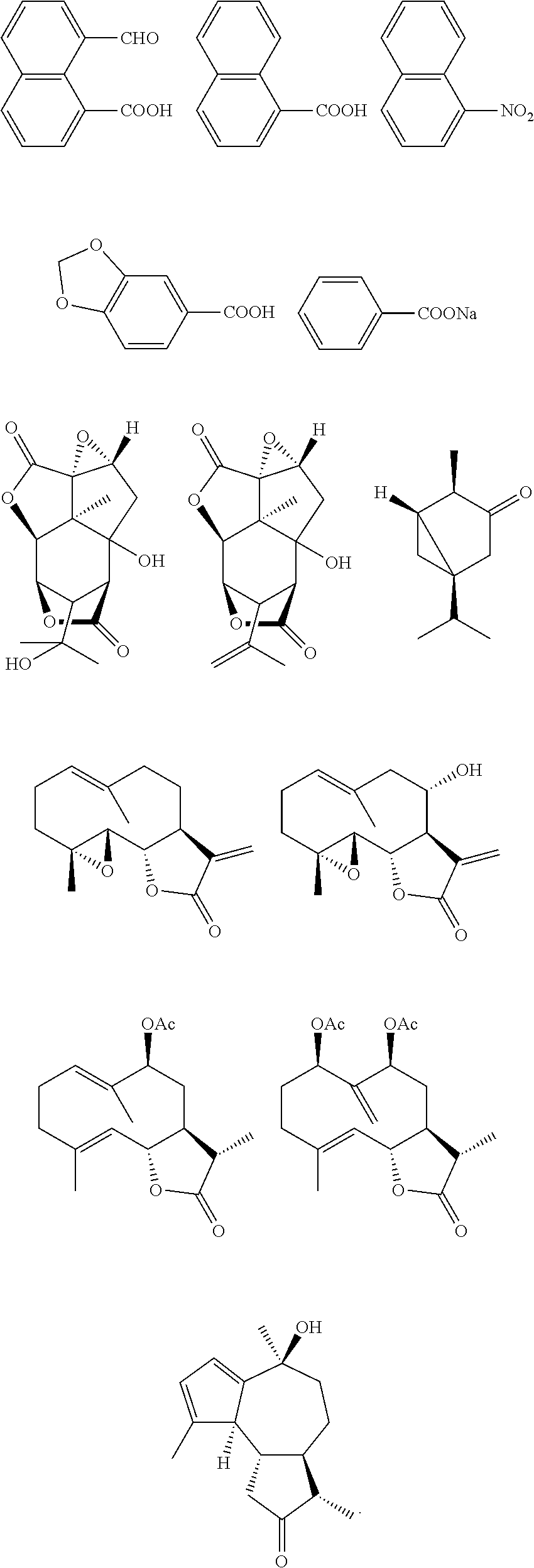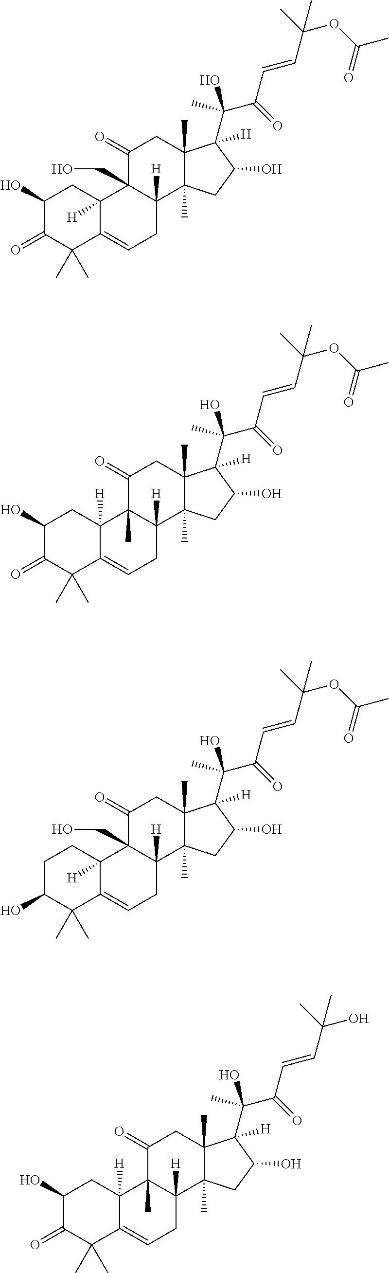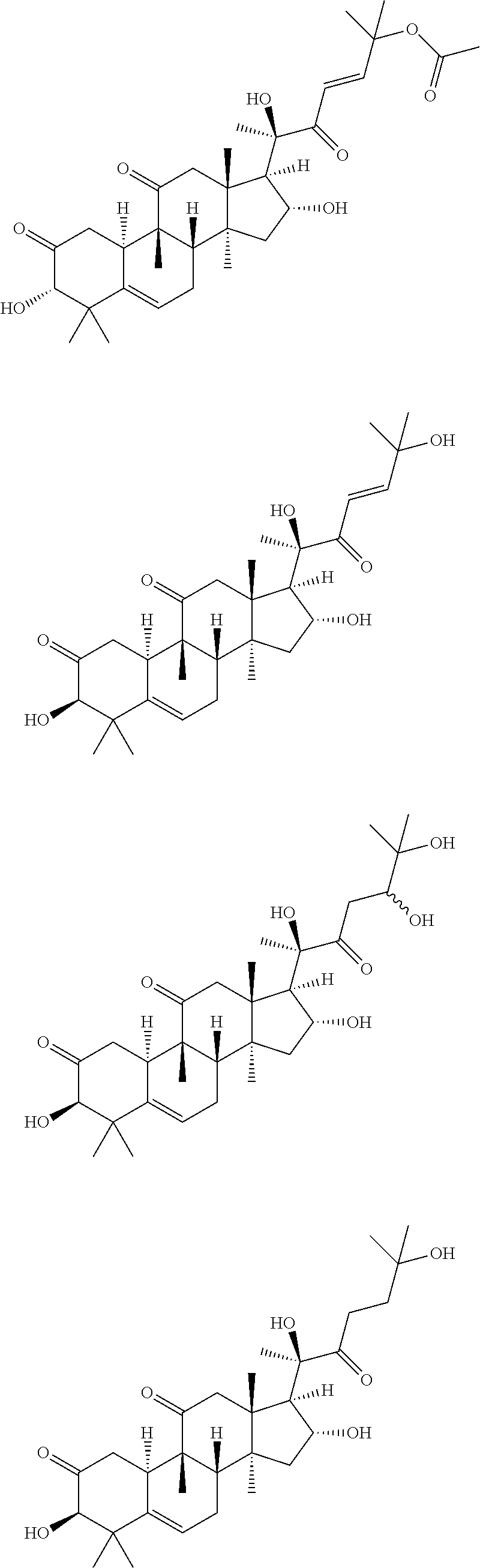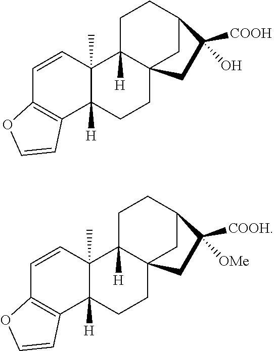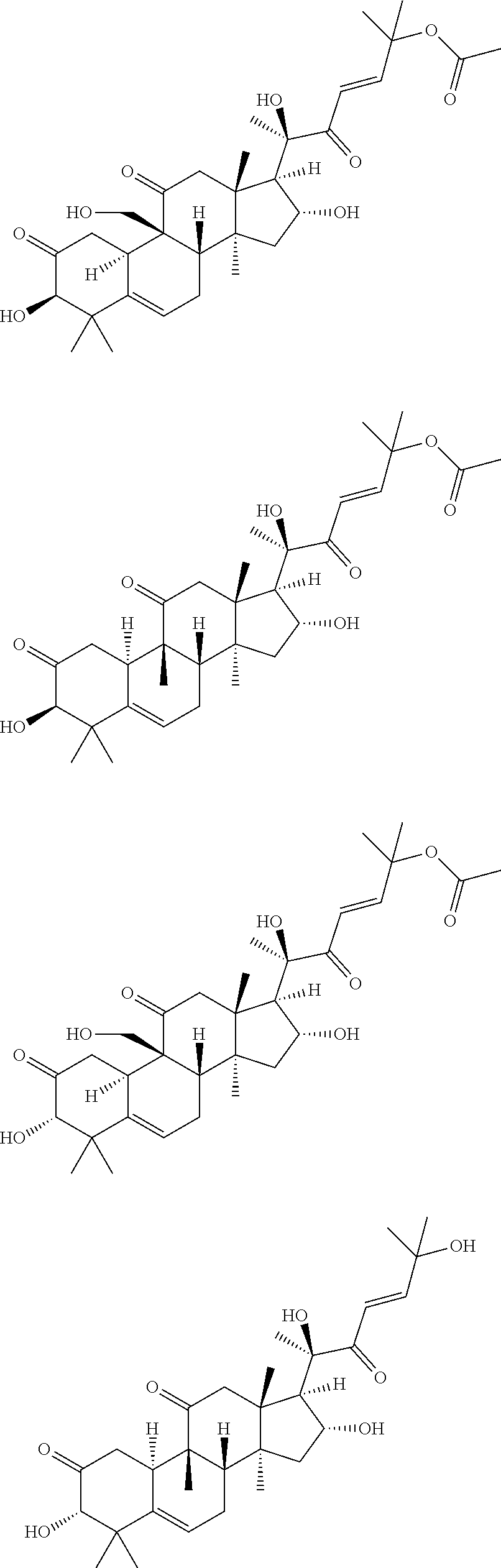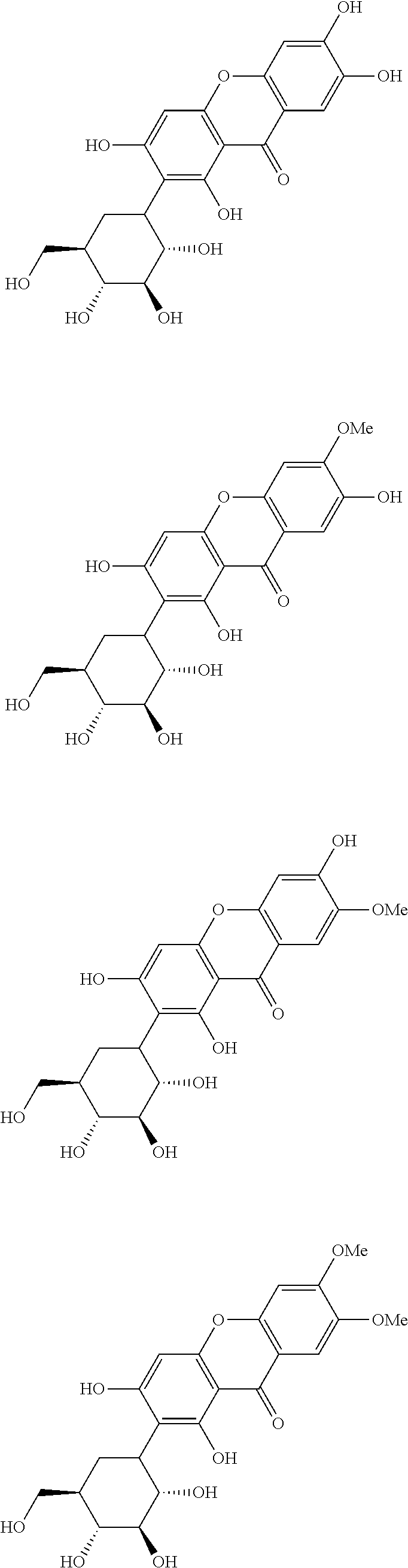 MONOTERPENE Perillartine (10)b 370 SESQUITERPENES Bisabolanes (+)-Hernandulcin (11) 1,500 4β-Hydroxyhernandulcin (12) N.S.c Acyclic glycoside Mukurozioside IIb (13) ca. 1 DITERPENES Diterpene acid 4β,11α-Dimethyl-1,2,3,4,5,10- Pine tree 1,300-1,800d hexahydro-fluorene-4α,6α- dicarboxylic acid (14)b ent-Kaurene glycosides Dulcoside A (15) 30 (Compositae) Rebaudioside A (4) 242 Rebaudioside B (16) 150 Rebaudioside C (17) 30 Rebaudioside D (18) 221 Rebaudioside E (19) 174 Rebaudioside F (20) N.S.c Rubusoside (21) 115 Steviolbioside (22) 90 Steviol 13-0-β-D-glucoside (23) N.S.c Stevioside (5) 210 Suavioside A (24) N.S.c Suavioside B (25) N.S.c Suavioside G (26) N.S.c Suavioside H (27) N.S.c Suavioside I (28) N.S.c Suavioside J (29) N.S.c Labdane glycosides Baiyunoside (30) 500 Phlomisoside I (31) N.S.c Gaudichaudioside A (32) 55 (Compositae) TRITERPENES Cucurbitane glycosides Bryodulcoside N.S.c Bryoside (33) N.S.c Bryonoside (34) N.S.c Carnosifloside V (35) 51 Chen (Cucurbitaceae) Carnosifloside VI (36) 77 Mogroside IV (37) 233-392d Zhange(Cucurbitaceae) Mogroside V (2) 250-425d 11-OxomogrosideV(38) N.S.c Scandenoside R6 (39) 54 Z.L. Chen (Cucurbitaceae) Scandenoside R11 (40) N.S.c Siamenoside I (41) 563 Cycloartane glycosides Abrusoside A (42) 30 Wall et W.& A. (Leguminosae) Abrusoside B (43) 100 Abrusoside C (44) 50 Abrusoside D (45) 75 Abrusoside E (46) N.S.c Dammarane glycosides Cyclocarioside A (47) 200 Iljinsk (Juglandaceae) Cyclocaryoside I (48) 250 Gypenoside XX (49) N.S.c Makino (Cucurbitaceae) Oleanane glycosides Albiziasaponin A (50) 5 (Leguminosae) Albiziasaponin B (51) 600 Albiziasaponin C (52) N.S.c Albiziasaponin D (53) N.S.c Albiziasaponin E (54) N.S.c Apioglycyrrhizin (55) 300 (Leguminosae) Araboglycyrrhizin (56) 150 Glycyrrhizin (1) 93-170d (Leguminosae) Periandrin I (57) 90 (Vell.) Taub. (Leguminosae) Periandrin II (58) 95 Periandrin III (59) 92 Periandrin IV (60) 85 Periandrin V (61) 220 Secodammarane glycosides Pterocaryoside A (62) 50 (Juglandaceae) Pterocaryoside B (63) 100 STEROIDAL SAPONINS Osladin (64) 500 (Polypodiaceae) Polypodoside A (65) 600 DC. Eaton (Polypodiaceae) Polypodoside B (66) N.S.c Telosmoside A8(67) N.S.c Merr. (Asclepiadaceae) Telosmoside A9(68) N.S.c Telosmoside A10(69) N.S.c Telosmoside A11(70) N.S.c Telosmoside Al2(71) N.S.c Telosmoside A13(72) N.S.c Telosmoside A14(73) N.S.c Telosmoside A15(74) 1000 Telosmoside A16(75) N.S.c Telosmoside A17(76) N.S.c Telosmoside A18(77) N.S.c PHENYLPROPANOIDS trans-Anethole(78)f 13 Trans-Cinnamaldehyde (79) 50 Kanehira (Lauraceae) DIHYDROISOCOUMARIN Phyllodulcing(3) 400 Seringe var. Makino (Saxifragaceae) FLAVONOIDS Dihydrochalcone glycosides Glycyphyllin (80) N.S.c Naringin dihydrochalconec(81) 300 Neohesperidin dihydrochalconec(82) 1,000 Phlorizin (83) N.S.c Et Zucc. (Symplocaceae) Trilobatin (84) N.S.c Dihydroflavonols and Dihydroflavonols glycosides 3-Acetoxy-5,7-dihydroxy-4'- N.S.c methoxyflavanone (85) K. Schum. (Zingiberaceae) 2R,3R-(+)-3-Acetoxy-5-7-4'- N.S.c trihydroxyflavanone (86) Dihydroquercetin 3-O-acetate 4'- 400 methyl etherc(87) & Arn.) Cabrera (Compositae) (2R,3R)-Dihydroquercetin 3-O- 80 acetate (88) K. Parker (Compositae) (2R,3R)-2,3-Dihydro-5,7,3',4'- 25 tetrahydroxy-6-methoxy-3-O- acetylflavonol (89) (2R,3R)-2,3-Dihydro-5,7,3',4'- 15 tetrahydroxy-6- methoxyflavonol (90) (2R,3R)-2,3-Dihydro- 20 5,7,4'-trihydroxy-6-methoxy- 3-O-acetylflavonol (91) Huangqioside E. (92) N.S.c Hance (Juglandaceae) Neoastilbin (93) N.S.c PROANTHOCYANIDINS Cinnamtannin B-1 (94) N.S.c Meisner (Lauraceae) Cinnamtannin D-1 (95) N.S.c Selligueain A (96) 35 Bory (Polypodiaceae) Unnamed (97) N.S.c Nakaike; Ching (Aspidiaceae) Unnamed (98) N.S.c BENZONINDENO[1,2-d]PYRAN Hematoxylin (99) 120 L. (Leguminosae) AMINO ACID Monatin (100) 1,200-1,400d A. Meeuse (Acanthaceae) PROTEINS Brazzein 2,000 Baillon (Pentadiplandraceae) Curculin 550 (Hypoxidaceae) Mabinlin N.S.c (Capparidaceae) Monellin 3,000 (Stapf) Diels. (Menispermaceae) Pentadin 500 Bailon (Pentadiplandraceae) Thaumatin 1,600 (Bennett) Benth. (Marantaceae) aValues of relative sweetness on a weight comparison basis to sucrose (=1.0) bSemisynthetic derivative of natural product. cN.S. = Sweetness potency not given. dRelative sweetness varied with the concentration of sucrose. eFormerly named fIdentified as a sweet-tasting constituent of these six species. However, this compound has a wider distribution in the plant kingdom. gThe plant of origin may be crushed or fermented in order to generate phyllodulcin Methods of Treatment