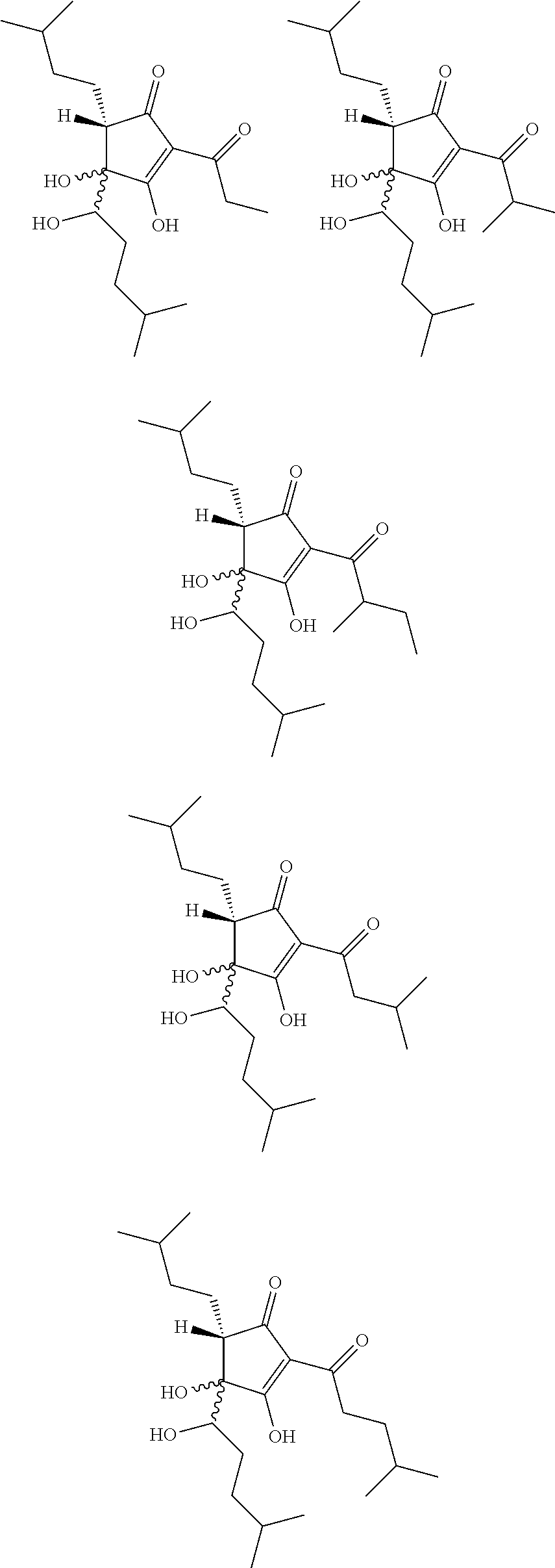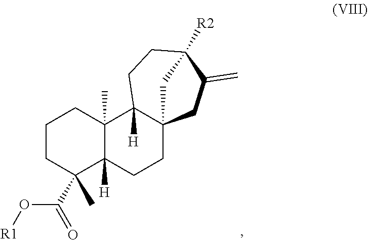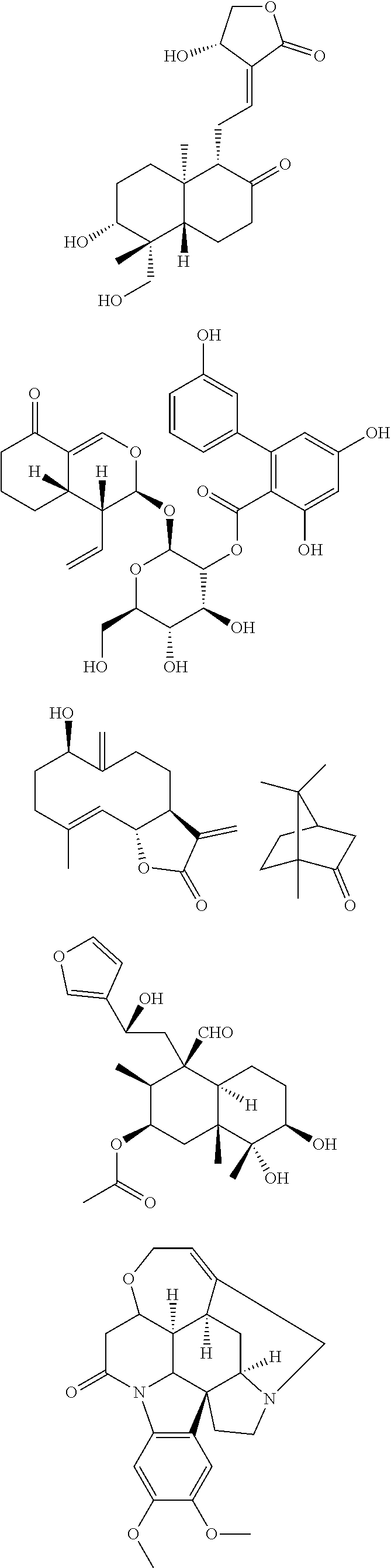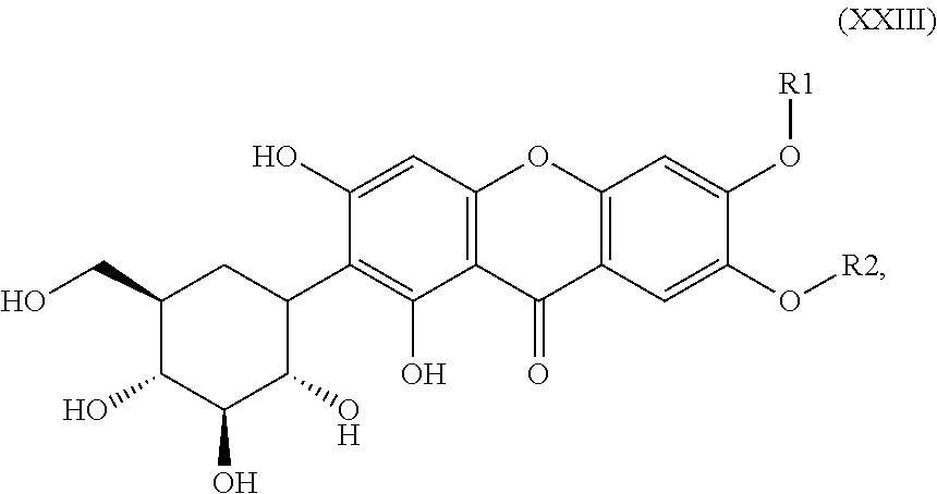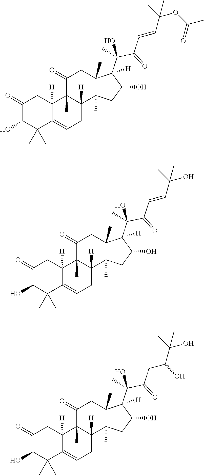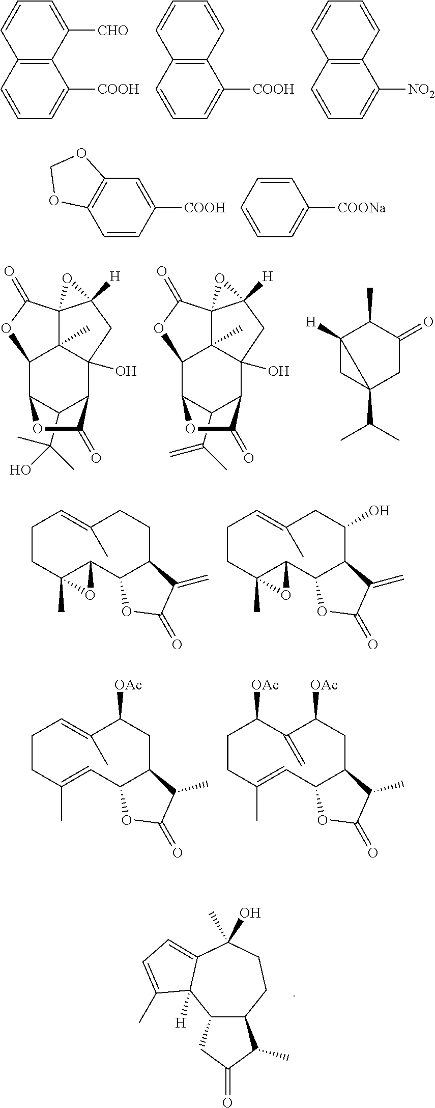 MONOTERPENE Perillartine (10)b 370 SESQUITERPENES Bisabolanes (+)-Hernandulcin (11) 1,500 4β-Hydroxyhernandulcin (12) N.S.c Acyclic glycoside Mukurozioside IIb (13) ca. 1 DITERPENES Diterpene acid 4β,11α-Dimethyl-1,2,3,4,5,10- Pine tree 1,300-1,800d hexahydro-fluorene-4α,6α- dicarboxylic acid (14)b ent-Kaurene glycosides Dulcoside A (15) 30 (Compositae) Rebaudioside A (4) 242 Rebaudioside B (16) 150 Rebaudioside C (17) 30 Rebaudioside D (18) 221 Rebaudioside E (19) 174 Rebaudioside F (20) N.S.c Rubusoside (21) 115 Steviolbioside (22) 90 Steviol 13-0-β-D-glucoside (23) N.S.c Stevioside (5) 210 Suavioside A (24) N.S.c Suavioside B (25) N.S.c Suavioside G (26) N.S.c Suavioside H (27) N.S.c Suavioside I (28) N.S.c Suavioside J (29) N.S.c Labdane glycosides Baiyunoside (30) 500 Phlomisoside I (31) N.S.c Gaudichaudioside A (32) 55 (Compositae) TRITERPENES Cucurbitane glycosides Bryodulcoside N.S.c Bryoside (33) N.S.c Bryonoside (34) N.S.c Carnosifloside V (35) 51 Chen (Cucurbitaceae) Carnosifloside VI (36) 77 Mogroside IV (37) 233-392d Zhange(Cucurbitaceae) Mogroside V (2) 250-425d 11-OxomogrosideV(38) N.S.c Scandenoside R6 (39) 54 Z.L. Chen (Cucurbitaceae) Scandenoside R11 (40) N.S.c Siamenoside I (41) 563 Cycloartane glycosides Abrusoside A (42) 30 Wall et W.& A. (Leguminosae) Abrusoside B (43) 100 Abrusoside C (44) 50 Abrusoside D (45) 75 Abrusoside E (46) N.S.c Dammarane glycosides Cyclocarioside A (47) 200 Iljinsk (Juglandaceae) Cyclocaryoside I (48) 250 Gypenoside XX (49) N.S.c Makino (Cucurbitaceae) Oleanane glycosides Albiziasaponin A (50) 5 (Leguminosae) Albiziasaponin B (51) 600 Albiziasaponin C (52) N.S.c Albiziasaponin D (53) N.S.c Albiziasaponin E (54) N.S.c Apioglycyrrhizin (55) 300 (Leguminosae) Araboglycyrrhizin (56) 150 Glycyrrhizin (1) 93-170d (Leguminosae) Periandrin I (57) 90 (Vell.) Taub. (Leguminosae) Periandrin II (58) 95 Periandrin III (59) 92 Periandrin IV (60) 85 Periandrin V (61) 220 Secodammarane glycosides Pterocaryoside A (62) 50 (Juglandaceae) Pterocaryoside B (63) 100 STEROIDAL SAPONINS Osladin (64) 500 (Polypodiaceae) Polypodoside A (65) 600 DC. Eaton (Polypodiaceae) Polypodoside B (66) N.S.c Telosmoside A8(67) N.S.c Merr. (Asclepiadaceae) Telosmoside A9(68) N.S.c Telosmoside A10(69) N.S.c Telosmoside A11(70) N.S.c Telosmoside Al2(71) N.S.c Telosmoside A13(72) N.S.c Telosmoside A14(73) N.S.c Telosmoside A15(74) 1000 Telosmoside A16(75) N.S.c Telosmoside A17(76) N.S.c Telosmoside A18(77) N.S.c PHENYLPROPANOIDS trans-Anethole(78)f 13 Trans-Cinnamaldehyde (79) 50 Kanehira (Lauraceae) DIHYDROISOCOUMARIN Phyllodulcing(3) 400 Seringe var. Makino (Saxifragaceae) FLAVONOIDS Dihydrochalcone glycosides Glycyphyllin (80) N.S.c Naringin dihydrochalconec(81) 300 Neohesperidin dihydrochalconec(82) 1,000 Phlorizin (83) N.S.c Et Zucc. (Symplocaceae) Trilobatin (84) N.S.c Dihydroflavonols and Dihydroflavonols glycosides 3-Acetoxy-5,7-dihydroxy-4'- N.S.c methoxyflavanone (85) K. Schum. (Zingiberaceae) 2R,3R-(+)-3-Acetoxy-5-7-4'- N.S.c trihydroxyflavanone (86) Dihydroquercetin 3-O-acetate 4'- 400 methyl etherc(87) & Arn.) Cabrera (Compositae) (2R,3R)-Dihydroquercetin 3-O- 80 acetate (88) K. Parker (Compositae) (2R,3R)-2,3-Dihydro-5,7,3',4'- 25 tetrahydroxy-6-methoxy-3-O- acetylflavonol (89) (2R,3R)-2,3-Dihydro-5,7,3',4'- 15 tetrahydroxy-6- methoxyflavonol (90) (2R,3R)-2,3-Dihydro- 20 5,7,4'-trihydroxy-6-methoxy- 3-O-acetylflavonol (91) Huangqioside E. (92) N.S.c Hance (Juglandaceae) Neoastilbin (93) N.S.c PROANTHOCYANIDINS Cinnamtannin B-1 (94) N.S.c Meisner (Lauraceae) Cinnamtannin D-1 (95) N.S.c Selligueain A (96) 35 Bory (Polypodiaceae) Unnamed (97) N.S.c Nakaike; Ching (Aspidiaceae) Unnamed (98) N.S.c BENZONINDENO[1,2-d]PYRAN Hematoxylin (99) 120 L. (Leguminosae) AMINO ACID Monatin (100) 1,200-1,400d A. Meeuse (Acanthaceae) PROTEINS Brazzein 2,000 Baillon (Pentadiplandraceae) Curculin 550 (Hypoxidaceae) Mabinlin N.S.c (Capparidaceae) Monellin 3,000 (Stapf) Diels. (Menispermaceae) Pentadin 500 Bailon (Pentadiplandraceae) Thaumatin 1,600 (Bennett) Benth. (Marantaceae) aValues of relative sweetness on a weight comparison basis to sucrose (=1.0) bSemisynthetic derivative of natural product. cN.S. = Sweetness potency not given. dRelative sweetness varied with the concentration of sucrose. eFormerly named fIdentified as a sweet-tasting constituent of these six species. However, this compound has a wider distribution in the plant kingdom. gThe plant of origin may be crushed or fermented in order to generate phyllodulcin Methods of Treatment