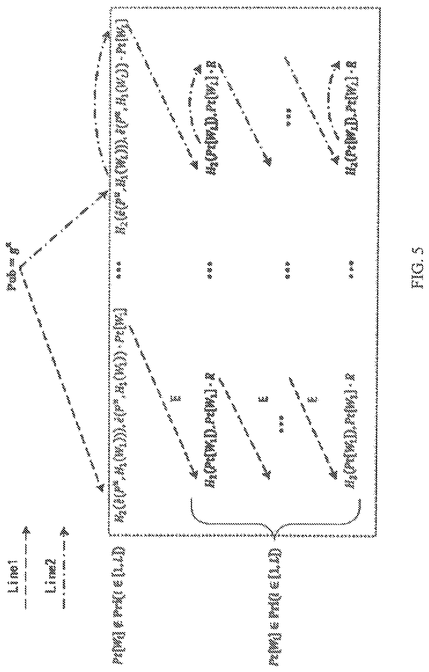 and outputting a structure (Pri=(u), Pub=gu). Preferably, the public part Pub=guof the structure is obtained through exponentiation. Preferably, the private part Pri of the structure may be a variable length list in the form of (u, {(W, Pt)|Pt∈G1}) and initialized into (u).