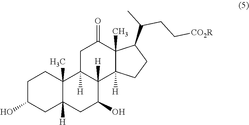 c) 12-keto-UDCA of the formula (5) is reduced chemically to UDCA; and