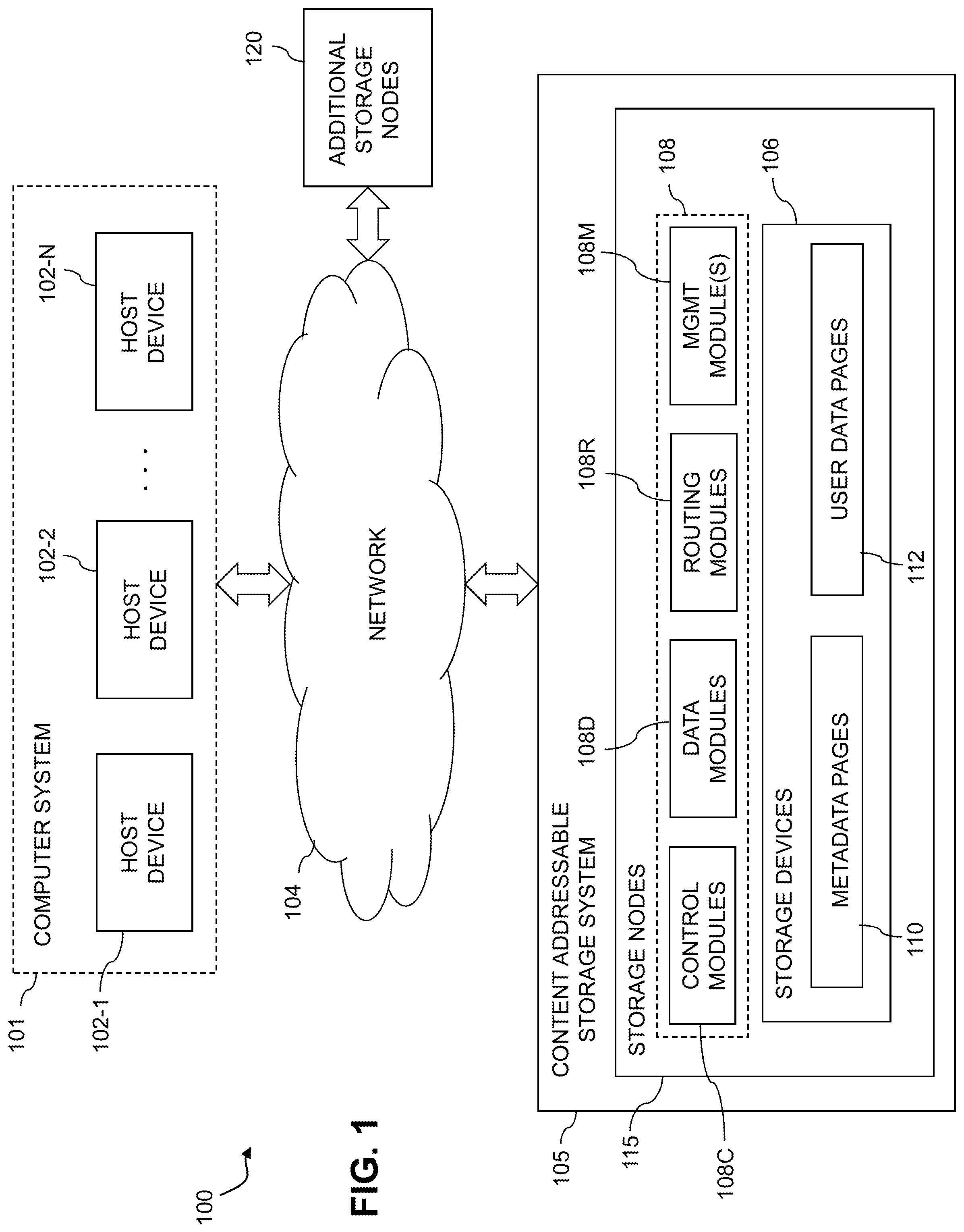 A storage controller such as distributed storage controller 108 that is configured to control performance of one or more steps of the process of the flow diagram of FIG. 3 in system 100 can be implemented as part of what is more generally referred to herein as a processing platform comprising one or more processing devices each comprising a processor coupled to a memory. A given such processing device may correspond to one or more virtual machines or other types of virtualization infrastructure such as Docker containers or Linux containers (LXCs). The host devices 102 and content addressable storage system 105 of system 100, as well as other system components, may be implemented at least in part using processing devices of such processing platforms. For example, in the distributed storage controller 108, respective distributed modules can be implemented in respective containers running on respective ones of the processing devices of a processing platform.