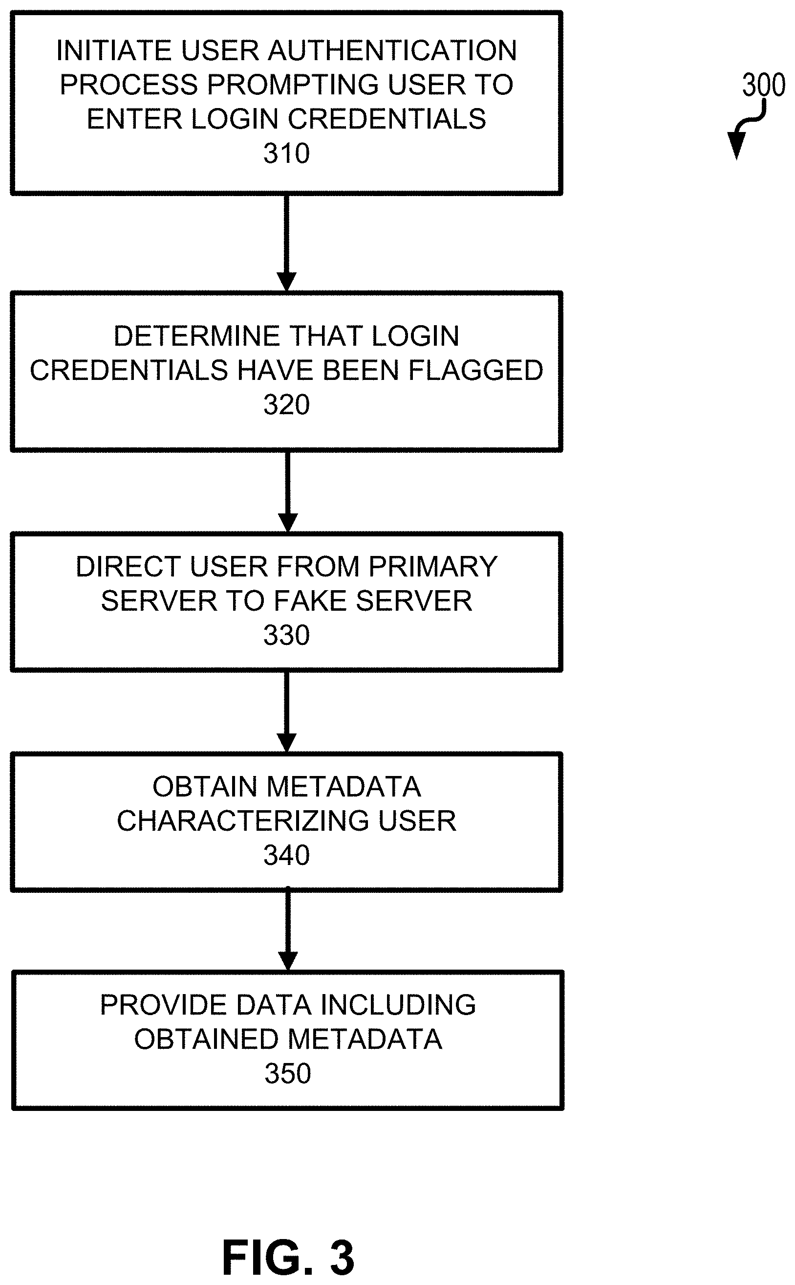 A user authentication process is initiated by a software application executing on a primary server. The user authentication process prompts a user to enter, via a graphical user interface, login credentials. Thereafter, it is determined that the login credentials have been flagged. The user is then directed from the primary server to a fake server (i.e., a second server) mimicking the software application executing on the primary server. Thereafter, the fake server obtains metadata associated with the user interacting with the fake server that characterizes the user. This obtained metadata can later be provided (e.g., displayed, loaded into memory, stored in physical persistence, transmitted to a remote computing system, etc.). Related apparatus, systems, techniques and articles are also described.
