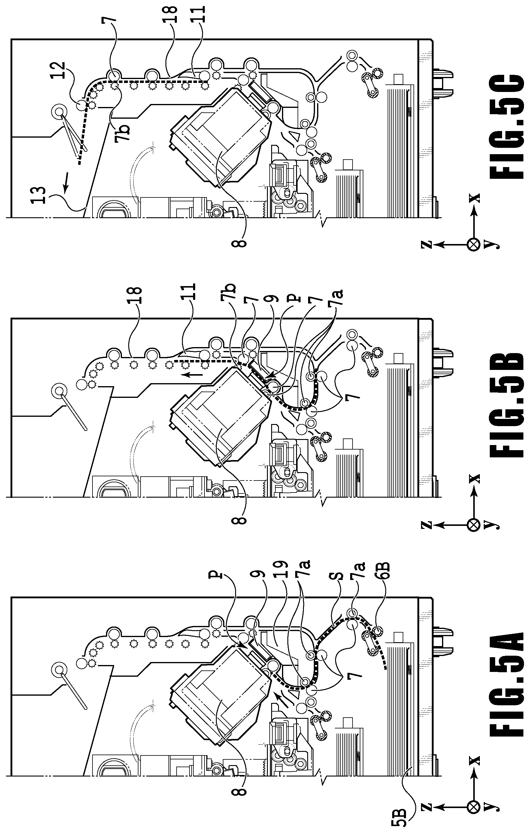 a convey unit configured to pinch and convey a print medium; a printing head configured to perform printing on the print medium conveyed by the convey unit; a platen which supports the print medium in facing the printing head, wherein the platen is rotatable between a first position to support the print medium during printing and a second position different from the first position, a locking unit configured to lock the platen at third position between the first position and the second position; and a pinching control unit configured to control pinching of the print medium by the convey unit, wherein when the platen is in the first position and the third position, the convey unit pinches the print medium by the control of the pinching control unit, and when the platen moves from the third position to the second position, the pinching of the printing medium by the convey unit is released by the pinching control unit.