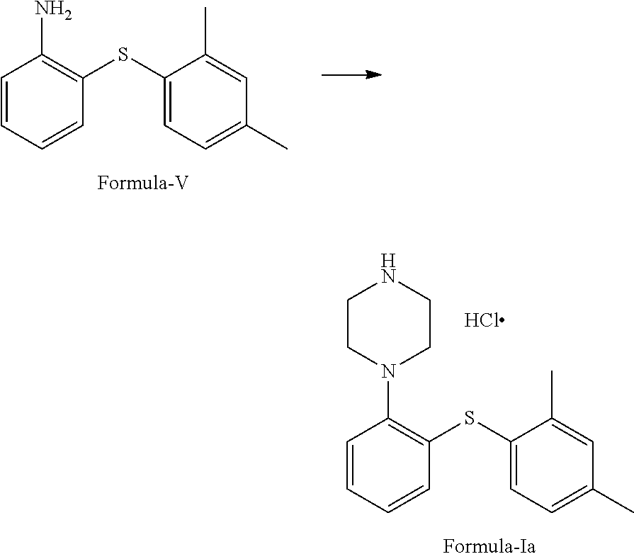 Example-3: 1-[2-(2,4-dimethylphenylsulfanyl)phenyl]piperazine hydrochloride (Formula-Ia)