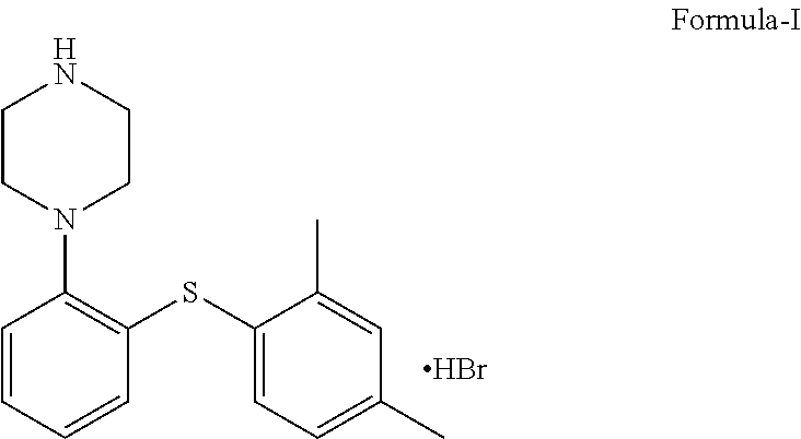 Example-4: 1-[2-(2,4-dimethylphenylsulfanyl)phenyl]piperazine hydrobromide (Formula-I)