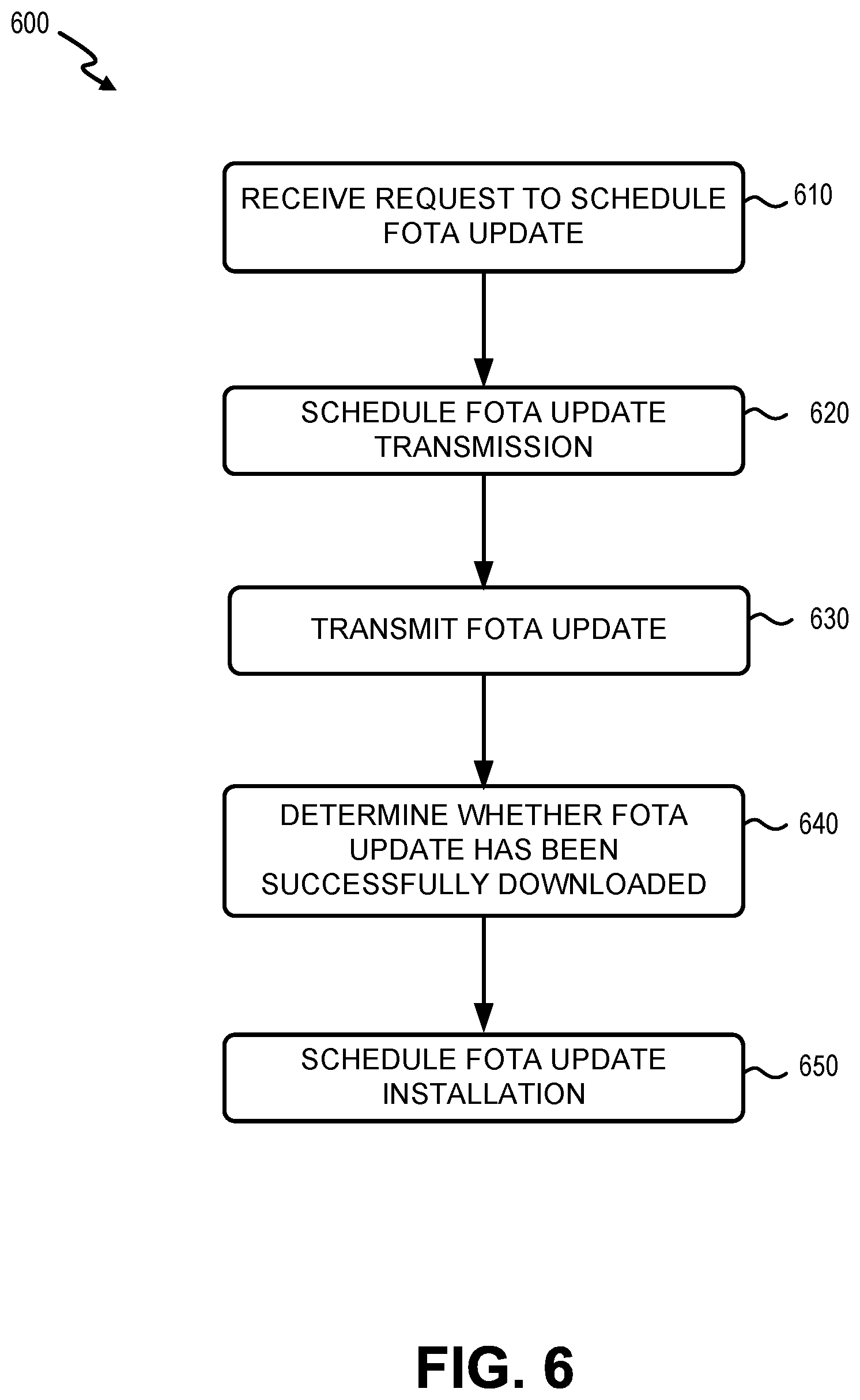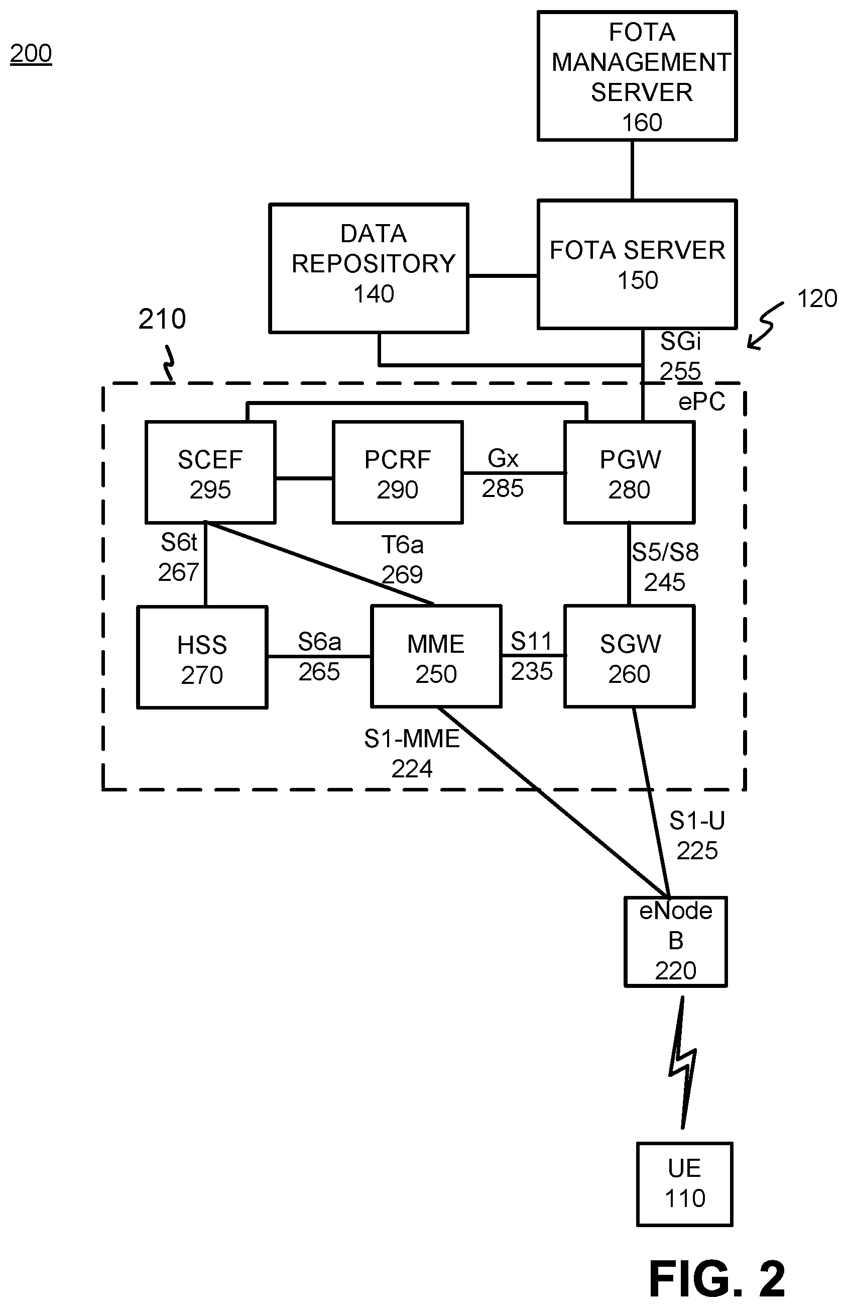 As the popularity of Internet of Things (IoT) devices increases, a burden is placed on wireless access networks to manage the IoT devices and other user devices associated with the wireless access network. In particular, upgrading the firmware associated with the IoT devices may strain the resources of a wireless access network. In addition, an upgrade of an IoT device may fail when the wireless access network does not have the resources to deliver the upgrade, which may result in customer dissatisfaction. The following detailed description refers to the accompanying drawings. The same reference numbers in different drawings identify the same or similar elements. The market for Internet of Things (IoT) devices is growing rapidly. IoT devices may have a wide variety of uses, such as utility meters, environmental sensors, parking meters and/or occupancy sensors, security sensors, smart lighting, traffic cameras, advertising displays, point-of-sale terminals, vending machines, remote diagnostics devices, remote monitoring of individuals, power grid sensors and/or management devices, high speed autonomous vehicles, aerial drones, etc. Use of IoT devices have increased exponentially and may result in a large number of such devices being serviced by a wireless access network. Estimates indicate that the number of IoT devices within a wireless operator's network may increase to millions of devices communicating with each other autonomously with little to no human intervention. Thus, a provider of wireless communication services may manage wireless access networks that include a large number of IoT devices. A wireless network, such as a Fourth Generation (4G) LTE access network (e.g., an evolved packet core (EPC) network), may use the Evolved Universal Terrestrial Radio Access (E-UTRA) air interface to wirelessly communicate with devices. The bandwidth of an E-UTRA channel in an LTE band may range from about 1.4 to about 20 Megahertz (MHz). In many applications, the data sent or received by IoT devices may be small compared to other types of devices, such as mobile phones used for voice communication or for streaming content. Furthermore, many IoT devices are designed for low power applications and long battery life. Therefore, use of large bandwidth channels that use large amounts of power, such as an LTE channel, for wirelessly communicating with IoT device may be an inefficient use of radio link resources. A technology developed for IoT applications that does not require large amounts of data and that is based on a Low Power Wide Area Network (LPWAN) design is LTE Category M1 (CAT-M1). CAT-M1 channels, also sometimes referred to as enhanced machine type communications (eMTC) channels, use a total bandwidth of about 1.4 MHz and have a very low power requirement compared to an LTE channel. Another technology developed for IoT applications that does not require large amounts of data or power, is the Narrow Band (NB) IoT (NB-IoT) technology. NB-IoT is an LPWAN technology that uses 200 Kilohertz (KHz) channels, with their own guard bands, for sending small amounts of data. The use of NB-IoT channels may result in better signal penetration in hard to reach areas, such as areas likely to be occupied by IoT devices (e.g., a utility meter installed in a location that shadows or fades wireless signals). Furthermore, the use of NB-IoT channels may result in lower energy consumption and/or cheaper component cost. An IoT device may need to perform a wireless update, also referred to as an Over-the-Air (OTA) update. One particular type of OTA update that may include the transfer of a relatively large file may be a firmware OTA (FOTA) update. Other types of OTA updates that may include the transfer of a large file may be a baseband OTA update or an application software OTA update. The firmware of an IoT device may control the low-level operation of the hardware of an IoT device and may need to be periodically updated. When an original equipment manufacturer (OEM) or another type of entity decides to add a new functionality to an IoT device, or fix a potential problem or security flaw in one or more types of IoT devices, the resources of a base station may be overwhelmed due to the thousands and potentially millions of devices that will require the update. Performing a FOTA update on devices may include several steps. Initially, the firmware or software image or file containing the update may be transferred to the devices. Because network resources may be limited, the transferring may be restricted by network and bandwidth resources. For example, the firmware or software images or files may not be able to be transferred to the devices at certain times due to congestion of the network. Additionally, a size of the firmware or software images or files may be restricted due to the congestion. After the firmware or software images or files have been transferred to the devices, the images may be installed on the devices at specified dates or times. The installation of the images or files may impact the normal behavior of the devices. In addition, in some instances, one or more of the devices may be offline at the specified dates or times. Currently, when a firmware update is pushed to devices according to a manual schedule, the update may be forced on the device or a user of the IoT device may have to decide when to perform the update. The current method of performing updates may not work well for many IoT devices that are not interactive with respect to users and/or owners. In addition, the current method may overload the network and cause interruption to normal operations of the IoT devices. For example, when performing a FOTA update for a group of IoT devices, IoT devices of the group may be chosen at random to receive the FOTA update regardless of which base station serves the IoT devices or whether the IoT devices are currently online and available to receive the FOTA update. If a large number of the IoT devi