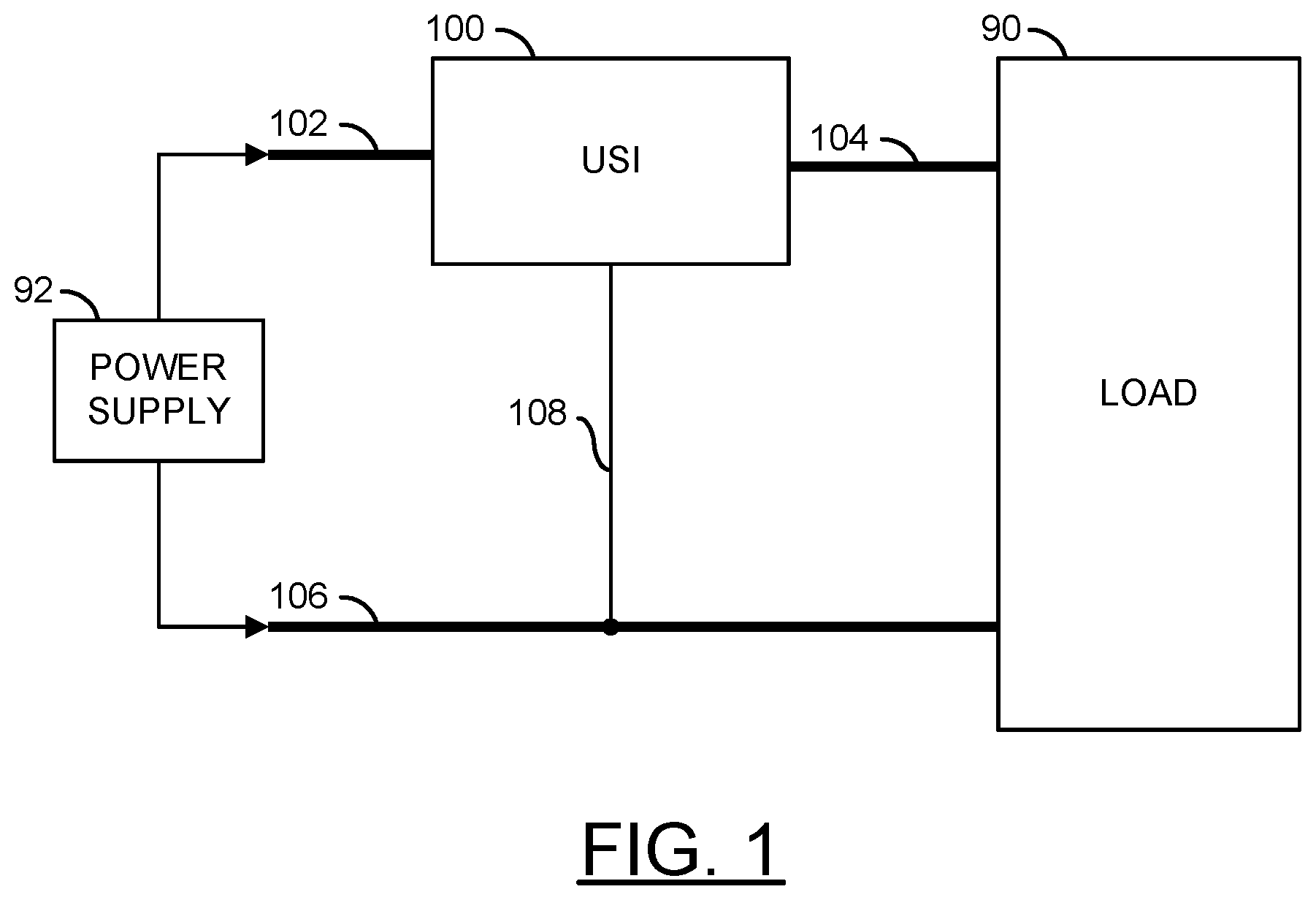 the supply voltage is presented to a first terminal of the first resistor and a cathode terminal of the first diode, a second terminal of the first resistor and a first terminal of the second resistor are connected to form a node at which a control signal can be presented, a second terminal of the second resistor is connected to a base terminal of the first bipolar junction transistor, an emitter terminal of the first bipolar junction transistor is connected to an anode terminal of the second diode and a cathode terminal of the second diode is connected to the ground potential, an emitter terminal of the second bipolar junction transistor is connected to an anode terminal of the first diode, a base terminal of the second bipolar junction transistor is connected to a first terminal of the third resistor, and a second terminal of the third resistor is connected to the ground potential. 16. The apparatus according to 17. A method of providing a low power loss reverse polarity protection comprising:
