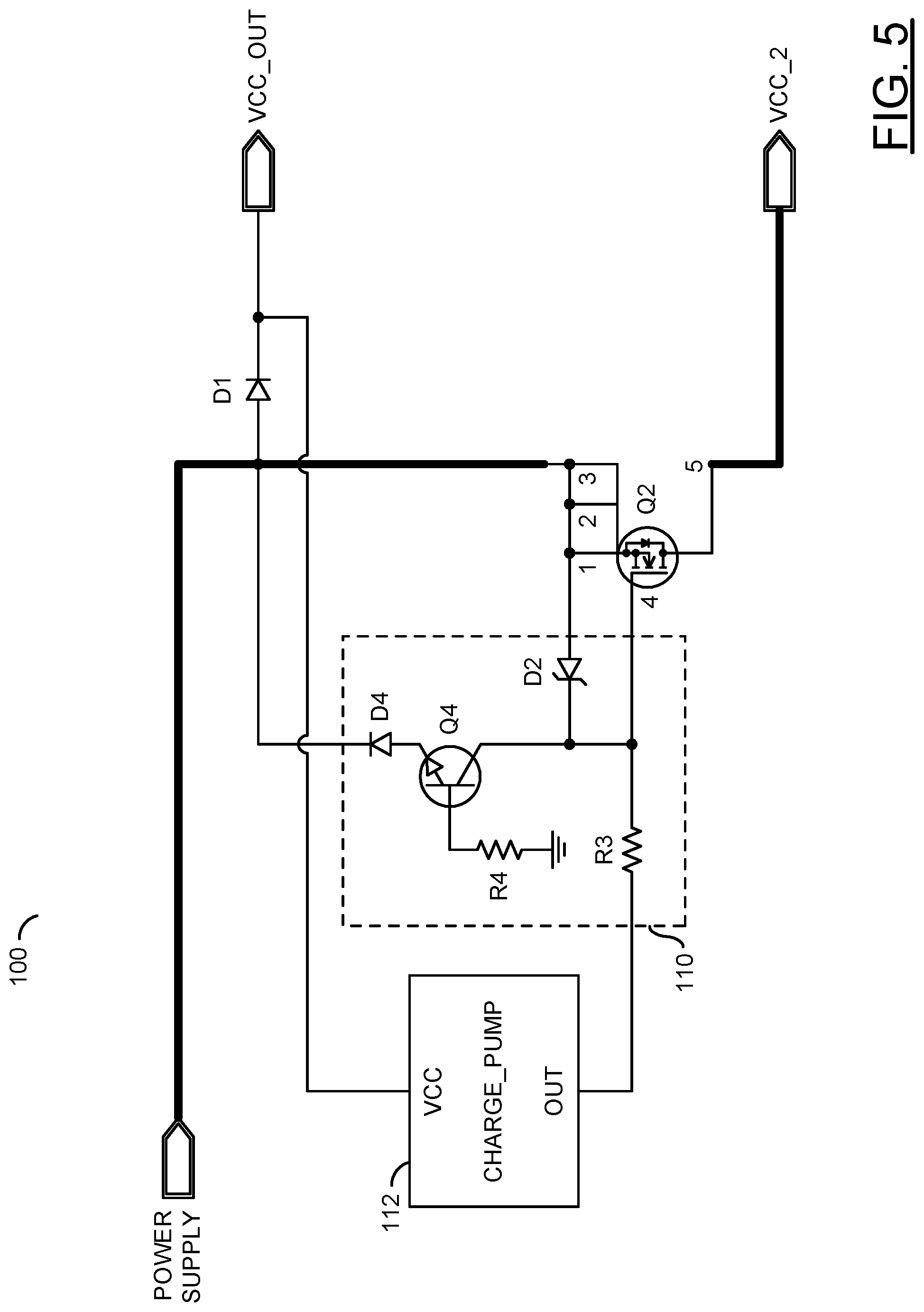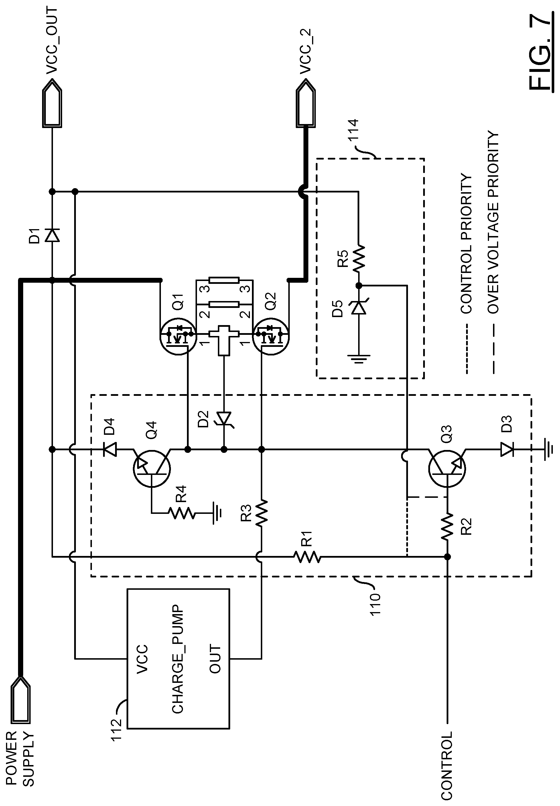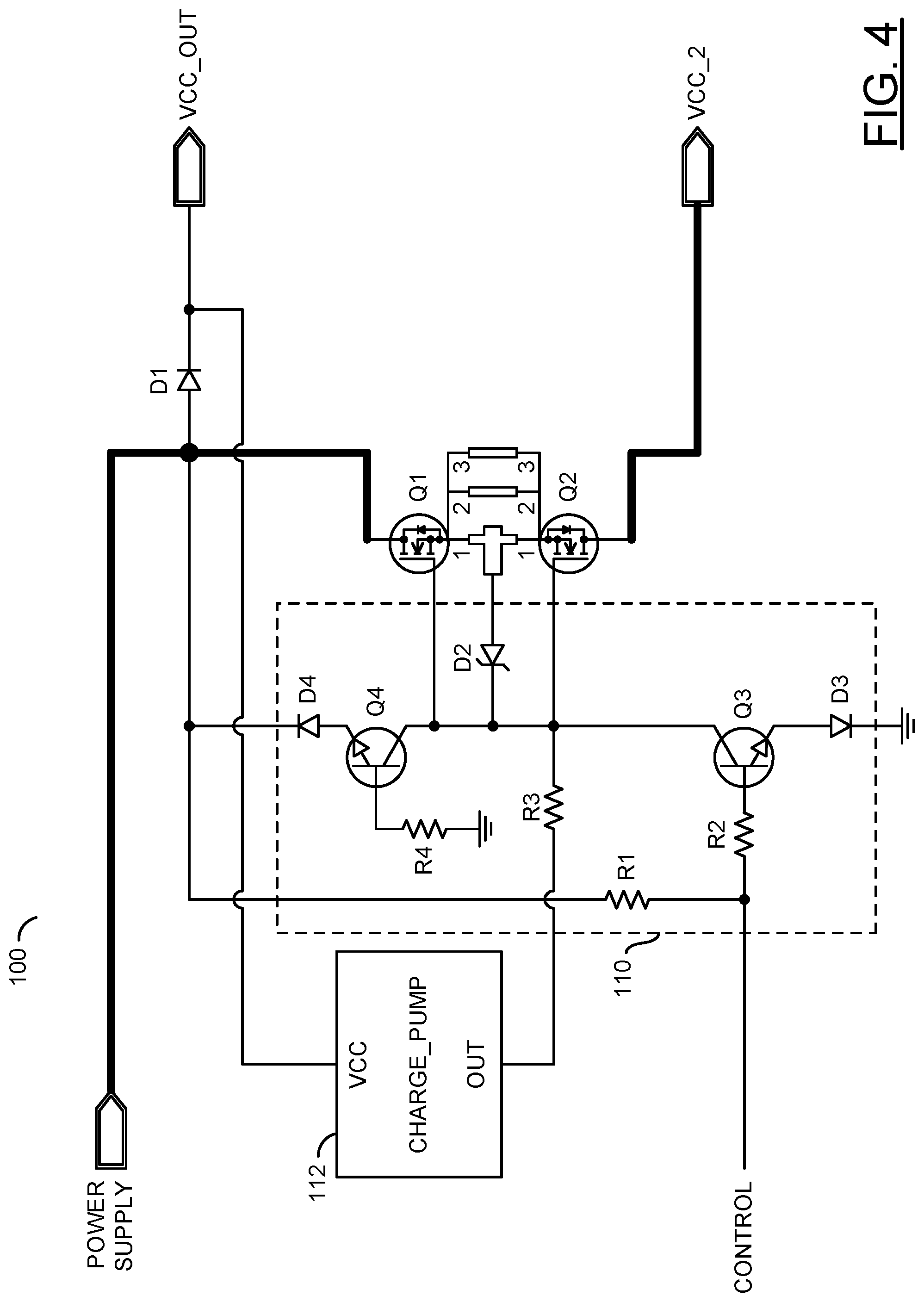one or more metal-oxide-semiconductor field effect transistors connected in series between a supply voltage and an output terminal; a charge pump configured to generate a voltage of sufficient magnitude relative to the supply voltage to switch the one or more metal-oxide-semiconductor field effect transistors into a conductive state; and a driver circuit coupled between the charge pump and the one or more metal-oxide-semiconductor field effect transistors, wherein