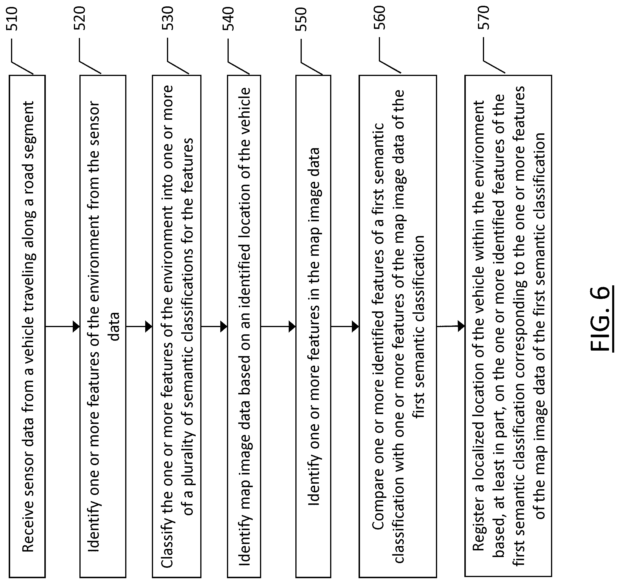 receiving sensor data from a vehicle traveling along a road segment, wherein the sensor data comprises image data from an environment of the vehicle; identifying one or more features of the environment from the sensor data; classifying the one or more identified features into one or more of a plurality of semantic classifications for the features; identifying map image data based on an identified location of the vehicle; identifying one or more features in the map image data; comparing one or more identified features of a first semantic classification with one or more features of the map image data of the first semantic classification; and registering a localized location of the vehicle within the environment based, at least in part, on the one or more identified features of the first semantic classification corresponding to the one or more features of the map image data of the first semantic classification, wherein the localized location of the vehicle is more accurate than the identified location of the vehicle. 16. The method of 17. The method of wherein identifying one or more features in the map image data comprises identifying one or more features in the plurality of images of the environment proximate the general location of the vehicle. 18. The method of comparing one or more identified features of the first semantic classification with one or more features of the first semantic classification in the plurality of images. 19. The method of identifying an image of the plurality of images in which the one or more identified features of the first semantic classification correspond with one or more features of the first semantic classification of the identified image; retrieving a location associated with the identified image; and identifying the location associated with the identified image as the localized location. 20. The method of identifying at least one restriction associated with the road segment of the localized location; and providing for at least partial autonomous control of the vehicle according to the at least one restriction.