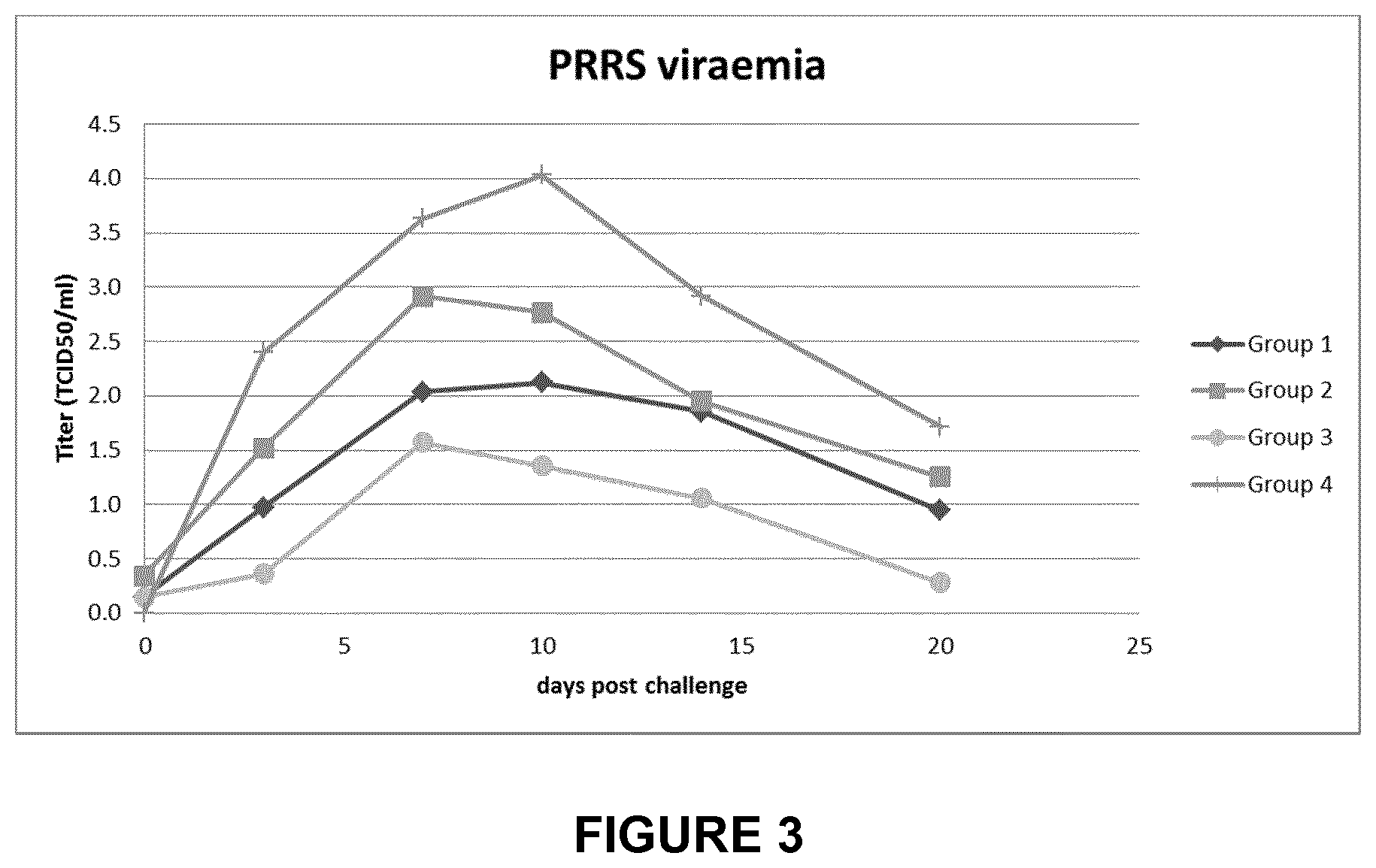 FIG. 3 is a line graph representing the PRRS viraemia data.