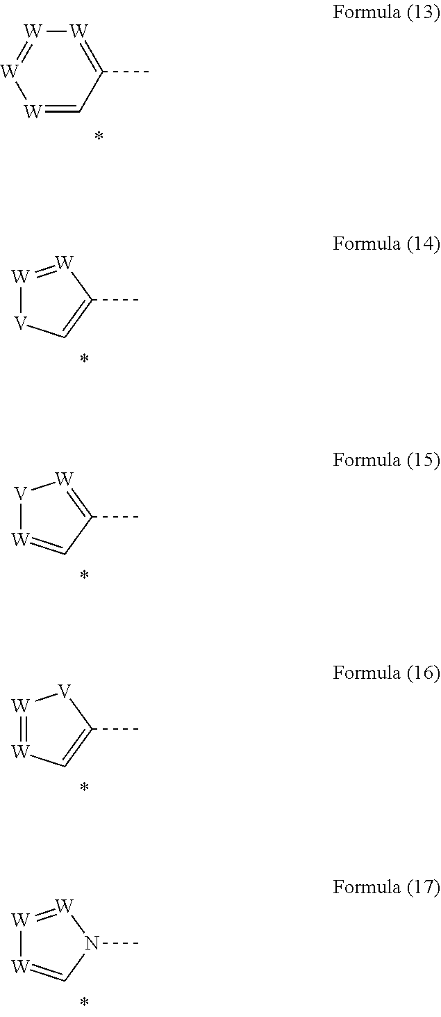 where the dotted bond indicates the linkage to N, # indicates the position of the linkage to E, * indicates the linkage to Ar1and W and V are each as defined above.