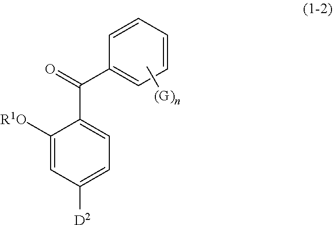 wherein R1has the same meaning as defined above; D2represents a hydroxyl group or a C1 to C12 alkoxy group; G represents a hydroxyl group, a C1 to C6 linear-chain or branched-chain alkyl or alkenyl group, or a C1 to C6 alkoxy group; and n is an integer of 0 to 2;