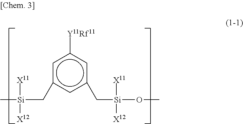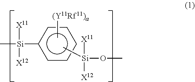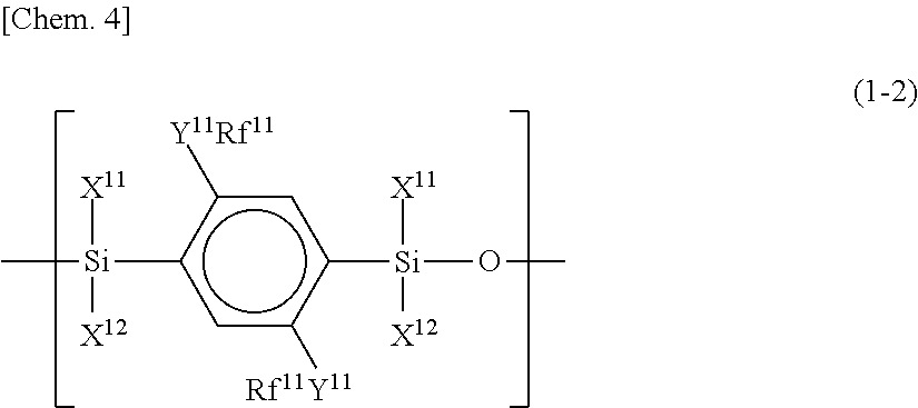 wherein X11, X12, Y11, Rf11, and a are defined in the same manner as mentioned above.