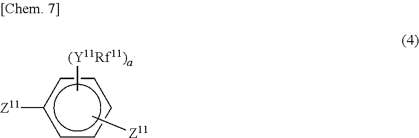 wherein Z11is defined in the same manner as mentioned above; and Rf11is an alkyl group optionally containing a fluorine atom.
