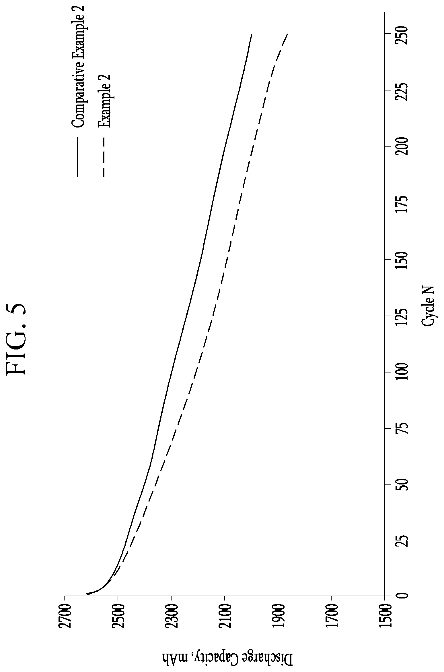 Example 2 14.3 Example 3 22.9 Example 4 9.0 Example 5 11 Comparative 23.8 Example 2 Experimental Example 4—Cycle Characteristics