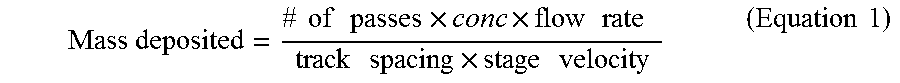 Comparison of actual matrix density with calculated density for spray-coated slides. Temp. Pressure Deposition (° C.) (psig) Efficiency 30 13 44% 30 6 74% 70 13 35% 70 10 47% Tryptic fragments of myelin basic protein. 10 min 5 min S/N, m/z S/N, m/z 10 min 861.44 4.6 1019.55 5.2 1502.77 8.8 1502.77 25.8 2141.08 6.1 2141.11 22.6 2933.50 4.9 2933.50 4.1 List of proteins detected in a coronal rat brain section. Tryptic peptides from In Situ Digest Protein detected in the tissue [M + H]+exp [M + H]+cal ppm Sequence Myelin Basic Protein (14.2 kDa) 861.4358 861.4360 -0.2 r.SGSPMARR. 1019.5651 1019.5646 0.5 r.HGFLPRHR.d 1067.5023 1067.5017 0.6 r.FSWGGRDSR.s 1336.6318 1336.6314 0.3 k.YLATASTMDHAR.h 1460.7168 1460.7169 −0.1 r.TQDENPVVHFFK.n 1502.7709 1502.7710 −0.1 r.TTHYGSLPQKSQR.t 1745.8385 1745.8388 −0.1 r.HGSKYLATASTMDHAR.h 1755.8643 1755.8660 −1.0 r.DTGILDSIGRFFSGDR.g 2141.1123 2141.1138 −0.7 r.TQDENPVVHFEKNIVTPR.t Neurogranin (7.5 kDa) 1064.5233 1064.5232 0.1 k.GPGPGGPGGAGGAR.g 1192.6200 1192.6181 1.5 r.KGPGPGGPGGAGGAR.g PEP-19 (6.8 kDa) 1923.8266 1923.8277 −0.6 k.VQEEFDIDMDAPETER.a 2051.9231 2051.9226 0.2 k.KVQEEFDIDMDAPETER.a