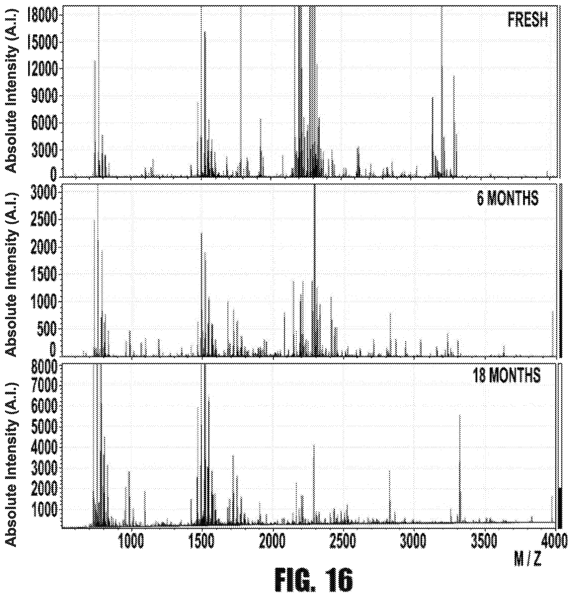 Comparison of signal-to-noise ratio for three sets of slides Myelin Basic Protein S/N, S/N, S/N, m/z Fresh m/z 6 months m/z 18 months 1081.548 280.3 1019.567 31.9 861.436 61.2 1502.771 589.4 1336.625 34.3 1013.590 13.3 1745.839 249.2 2141.109 575.0 1502.771 33.8 2141.112 703.9 2370.187 79.4 1745.839 15.6 2933.516 205.8 2453.229 19.6 2141.112 25.9 Example 3
