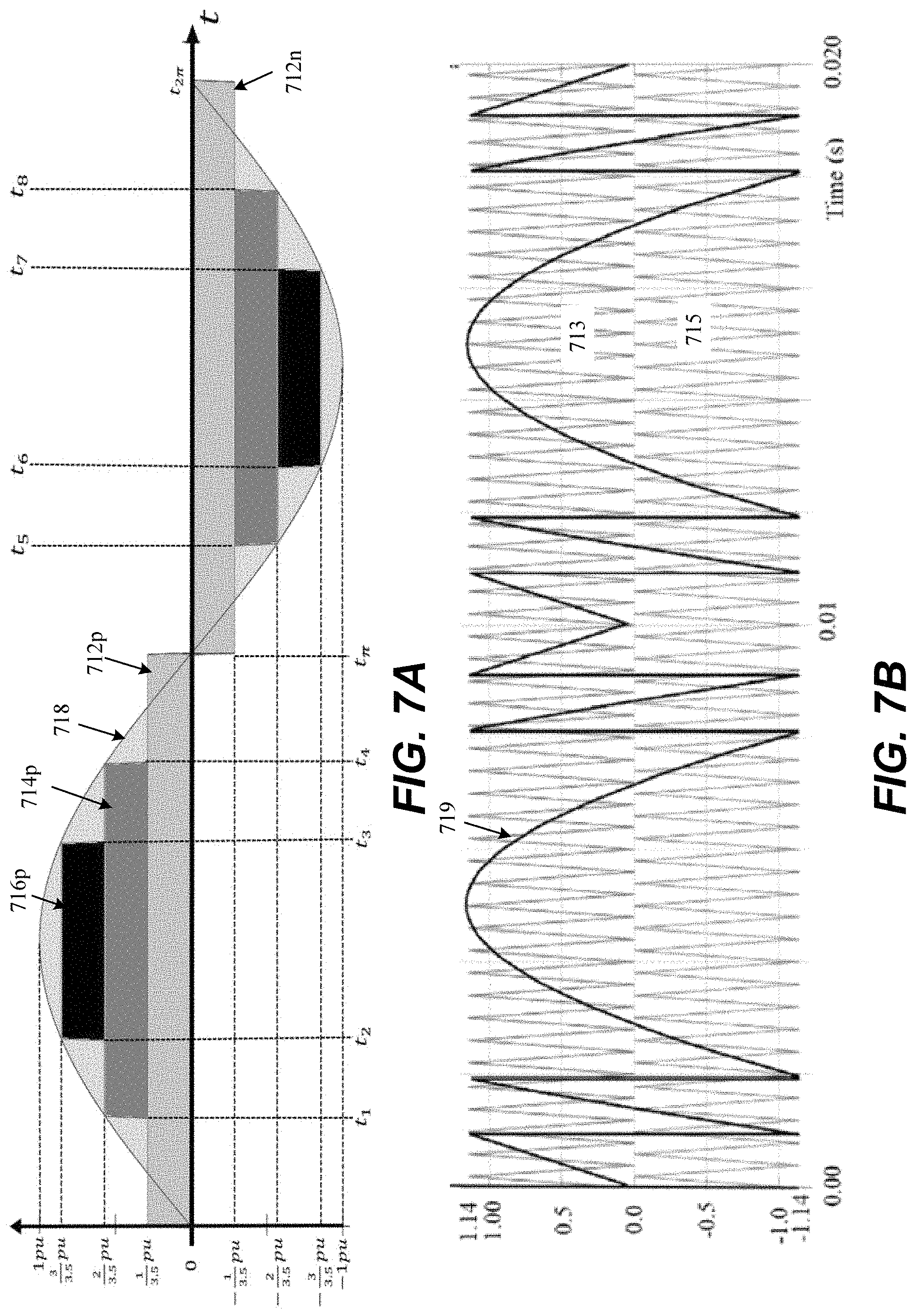These square waves are used to establish the essential part of the sinusoidal reference signal 718 in the positive and negative half cycles. For the positive half cycle, the lower square wave 712