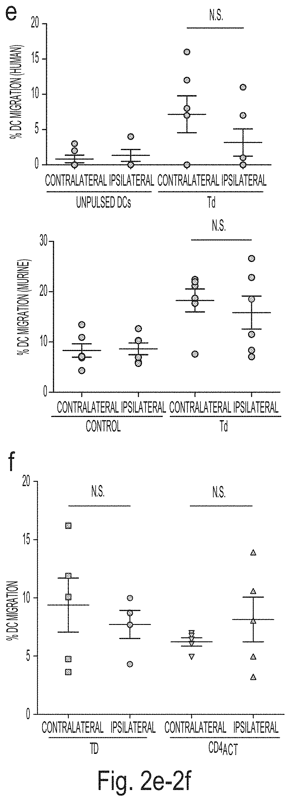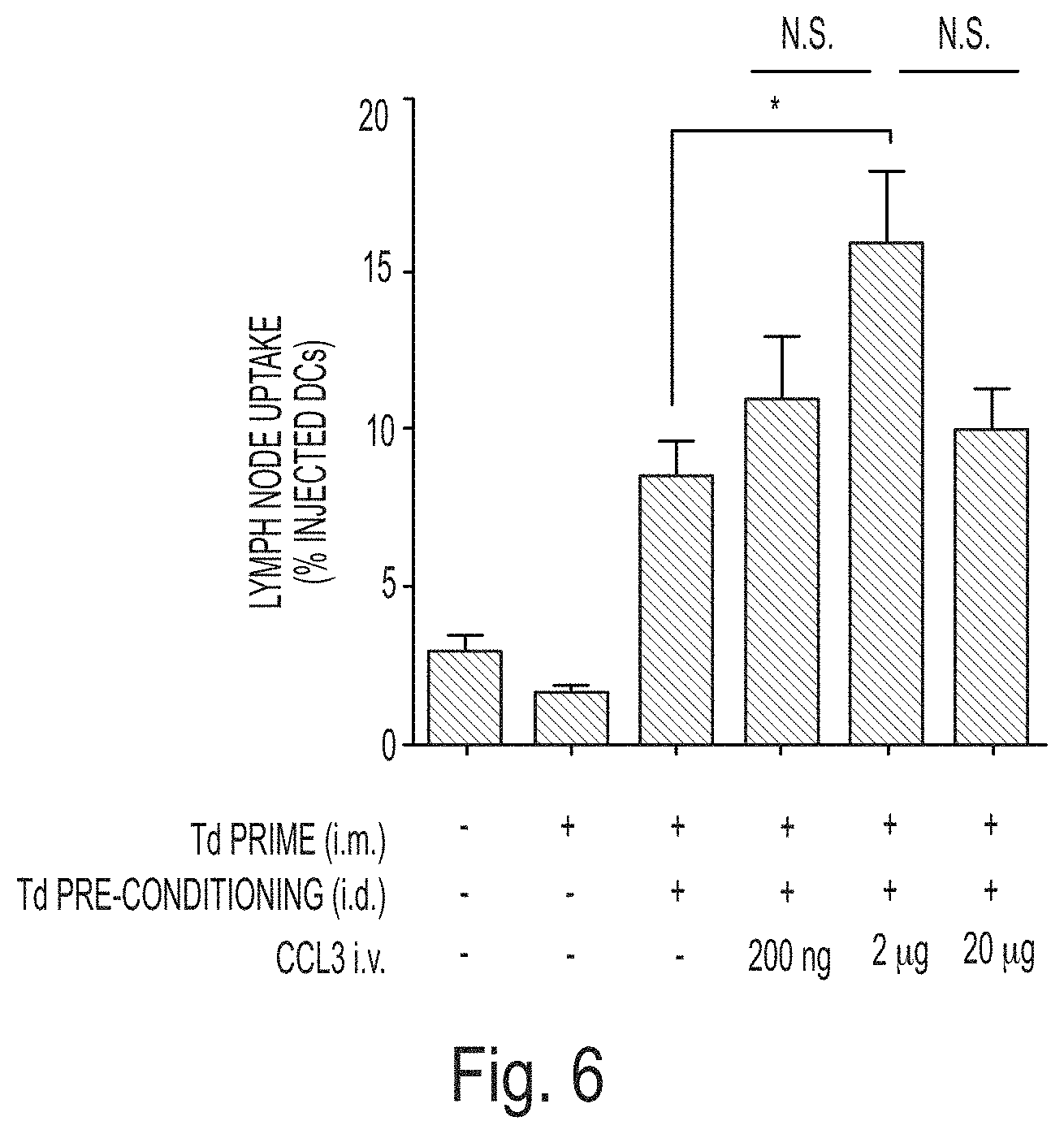 This invention was made with government support under P50CA108786, P50-NS20023, R01-CA177476-01, R01-NS067037, P01-CA154291-01A1, P50-NS020023-30, 1UL2 RR024128-01 awarded by National Institutes of Health. The government has certain rights in the invention. This invention is related to the area of immunotherapy. In particular, it relates to cancer immunotherapy. Upon stimulation, dendritic cells (DCs) mature and migrate to draining lymph nodes to induce immune responses against pathogens1. As such, autologous, mature DCs generated ex vivo have been pulsed with tumor antigens and injected back into patients as a form of antitumor immunotherapy. While DC vaccines have shown limited promise in the treatment of patients with advanced cancers2-4including glioblastoma (GBM),5-7the factors dictating DC vaccine efficacy remain poorly understood. There is a continuing need in the art to improve DC vaccine efficacy as well as other types of vaccines' efficacy. A method of immunizing a human is provided. A first acellular immunogen is administered intradermally to the human. A second immunogen is administered intradermally to the human. Administration of the first immunogen increases migration of the second immunogen to vaccine draining lymph nodes (VDLNs). The first acellular immunogen is not an inflammatory cytokine. The first and second immunogens are distinct. The human has been previously immunized with or exposed to the first immunogen, such that the human has memory T cells which are specific and responsive to the first immunogen. A fusion protein is provided. It comprises tetanus toxoid and chemokine CCL3; diphtheria toxoid and chemokine CCL3; tetanus toxoid and a tumor specific or tumor associated antigen; tetanus toxoid and an antigen of an infectious agent; diphtheria toxoid and a tumor specific or tumor associated antigen; diphtheria toxoid and an antigen of an infectious agent; chemokine CCL3 and a tumor specific antigen; or chemokine CCL3 and an antigen of an infectious agent. A pharmaceutical composition is provided. It comprises tetanus toxoid and chemokine CCL3; diphtheria toxoid and chemokine CCL3; tetanus toxoid and a tumor specific or tumor associated antigen; tetanus toxoid and an antigen of an infectious agent; diphtheria toxoid and a tumor specific or tumor associated antigen; diphtheria toxoid and an antigen of an infectious agent; chemokine CCL3 and a tumor specific antigen; or chemokine CCL3 and an antigen of an infectious agent. A kit is provided. The kit comprises a first acellular immunogen and a second immunogen for intradermal administration to a human. The first acellular immunogen is selected from the group consisting of tetanus toxoid, diphtheria toxoid, and tetanus-diphtheria toxoids. The second immunogen is selected from the group consisting of a tumor-associated, a tumor-specific antigen, an antigen of an infectious agent, a dendritic cell vaccine, an antigen-pulsed dendritic cell vaccine, and dendritic cells pulsed with a CMV integument protein pp65 RNA. Another method of immunizing a human is provided. Chemokine CCL3 is administered to the human. An immunogen is administered intradermally to the human. Administration of chemokine CCL3 increases migration of the immunogen to vaccine draining lymph nodes (VDLNs). Another kit is provided which comprises components for administration to a human. The components comprise chemokine CCL3; and an immunogen selected from the group consisting of a tumor-associated, a tumor-specific antigen, an antigen of an infectious agent, a dendritic cell vaccine, an antigen-pulsed dendritic cell vaccine, and dendritic cells pulsed with a CMV integument protein pp65 RNA. A pharmaceutical composition is provided that comprises chemokine CCL3 and an immunogen selected from the group consisting of a tumor-associated, a tumor-specific antigen, an antigen of an infectious agent, a dendritic cell vaccine, an antigen-pulsed dendritic cell vaccine, and dendritic cells pulsed with a CMV integument protein pp65 RNA. These and other embodiments which will be apparent to those of skill in the art upon reading the specification provide the art with methods and products for treating infectious diseases and neoplastic diseases. * Model 2 of EORTC scoring system if methylation status unavailable † No progression ‡ Alive § Patient progressed prior to time of randomization for vaccine site pre-conditioning KPS, Kamofsky Performance Status; WHO, World Health Organization; MMSE, Mini-Mental State Examination, IDH1, isocitrate dehydrogenase type 1; MGMT, O6-Methylguanine-DNA methyltransferase; PFS, progression-free survival; OS, overall survival; EORTC, European Organization for Research and Treatment of Cancer; O-E, observed—expected survival months; RPA, recursive partitioning analysis; NA, tissue not available. The inventors have developed a method and reagents for increasing an immune response in a human or other mammal. This is particularly useful where an increased immune response is desirable, such as in an individual that that has a tumor or an individual that has an infectious disease. If an immune response is desired to an antigen, such as a tumor-associated, a tumor-specific, a bacterial, a viral, a fungal, or a parasitic antigen, typically one will immunize or vaccinate with such an antigen, called here an immunogen, or a second immunogen. But often the immune response is found to be suboptimal. The inventors have found that a suboptimal immune response can be enhanced by pretreatment with another, apparently unrelated, immunogen, called here a first immunogen. The first immunogen may be acellular. Preferably the subject has been previously immunized with or exposed to the first immunogen and the human has memory T cells or antibodies which are specific and responsive to the first immunogen. The first immunogen may be an agent that is not an inflammatory cytokine. Treatment with the first immunogen may be anytime from at least 0, 0.1, 1